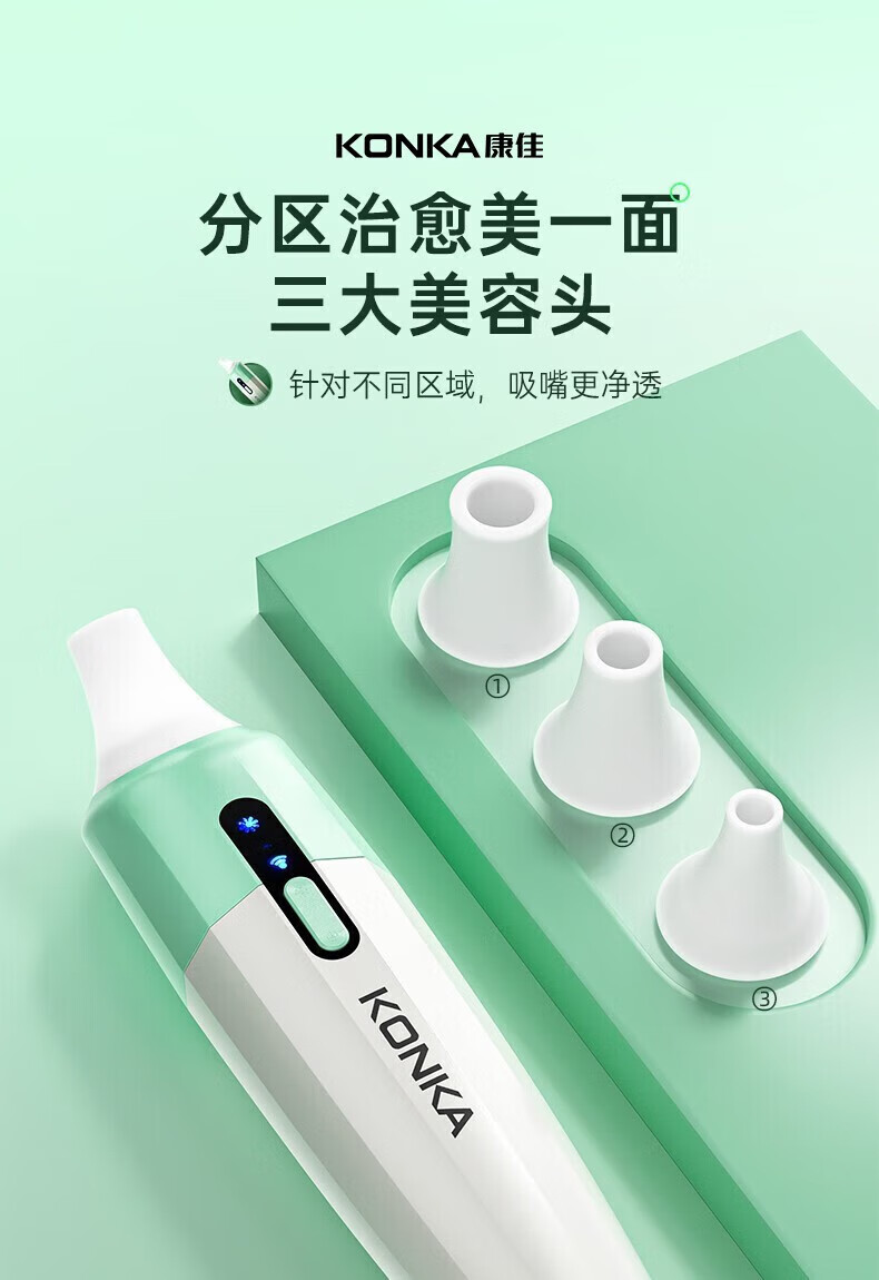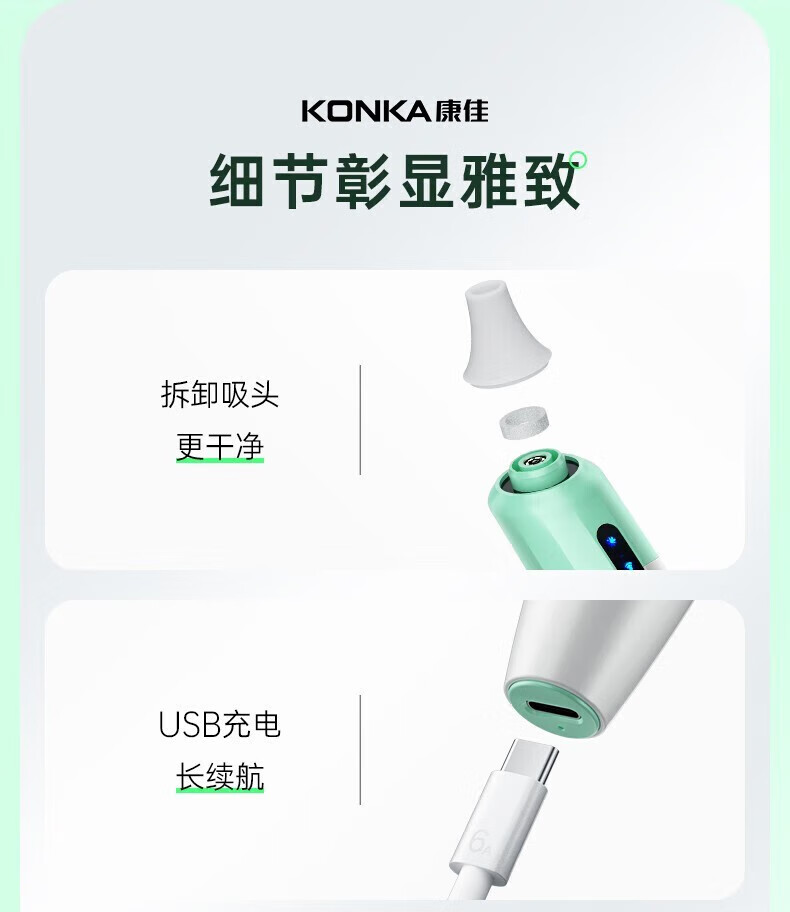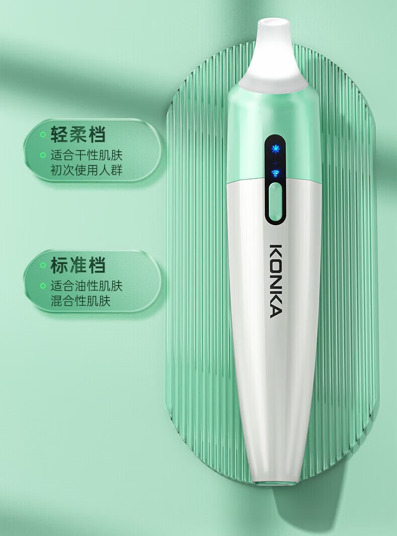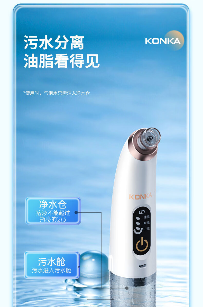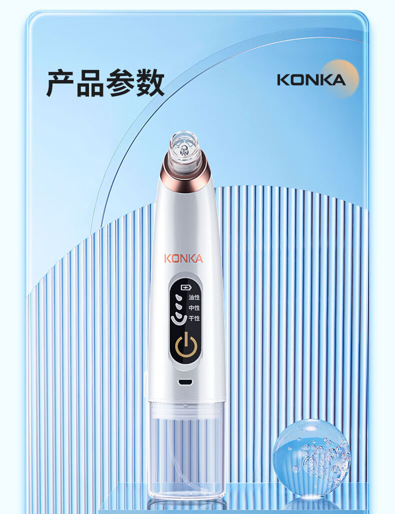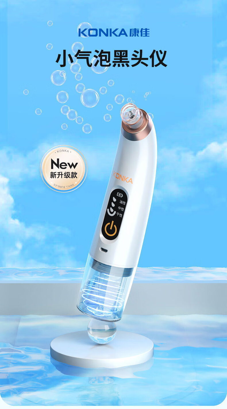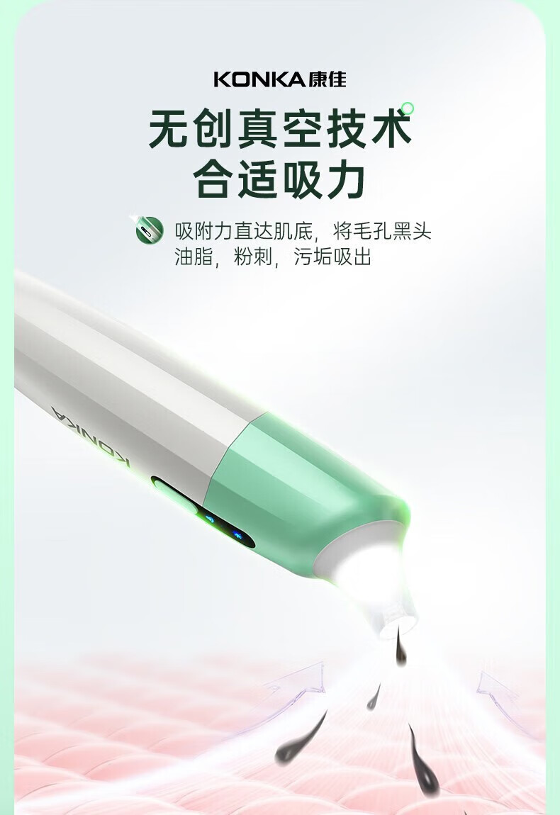 KONKA blackhead extractor, blackhead suction instrument, cleaning artifact, facial cleansing and beauty instrument for men and women, pore acne, small bubbles, three levels of suction power + 6 suction heads