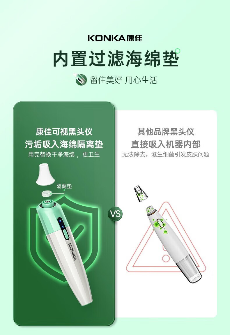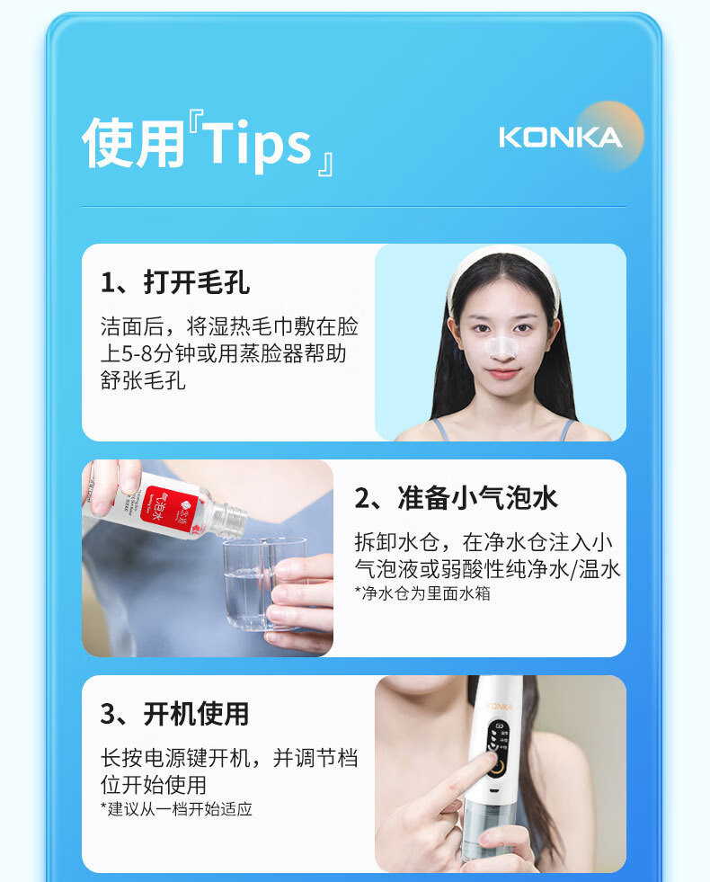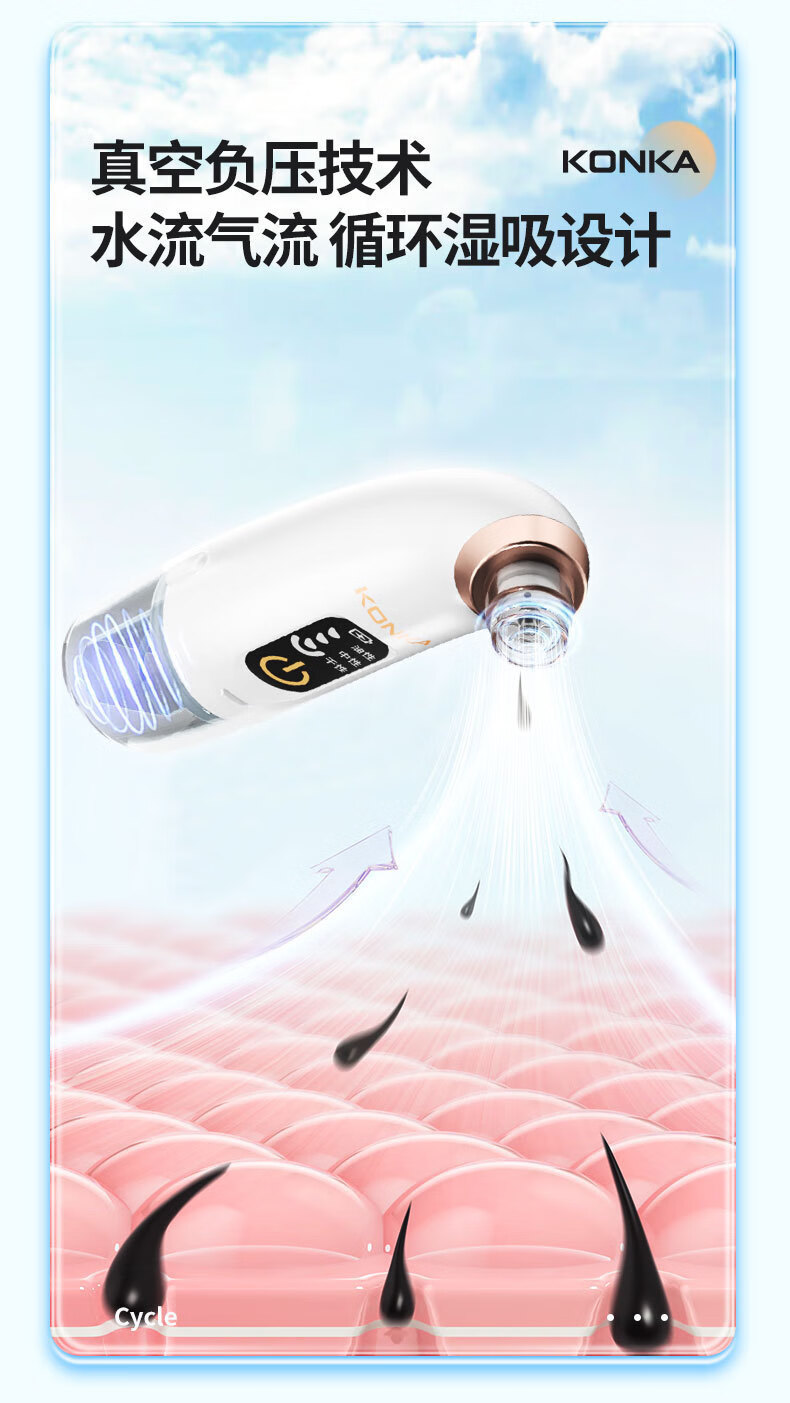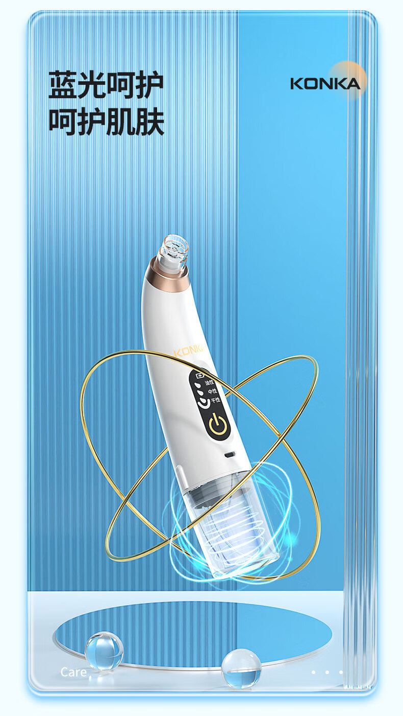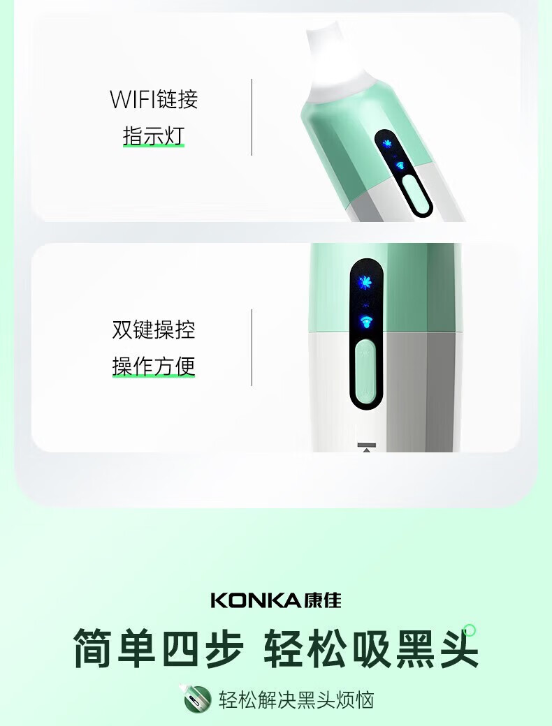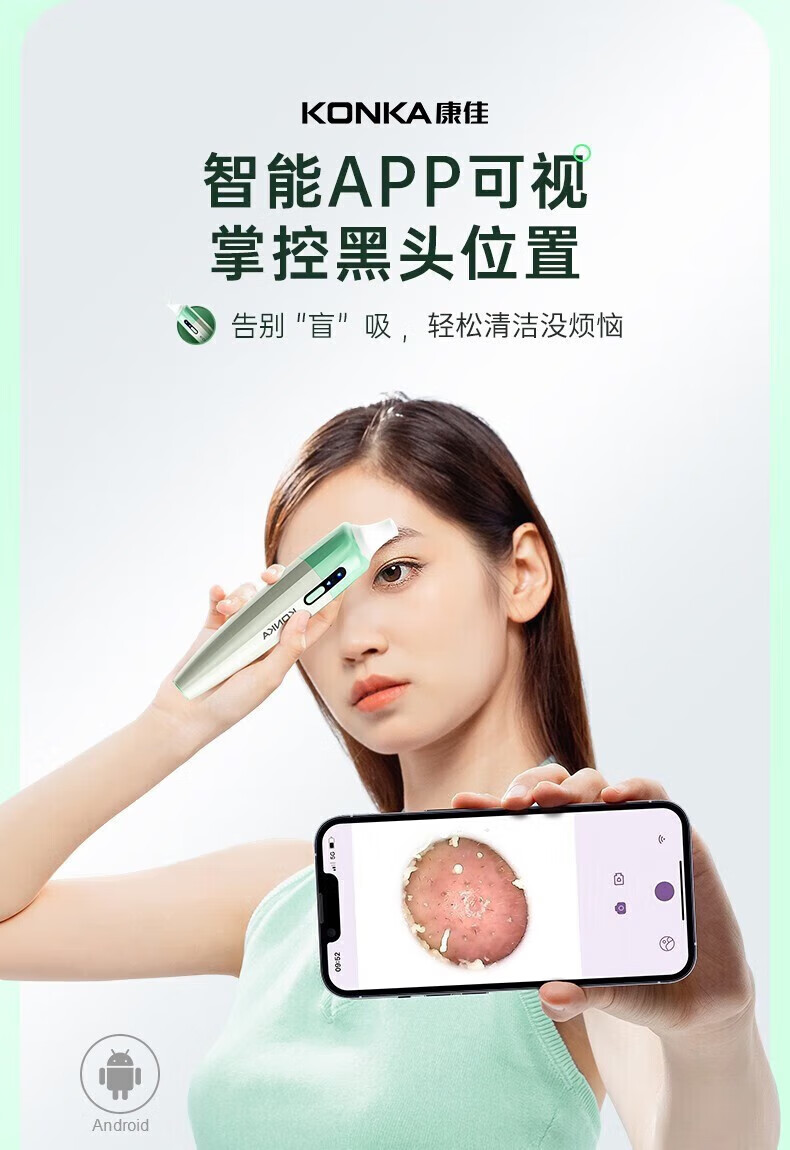 KONKA blackhead extractor, blackhead suction instrument, cleaning artifact, facial cleansing and beauty instrument for men and women, pore acne, small bubbles, three levels of suction power + 6 suction heads