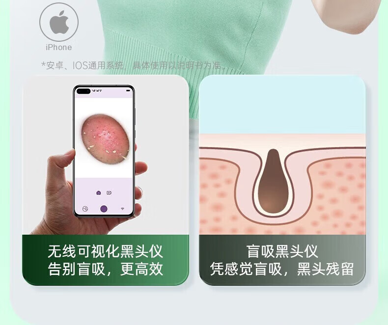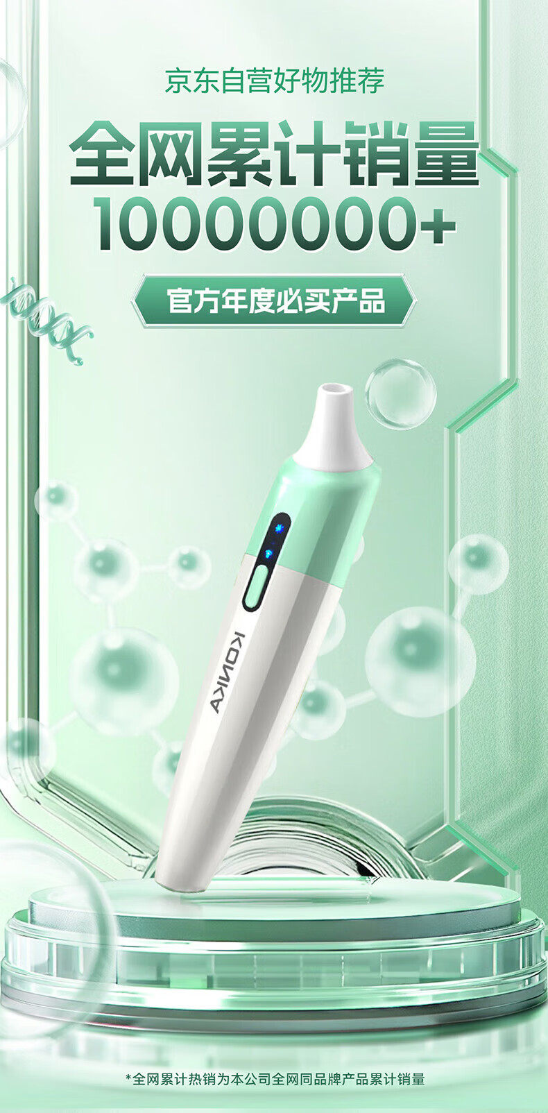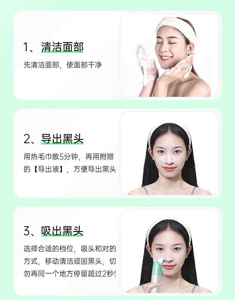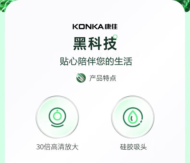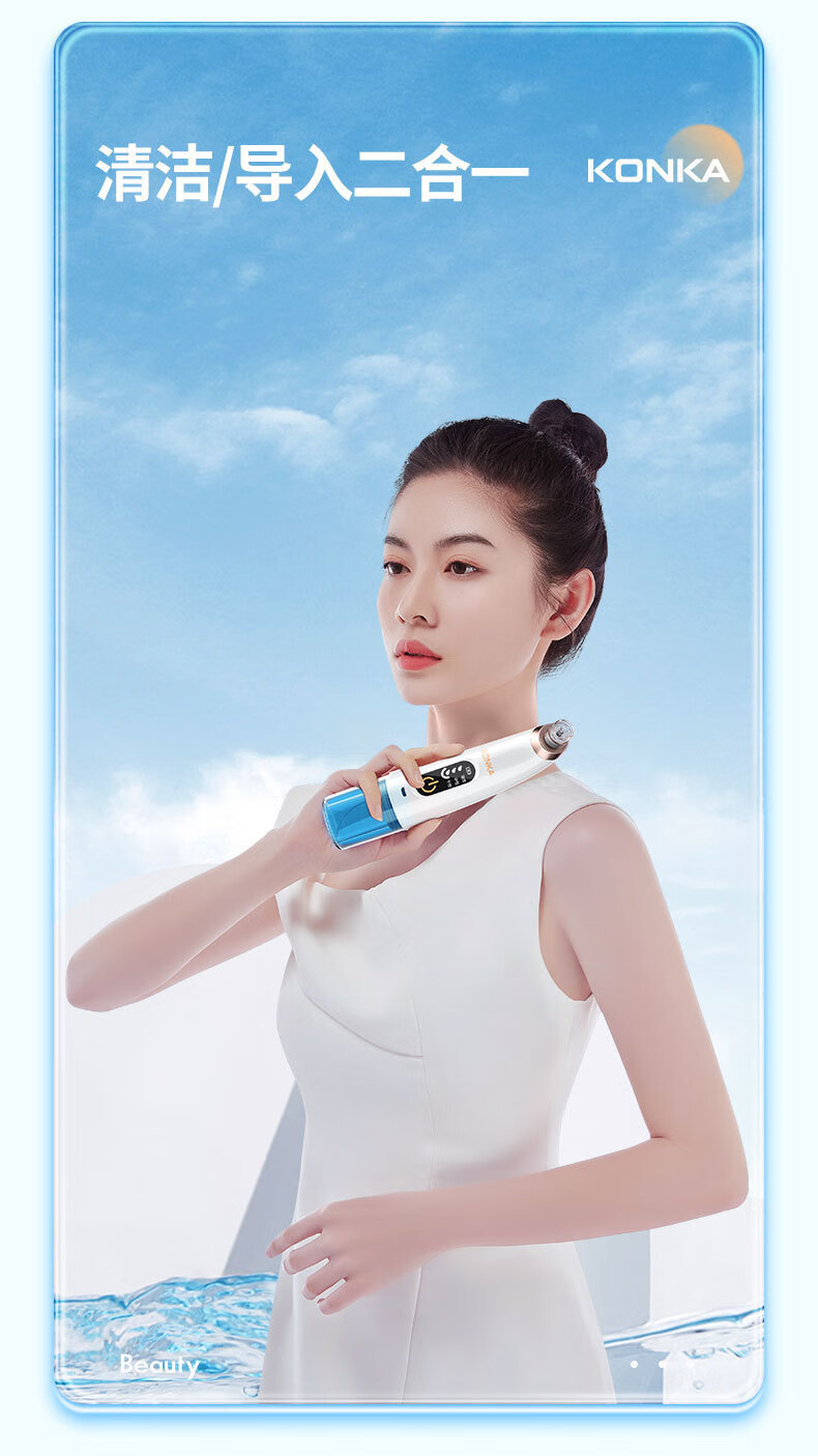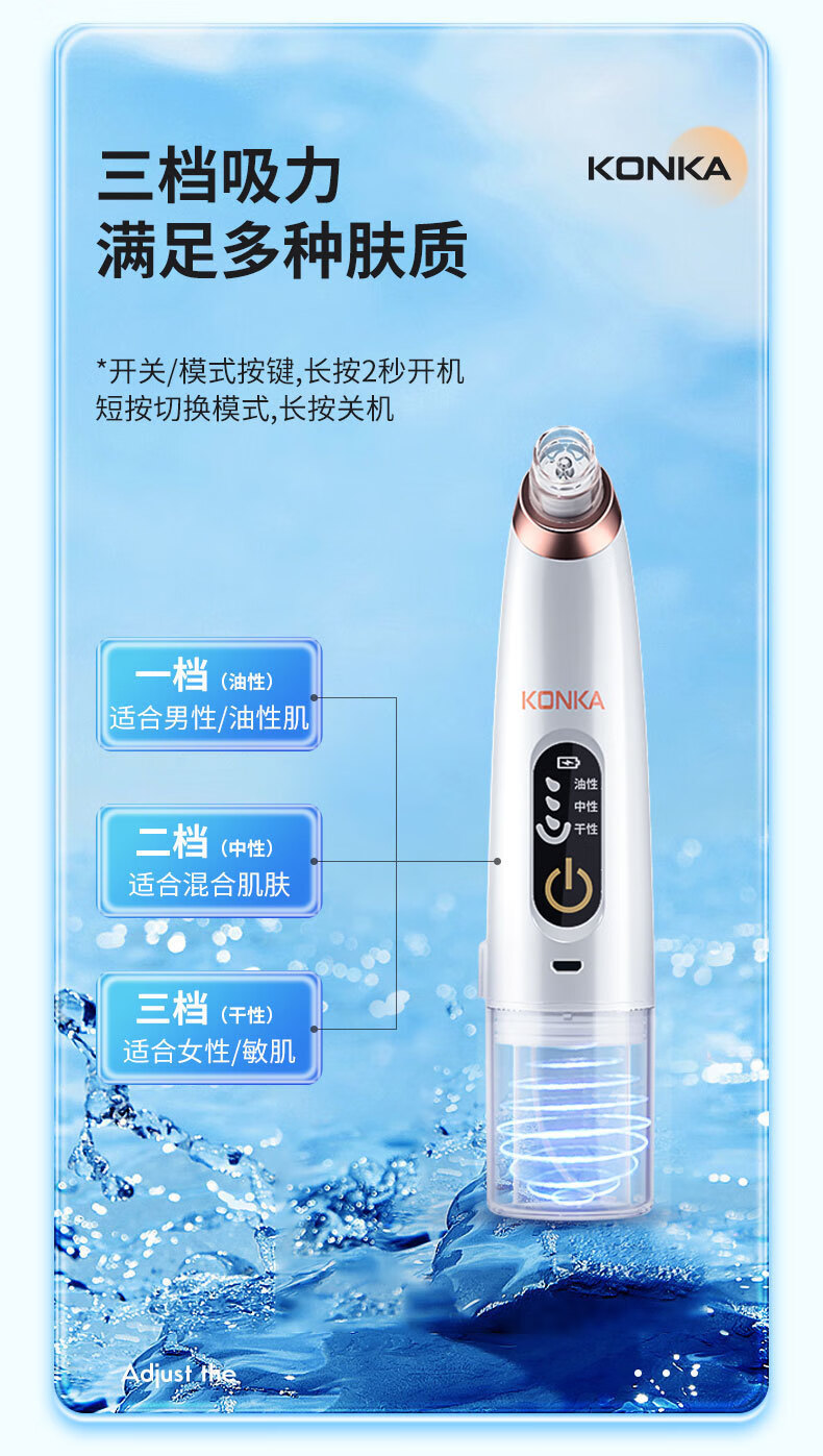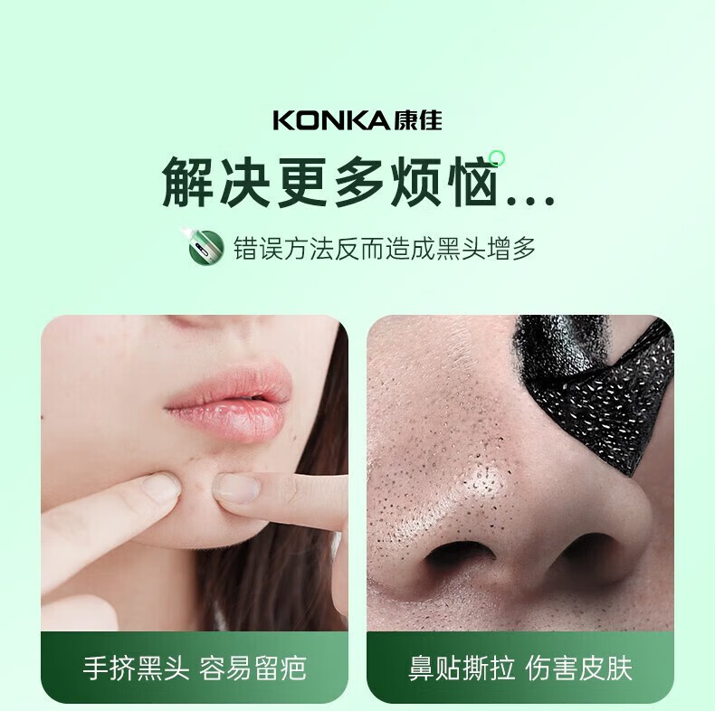 KONKA blackhead extractor, blackhead suction instrument, cleaning artifact, facial cleansing and beauty instrument for men and women, pore acne, small bubbles, three levels of suction power + 6 suction heads