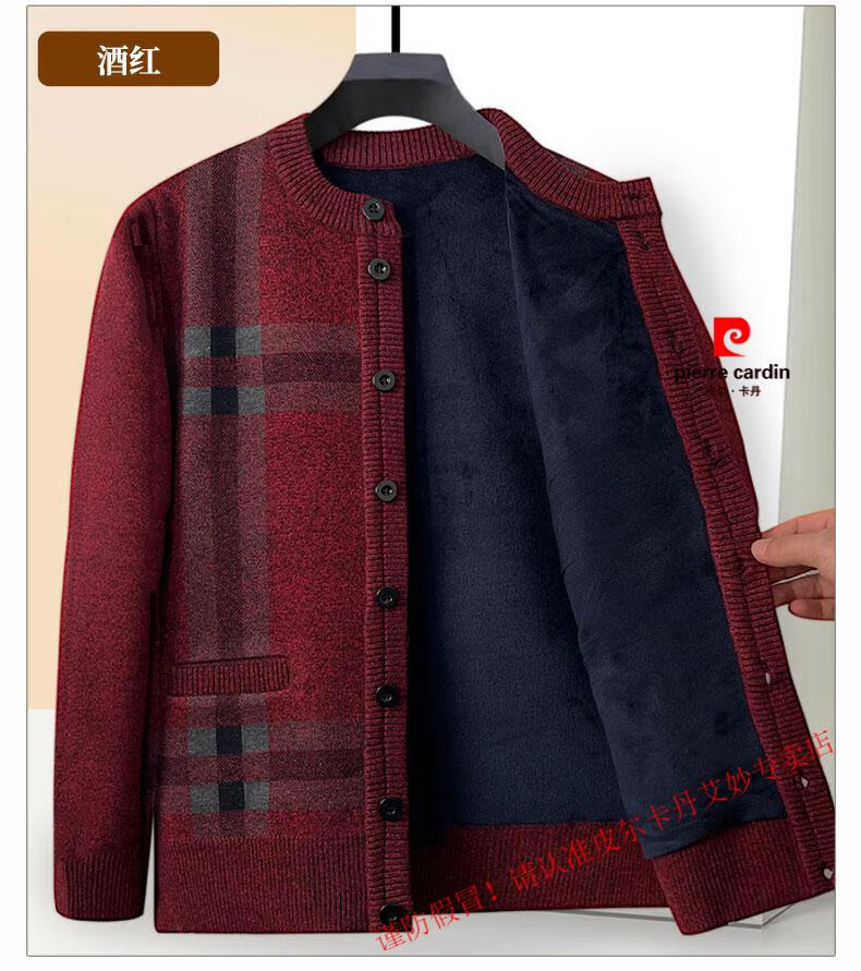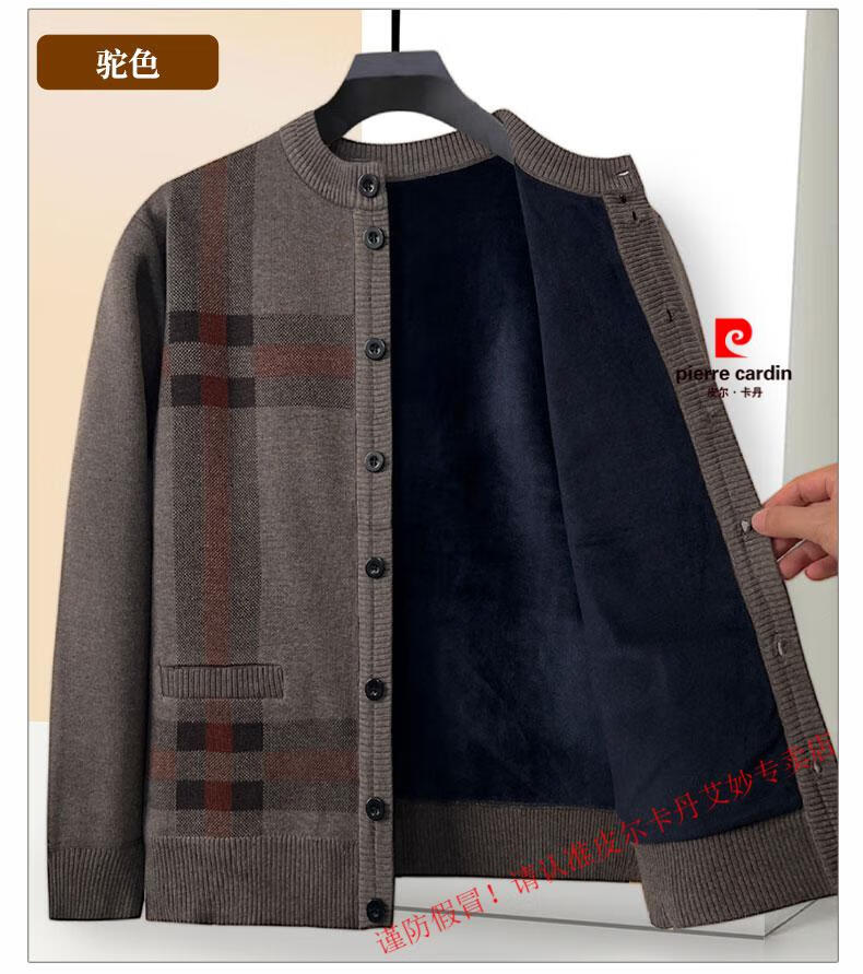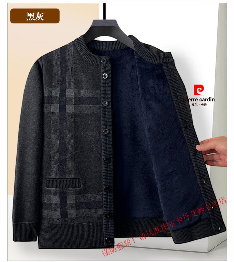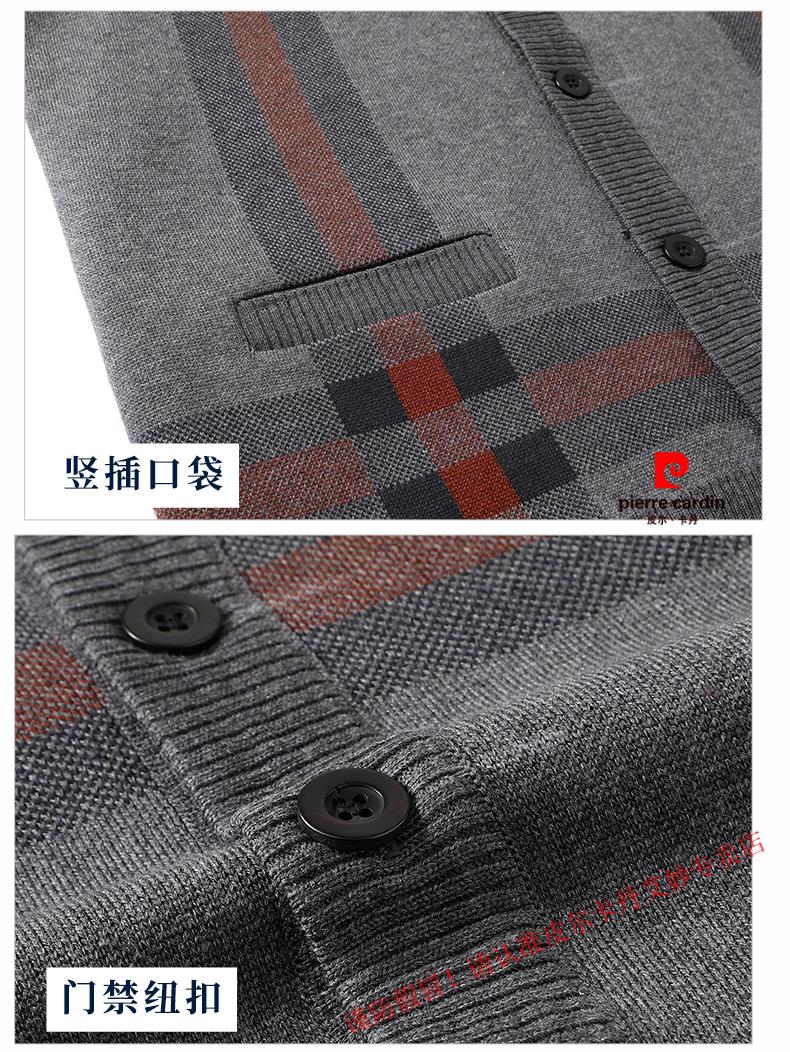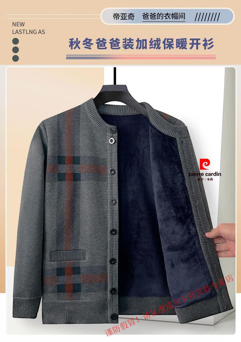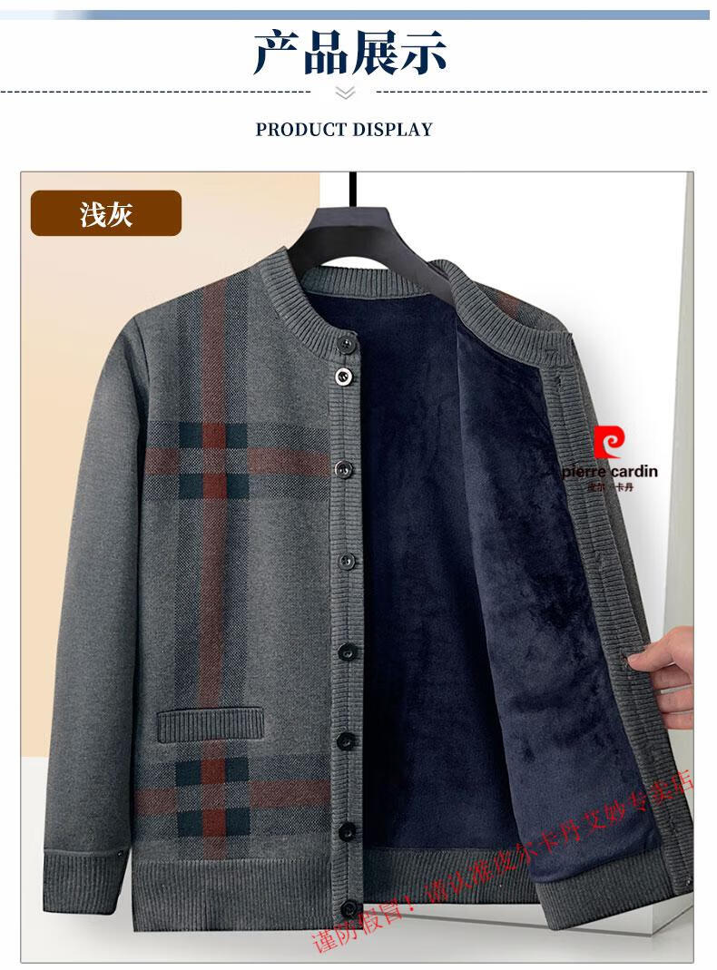 Pierre Cardin wool knitted cardigan middle-aged men spring and autumn new buttoned knitted sweater jacket daddy versatile top 8326 light gray warm plus velvet L 110 110-130Jin Jin is equal to about 0.5 kg