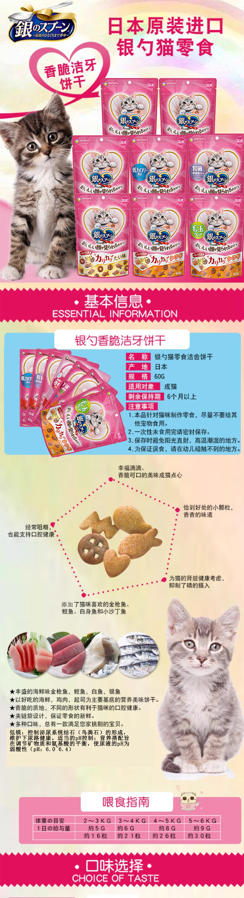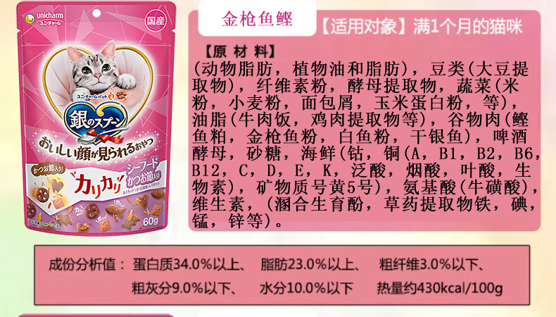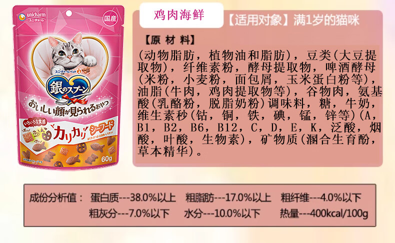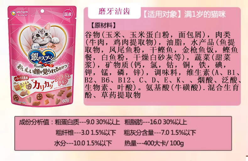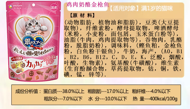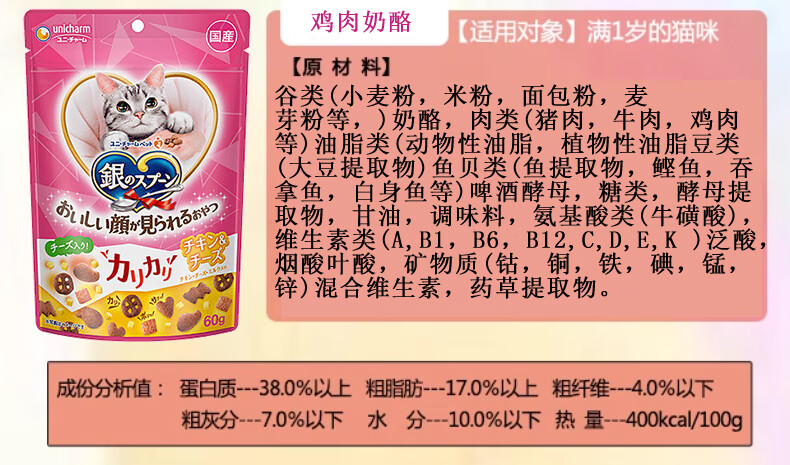 Aier Japan imported silver spoon cat snacks and biscuits series for young cats, hair cleaning, teeth cleaning, crunchy snacks, chicken cheese tuna 60g 0g New date (new and old packaging are shipped alternately)