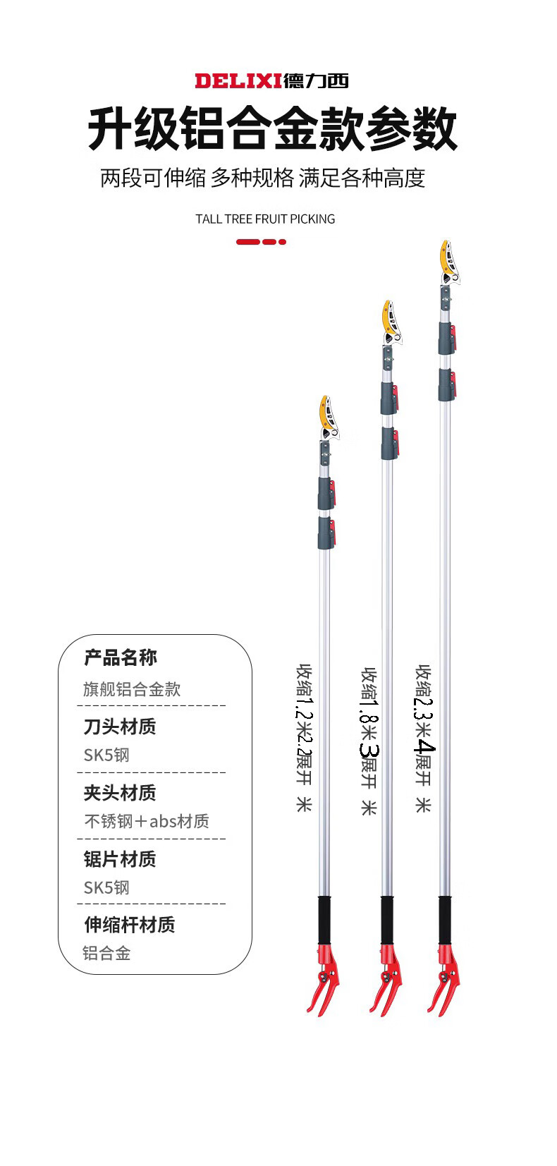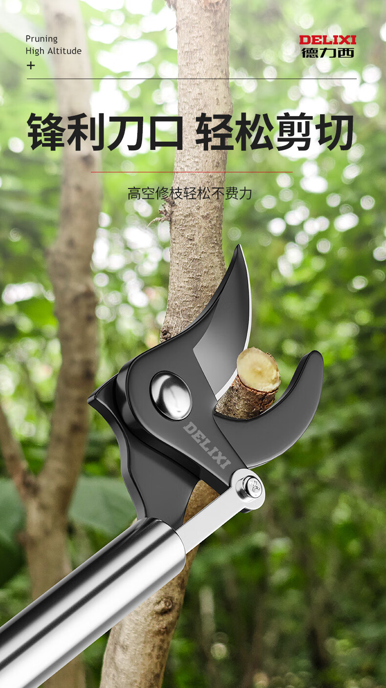 Delixi high-altitude pruning shears, telescopic pole, stainless steel, special scissors for pruning high-branch fruit trees and pruning branches. Delixi's award-winning brand brand tools. After-sales service.