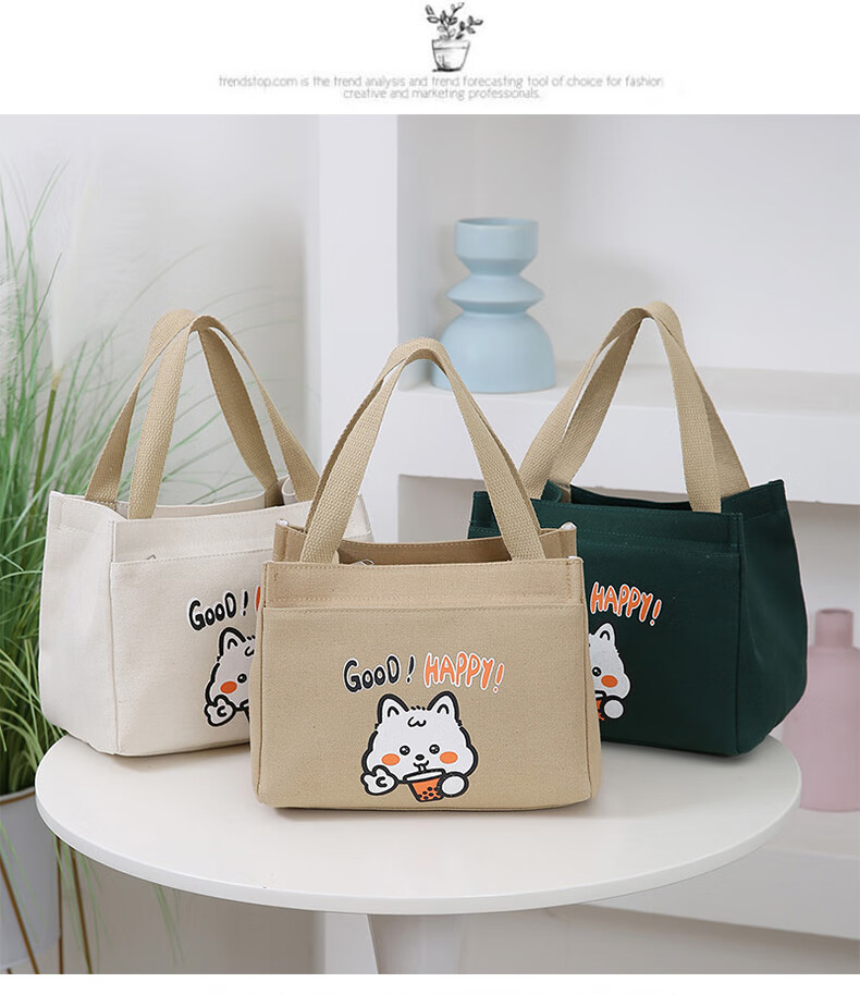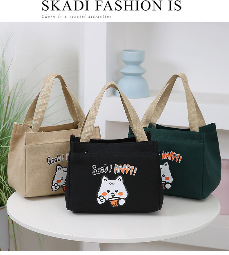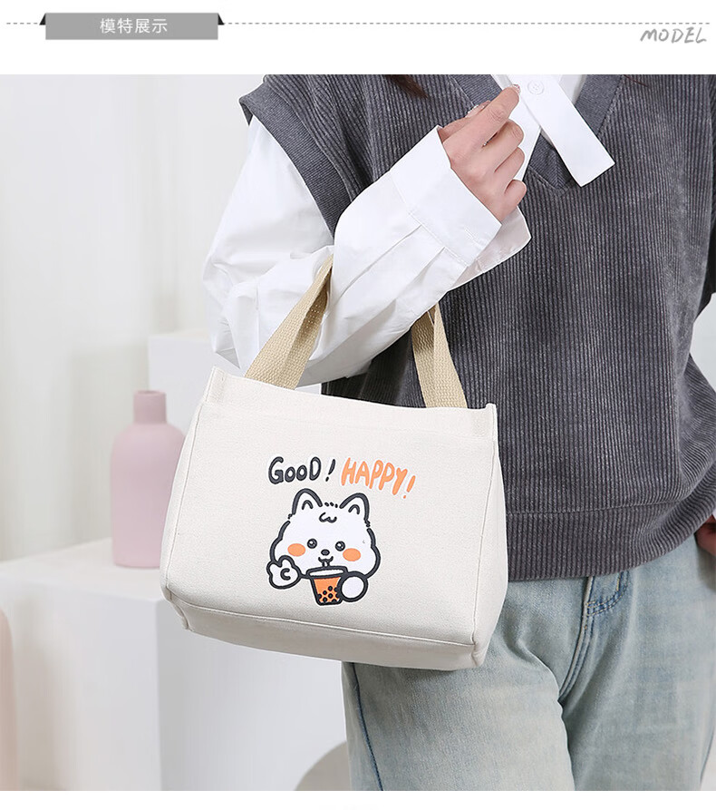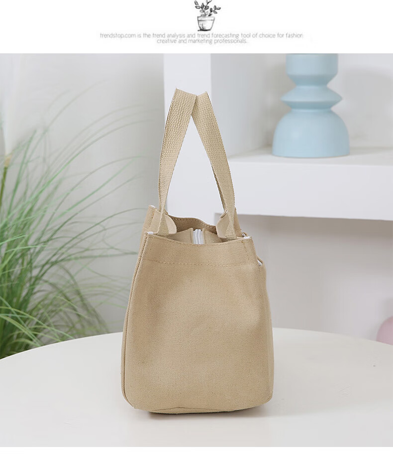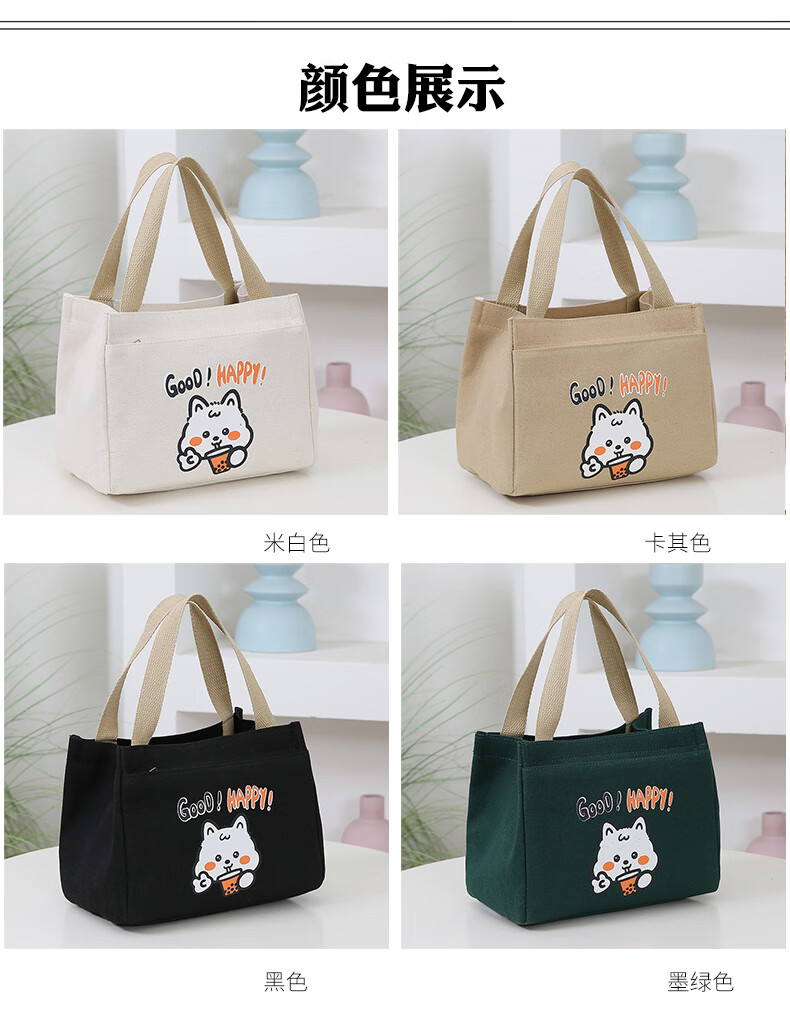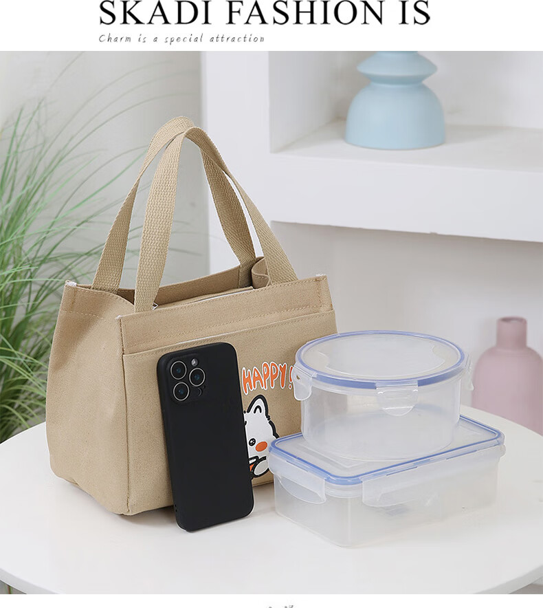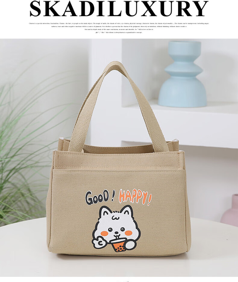 Hand-held lunch bag, student lunch box bag, office worker’s small lunch bag, lunch bag, mother’s hand-held small bag, Happy handbag-khaki//