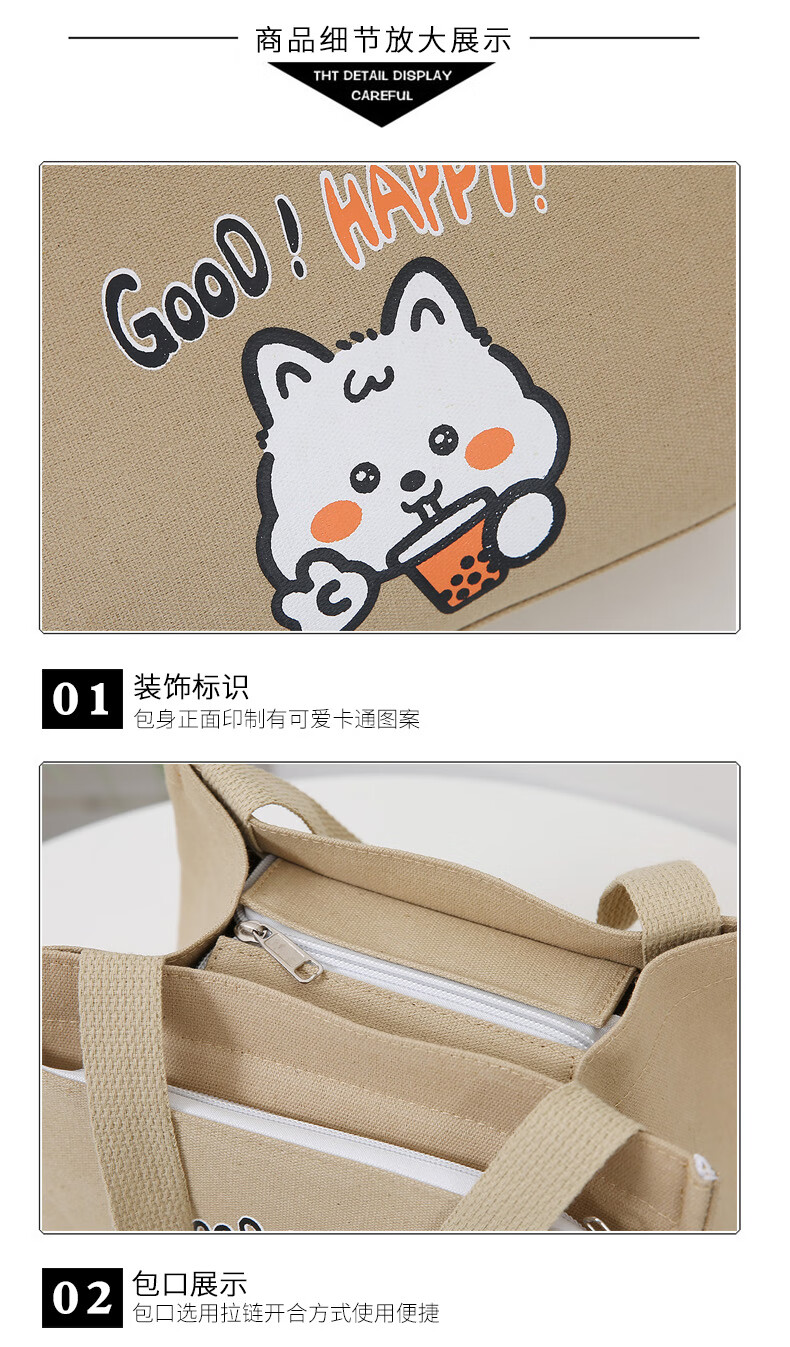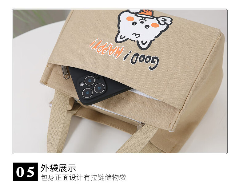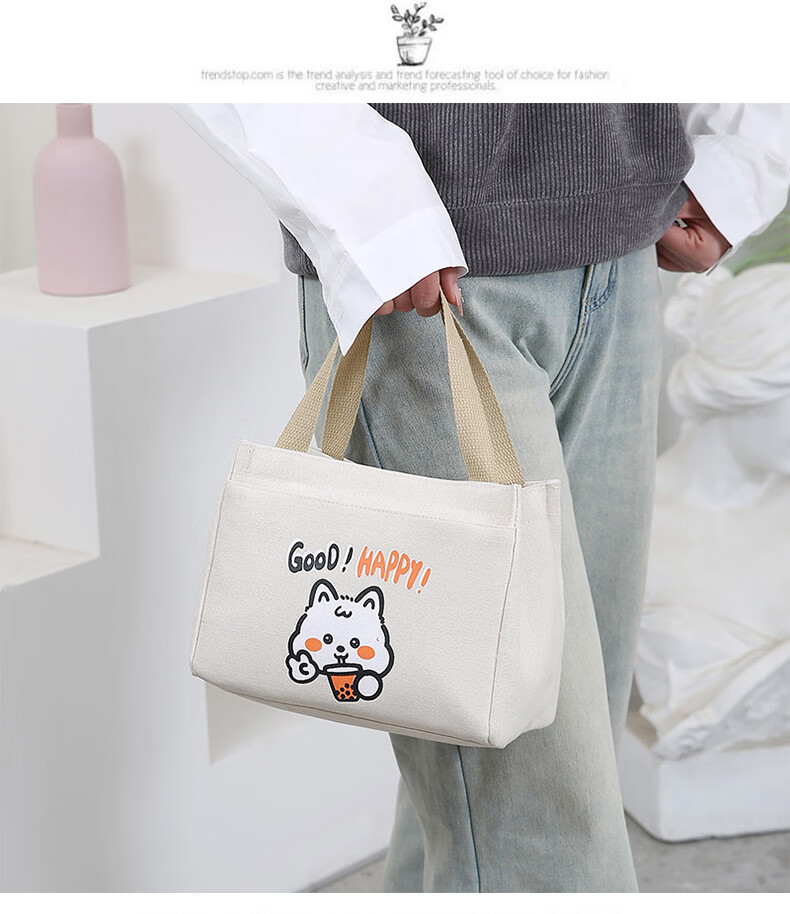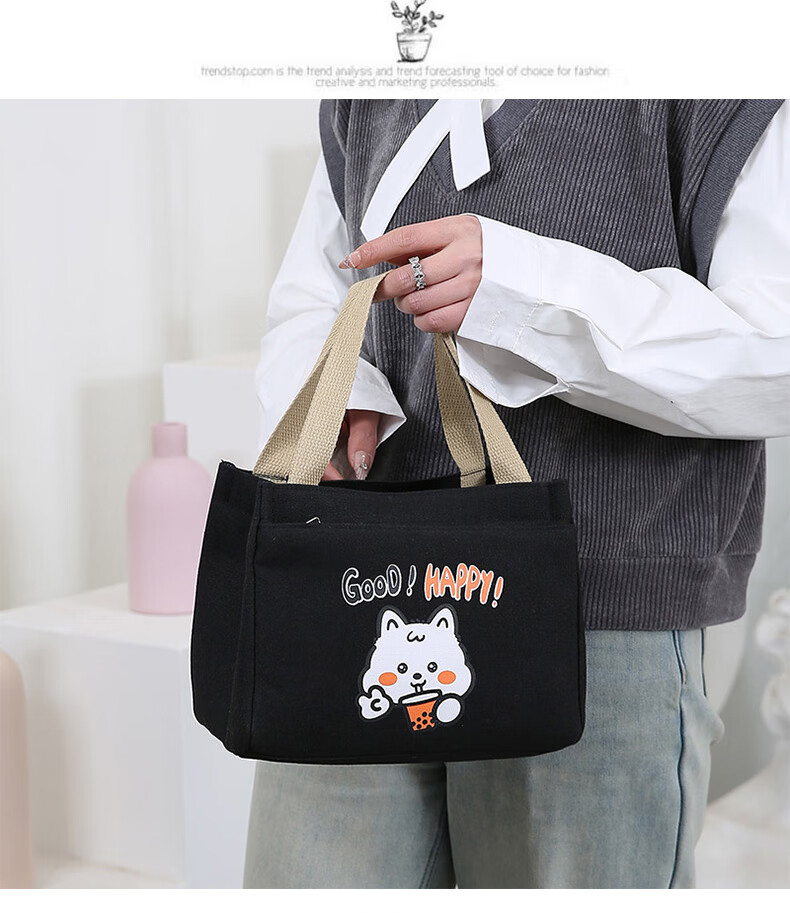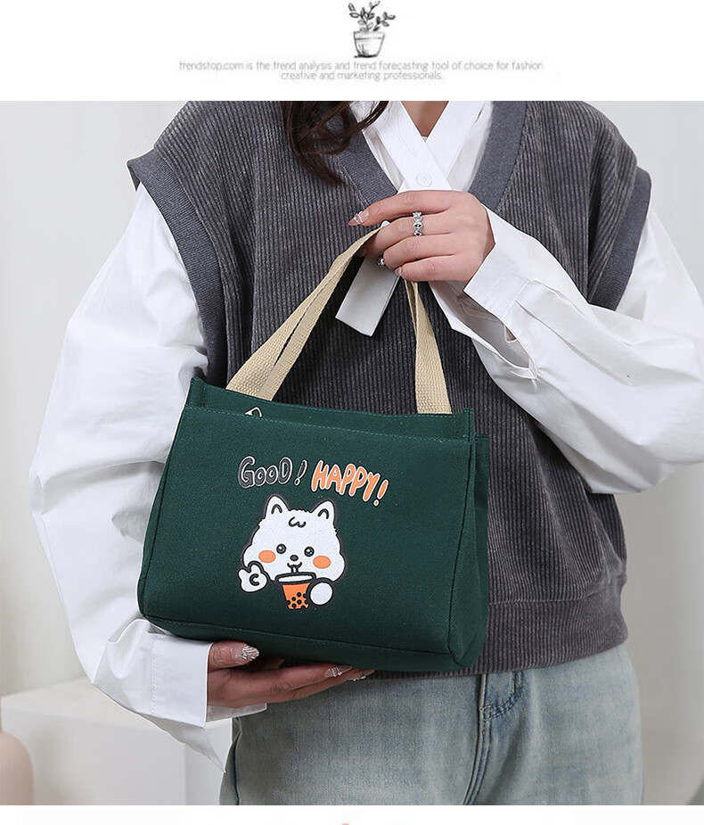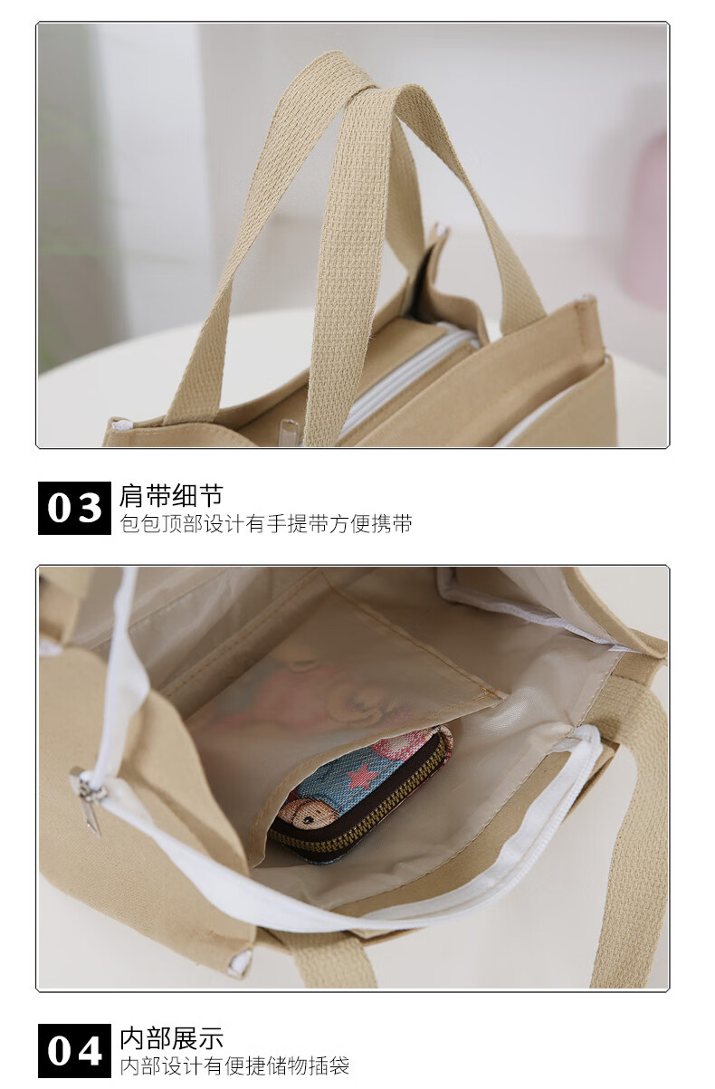 Hand-held lunch bag, student lunch box bag, office worker’s small lunch bag, lunch bag, mother’s hand-held small bag, Happy handbag-khaki//