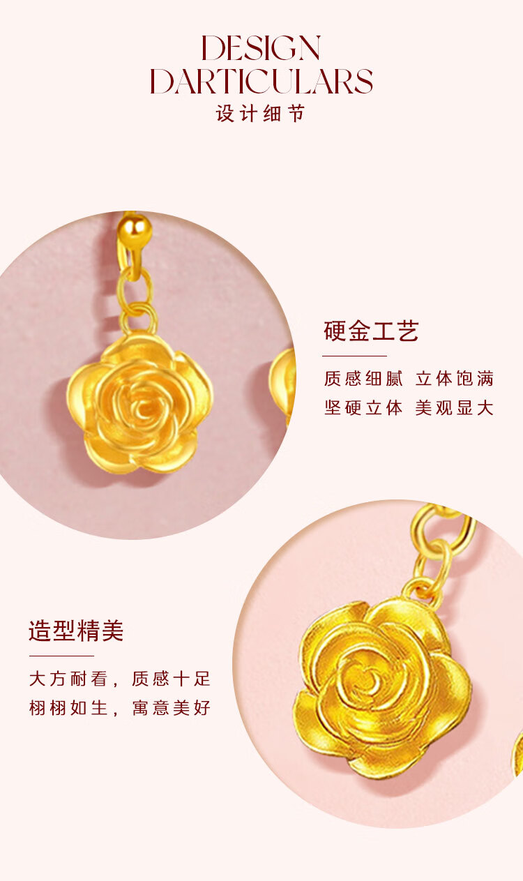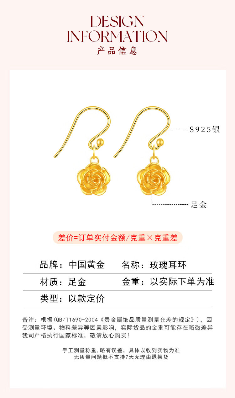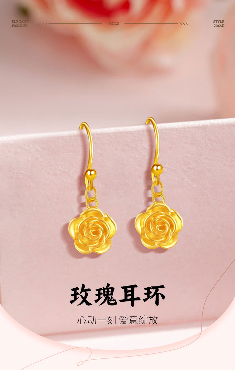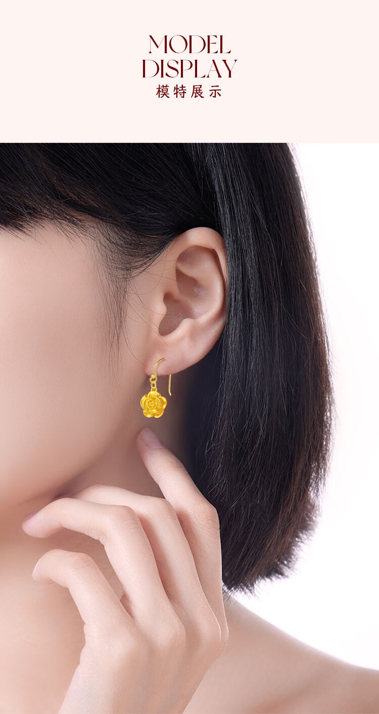 CHINA GOLD Romantic Rose Gold Earrings Women's Gold Flower Ear Hook Earrings Valentine's Day Birthday Gift for My Girlfriend Mom Today/Next Day Delivery Rose Earrings + S925 Silver Ear Hooks About 0.6g
