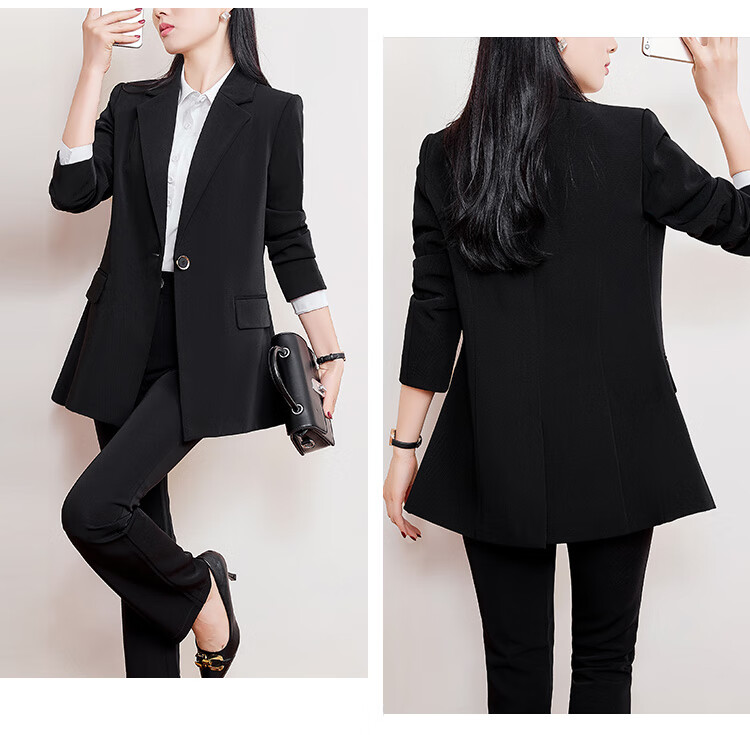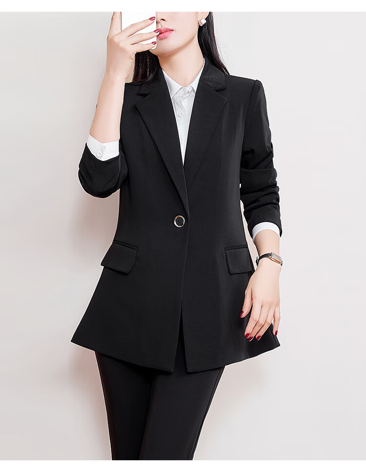 Pierre Cardin plus size plus size professional women's suit, fat, high-end, slim, interview formal suit, spring and autumn work clothes, black jacket XL 120-140Jin Jin is equal to 0.5 kg