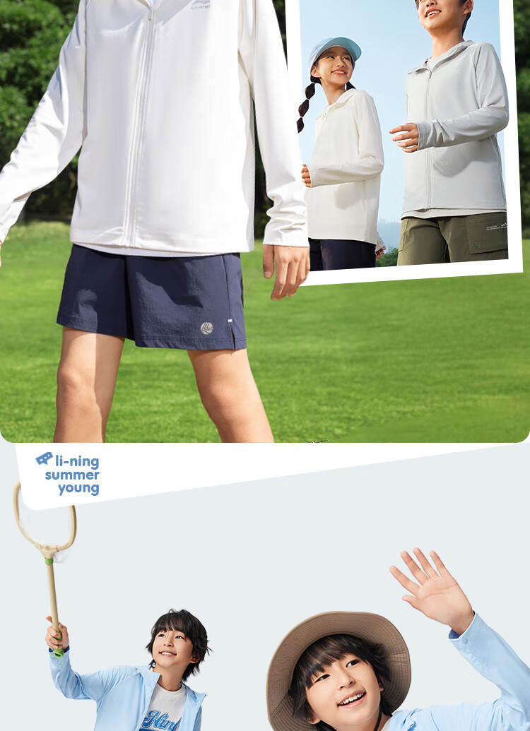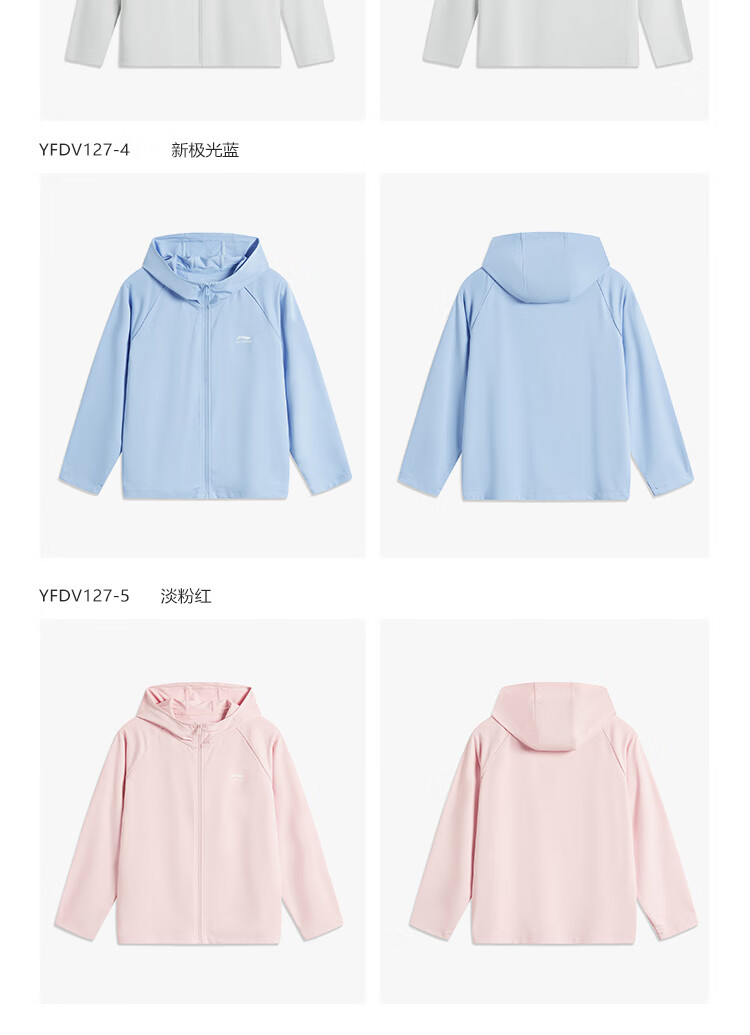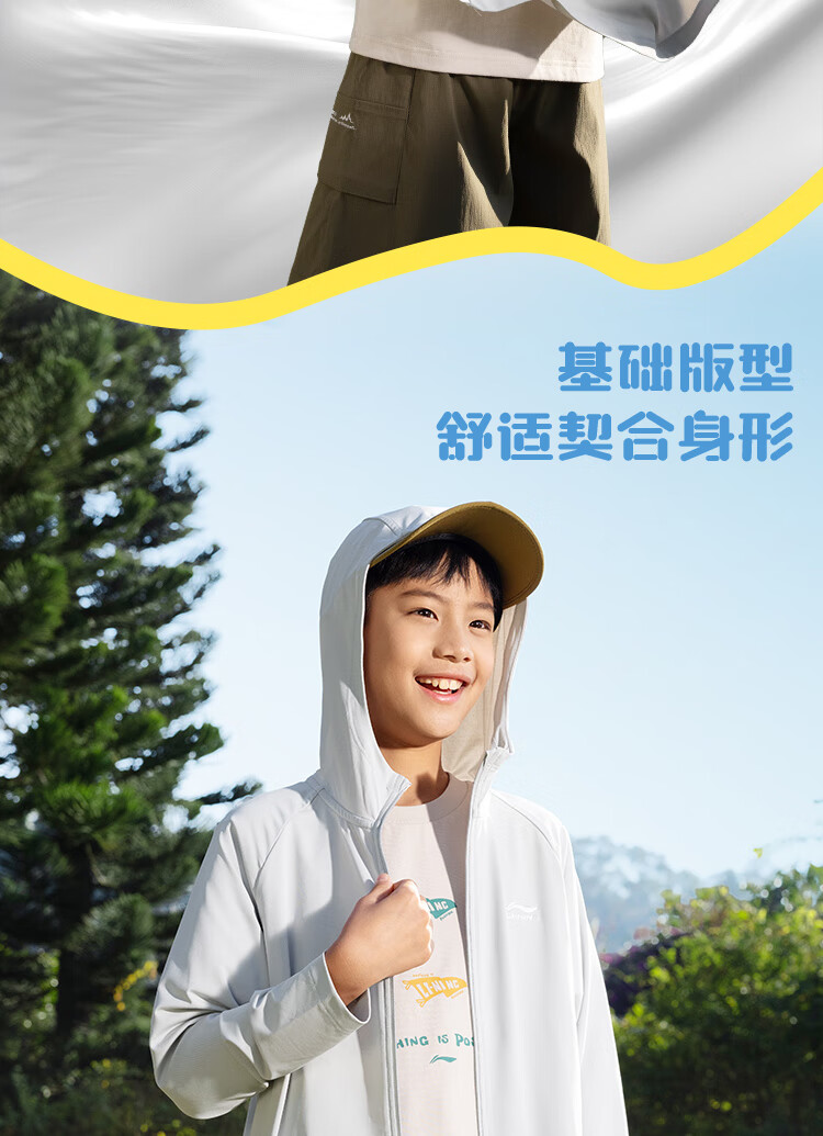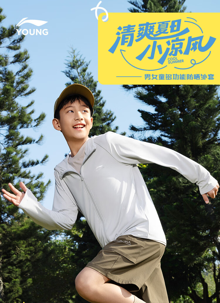 Li Ning Children's Clothing Children's Sun Protection Clothing for Men and Women Spring and Summer Knitted Cool Sun Protection Clothing Sports Jacket YFDV127 New Aurora Blue-4 140