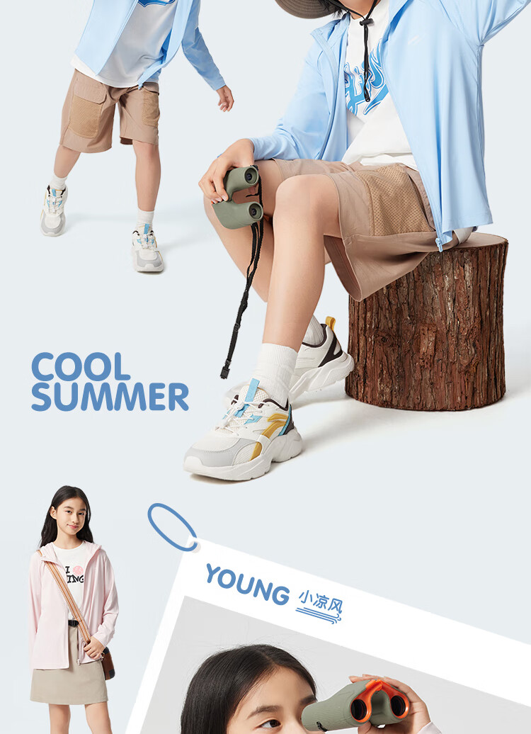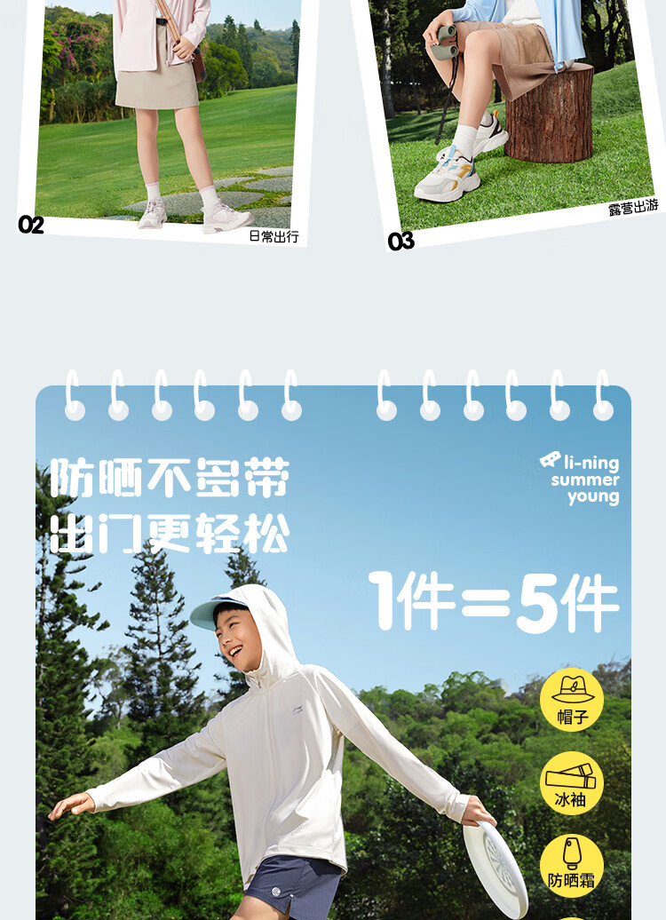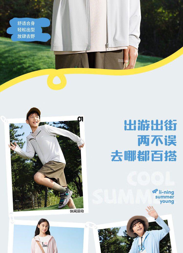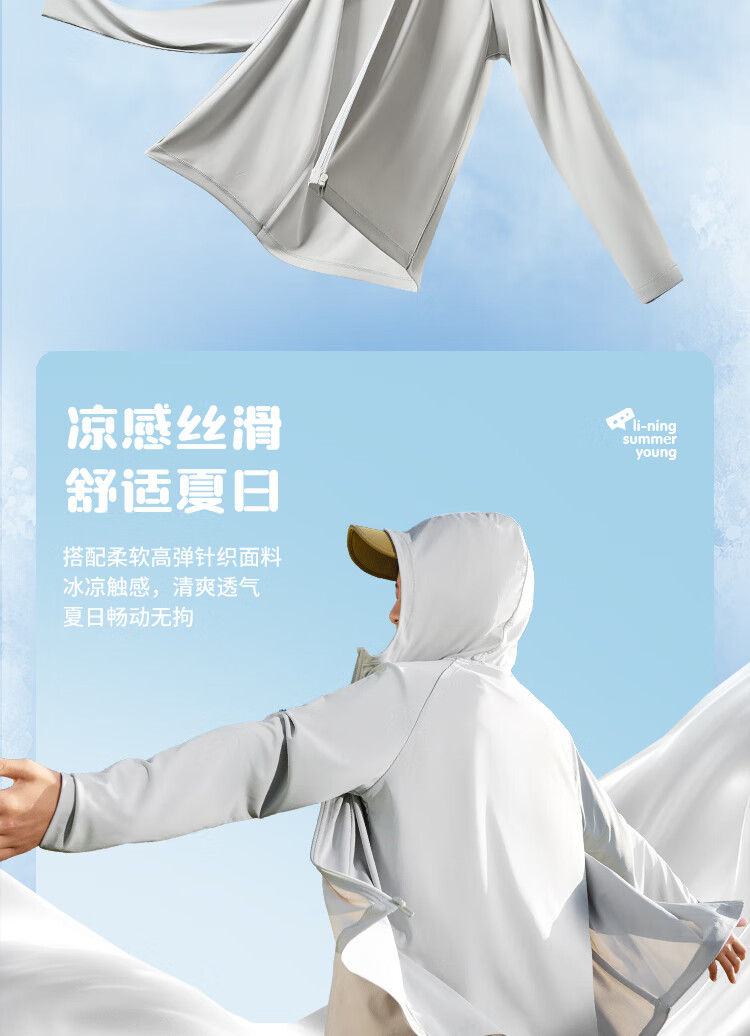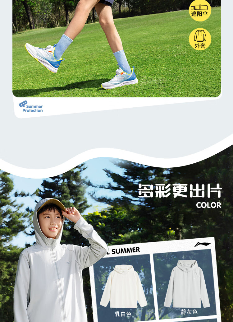 Li Ning Children's Clothing Children's Sun Protection Clothing for Men and Women Spring and Summer Knitted Cool Sun Protection Clothing Sports Jacket YFDV127 New Aurora Blue-4 140