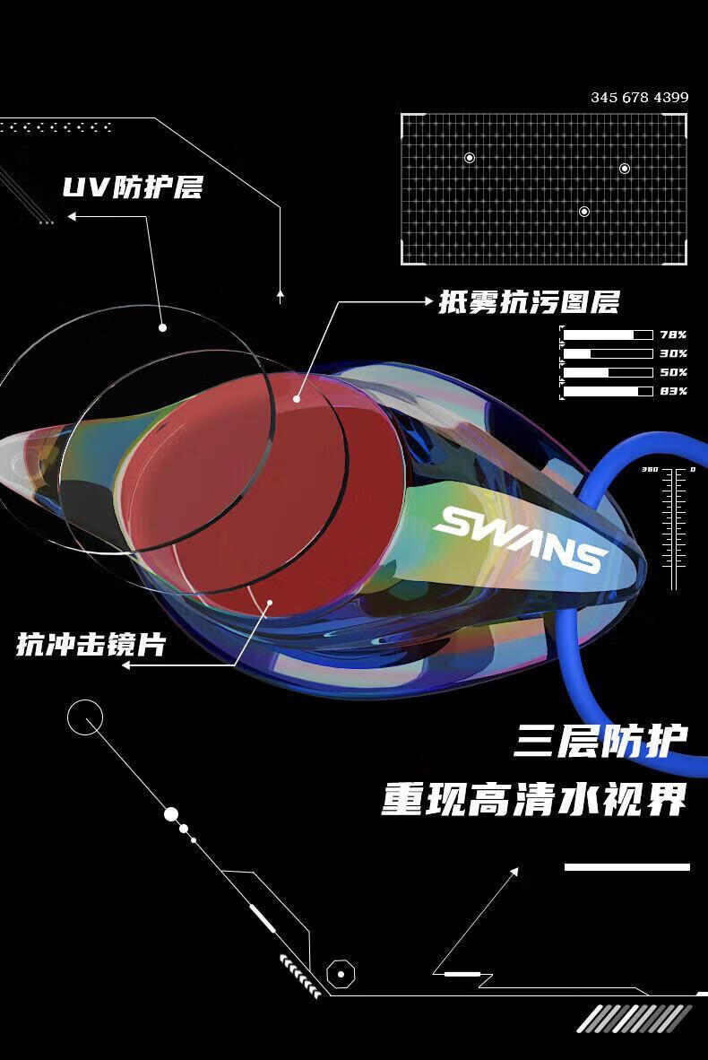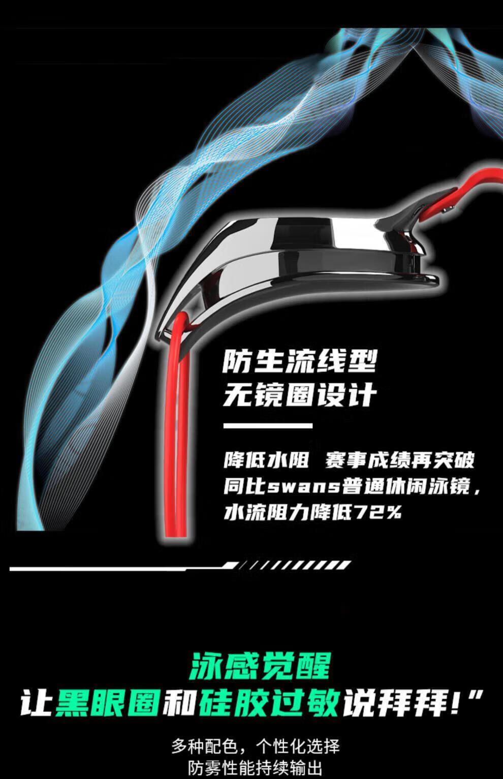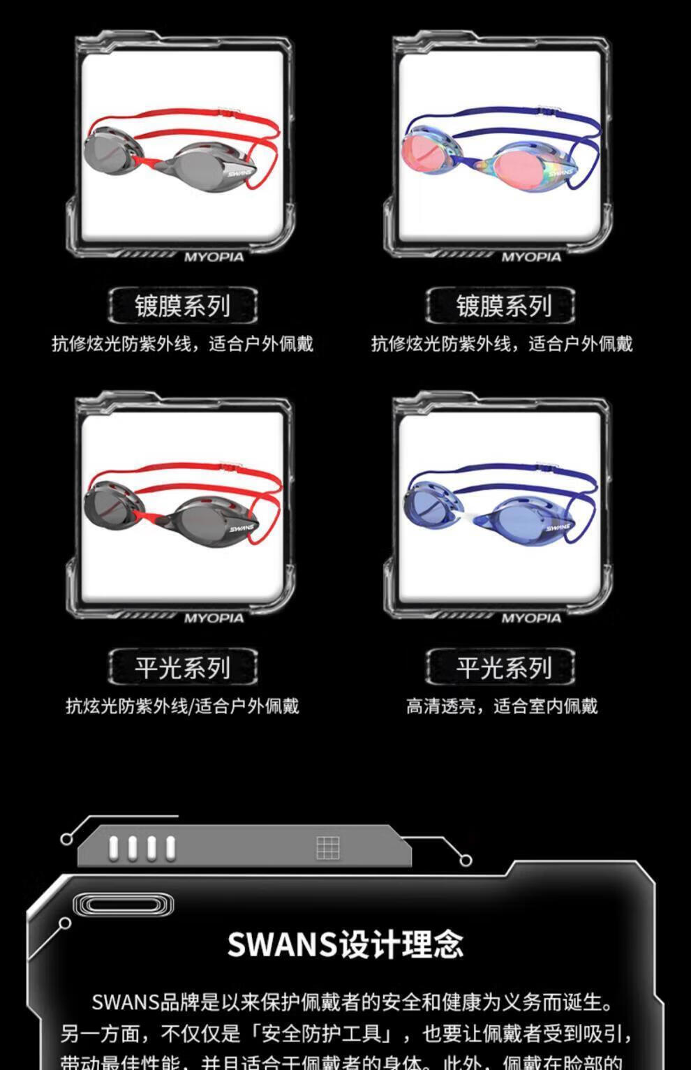 SWANS poetry rhyme no rubber ring swimming goggles men's high-definition waterproof and anti-fog Japanese imported training special swimming goggles SR7M coated dark blue flat light