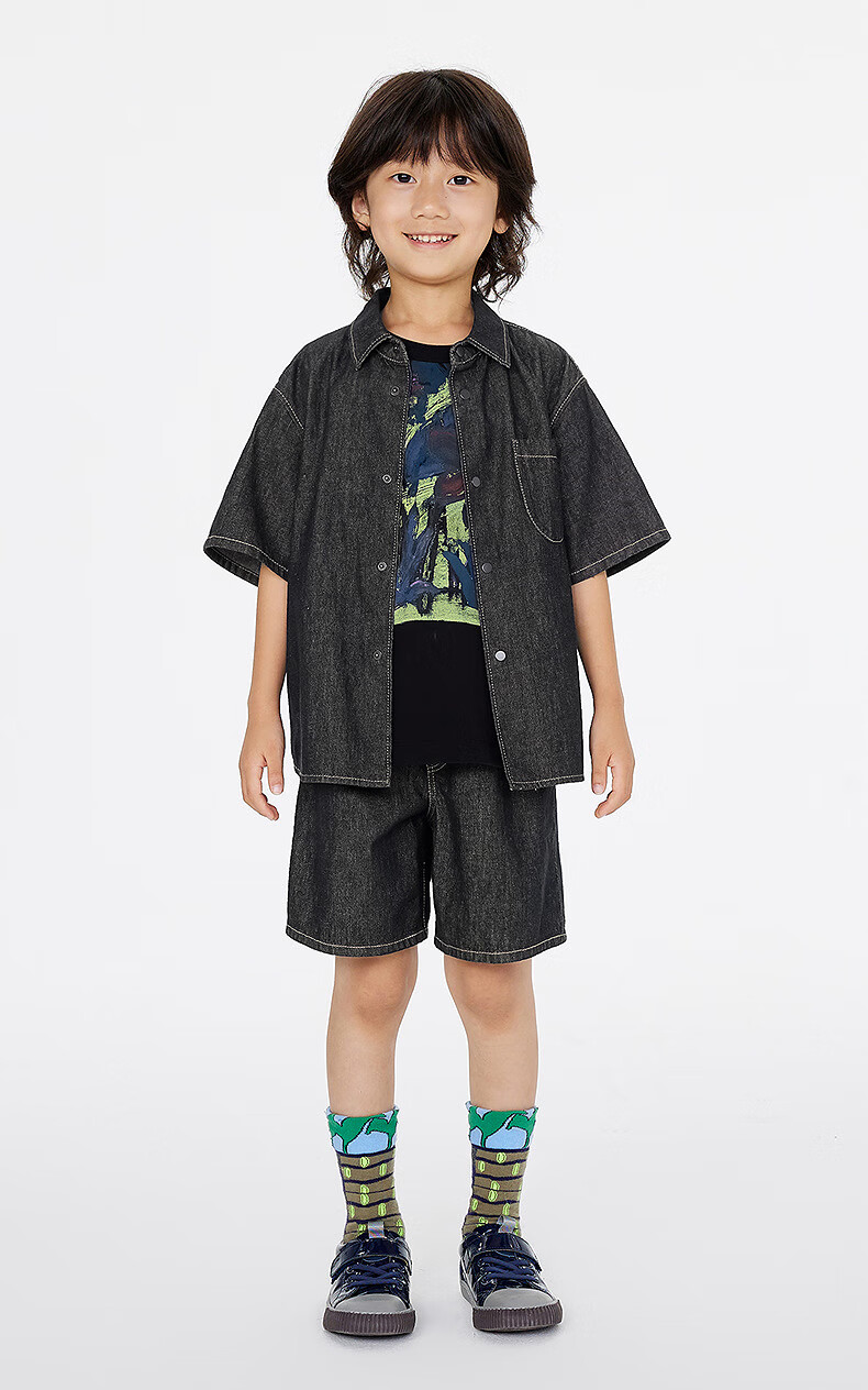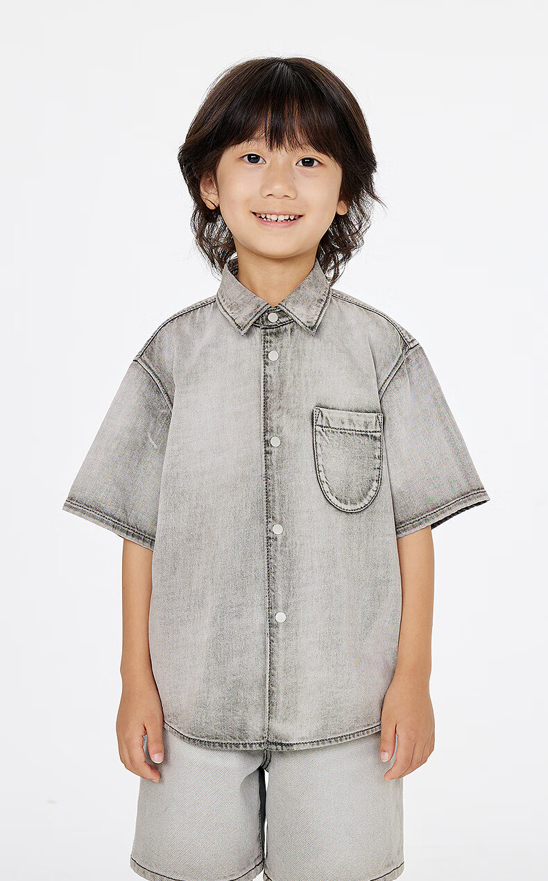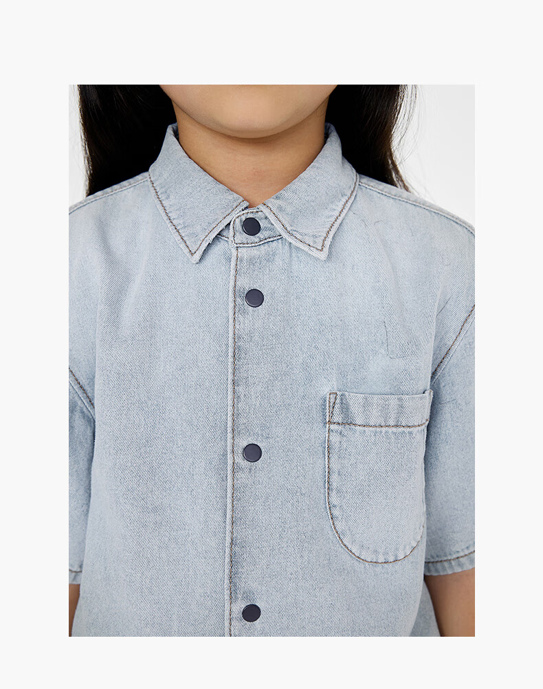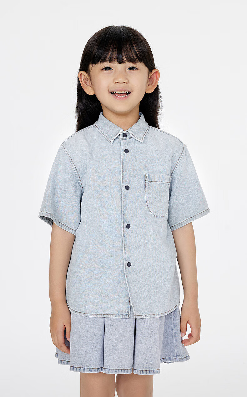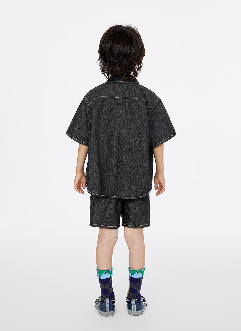 Jnby by JNBY Jiangnan Buyi children's clothing lapel denim shirt short-sleeved loose jacket summer boys and girls 1P4212600 991/denim navy 120 cm