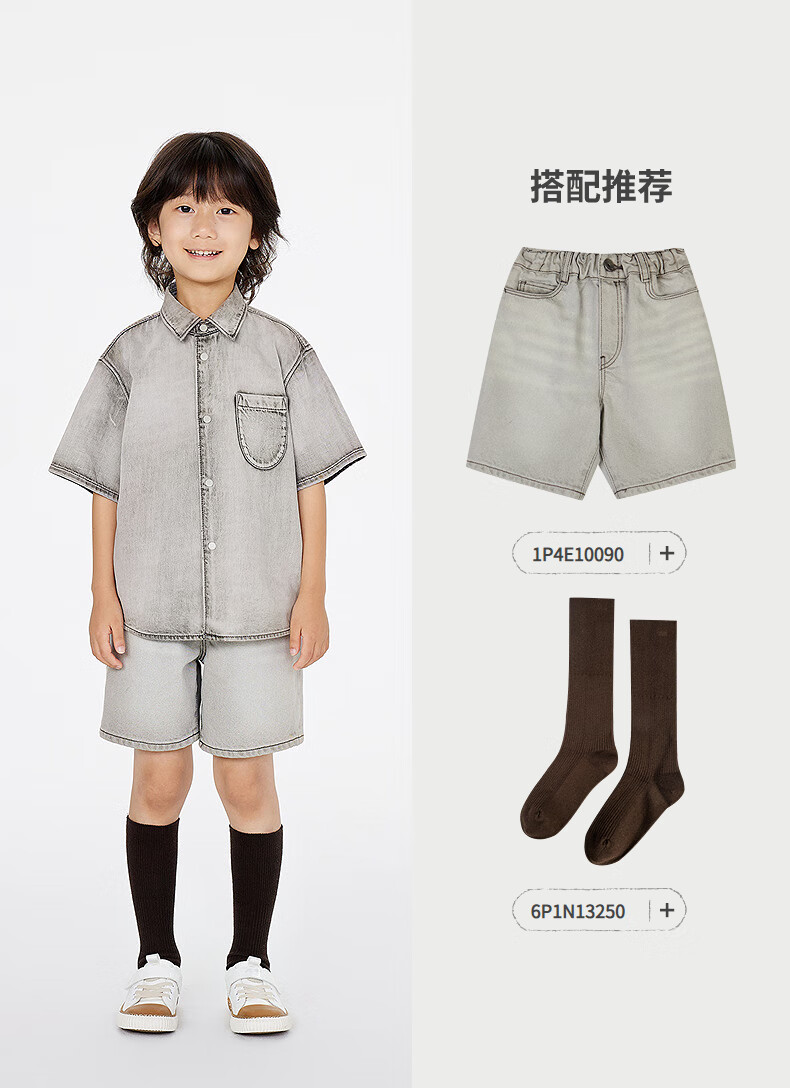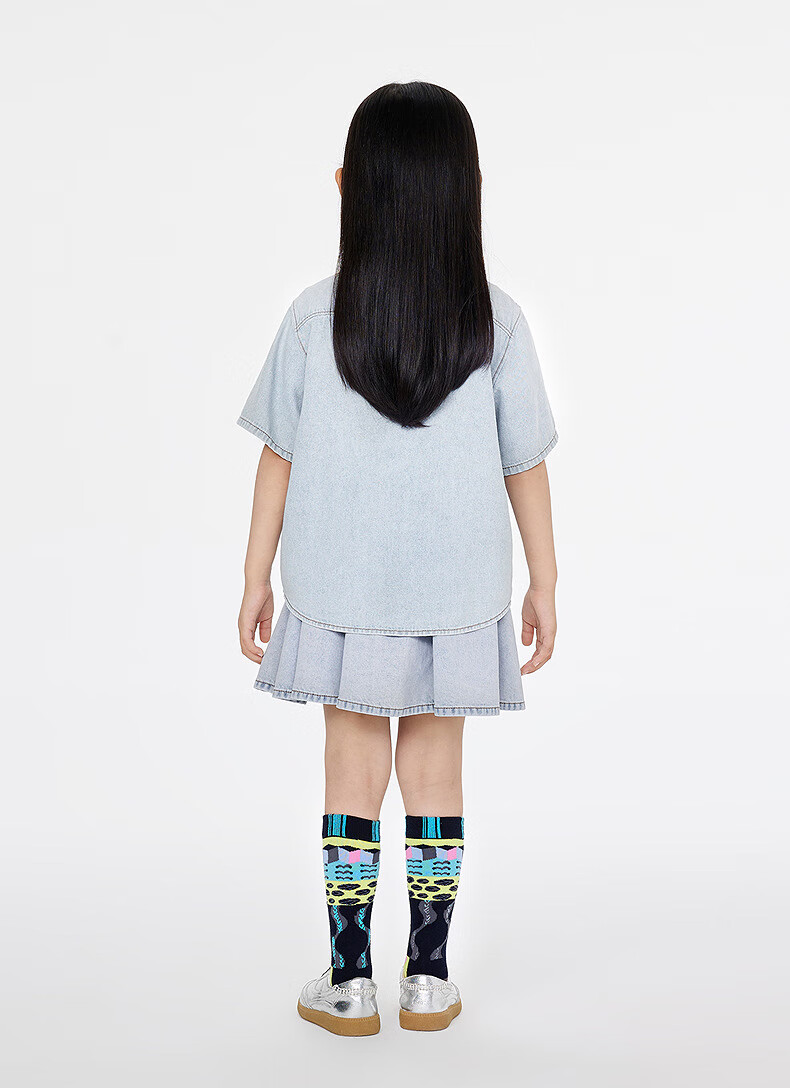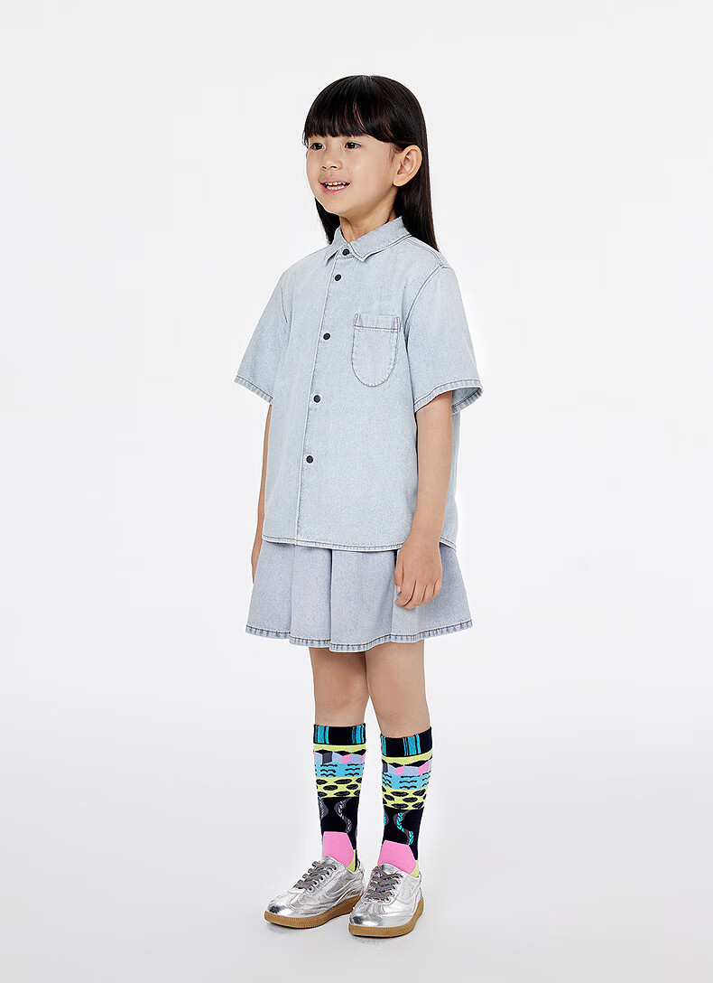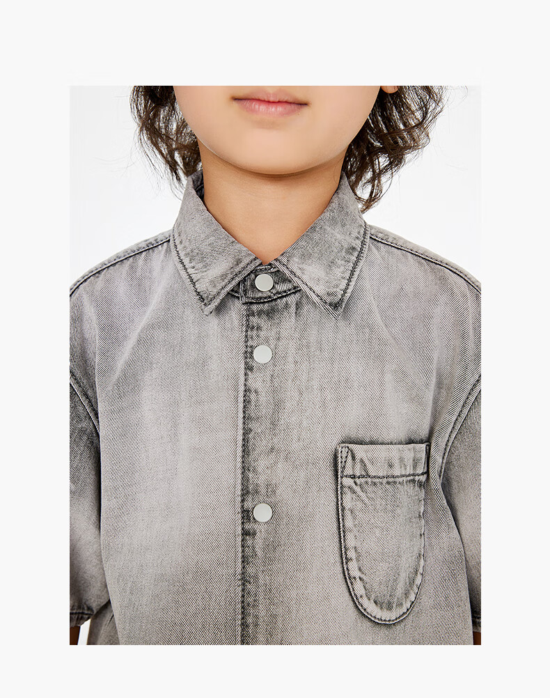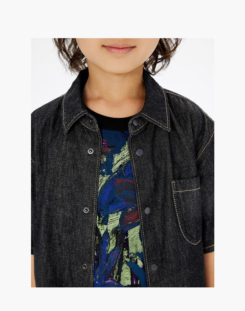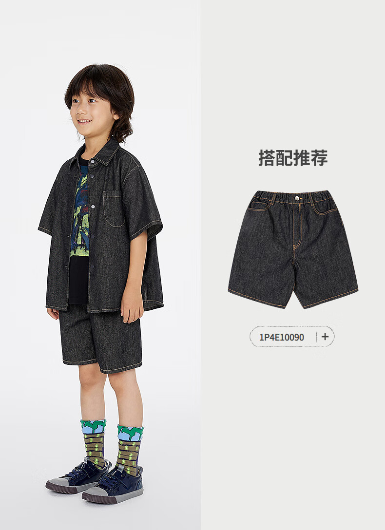 Jnby by JNBY Jiangnan Buyi children's clothing lapel denim shirt short-sleeved loose jacket summer boys and girls 1P4212600 991/denim navy 120 cm