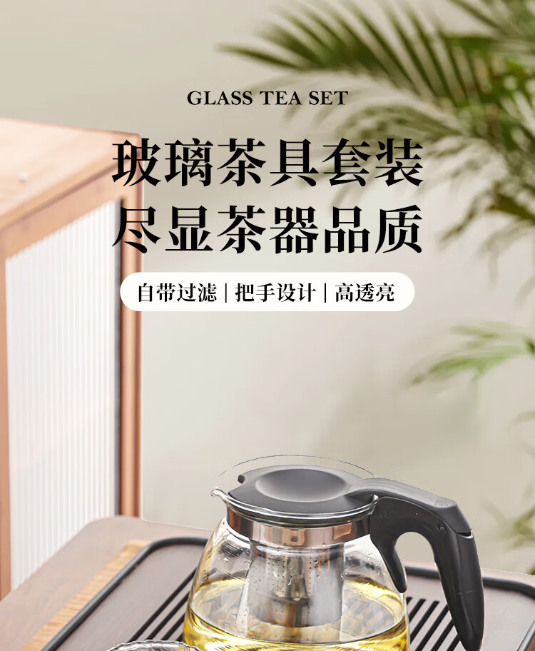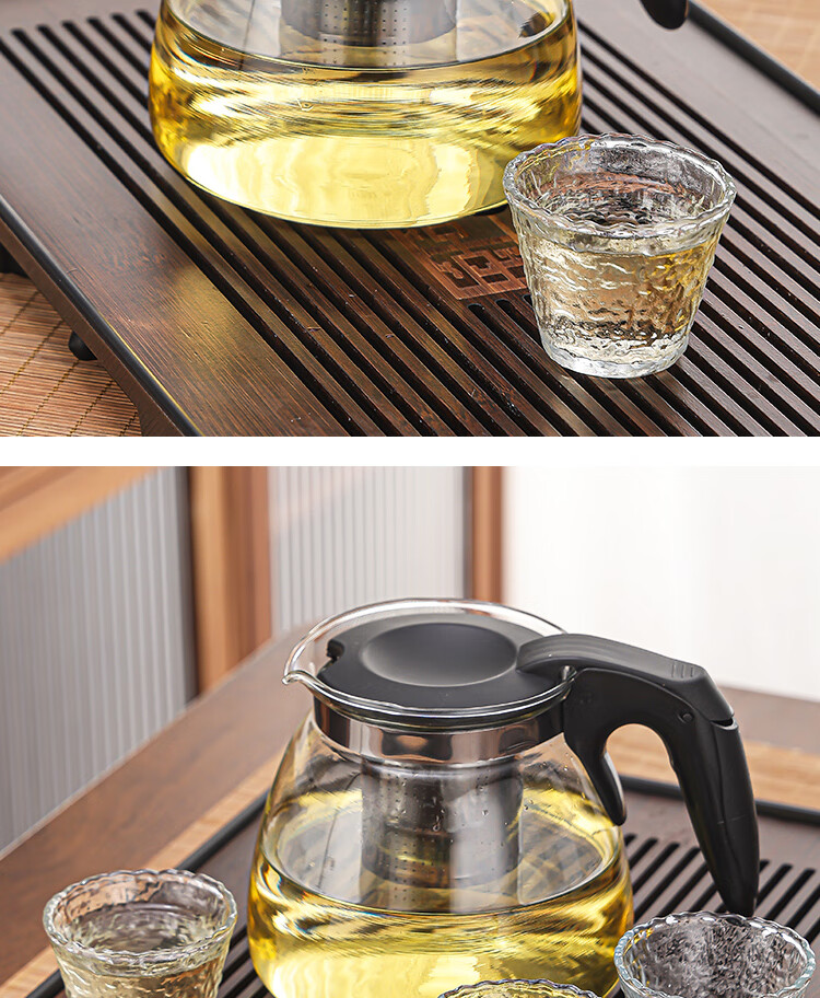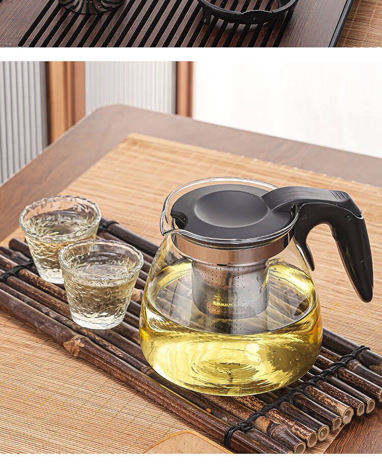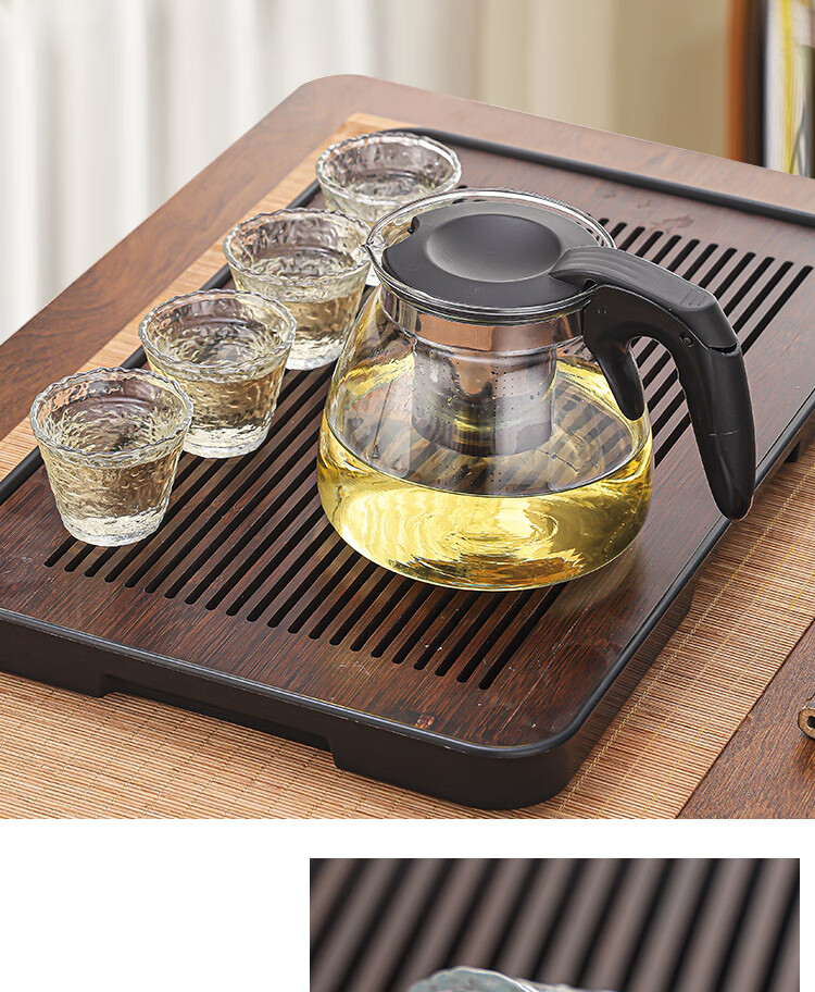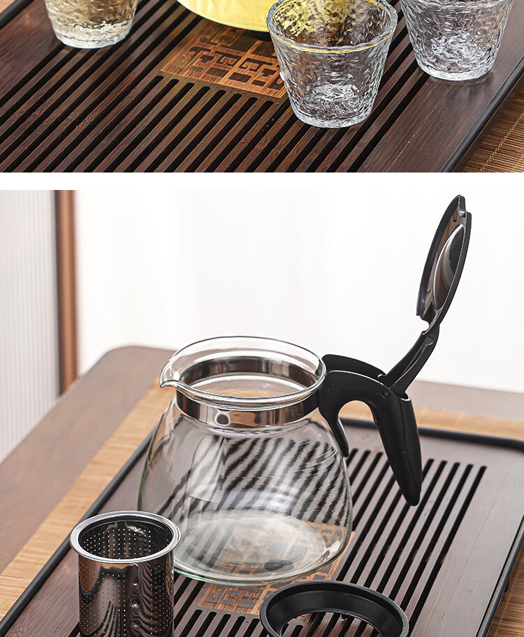 Teapot, tea water separation, large-capacity glass teacup, office tea set, heat-resistant thickened tea set, one pot, four cups