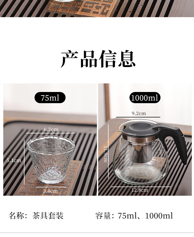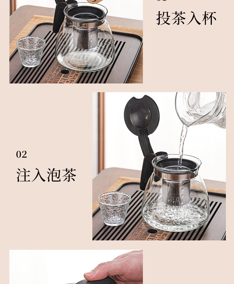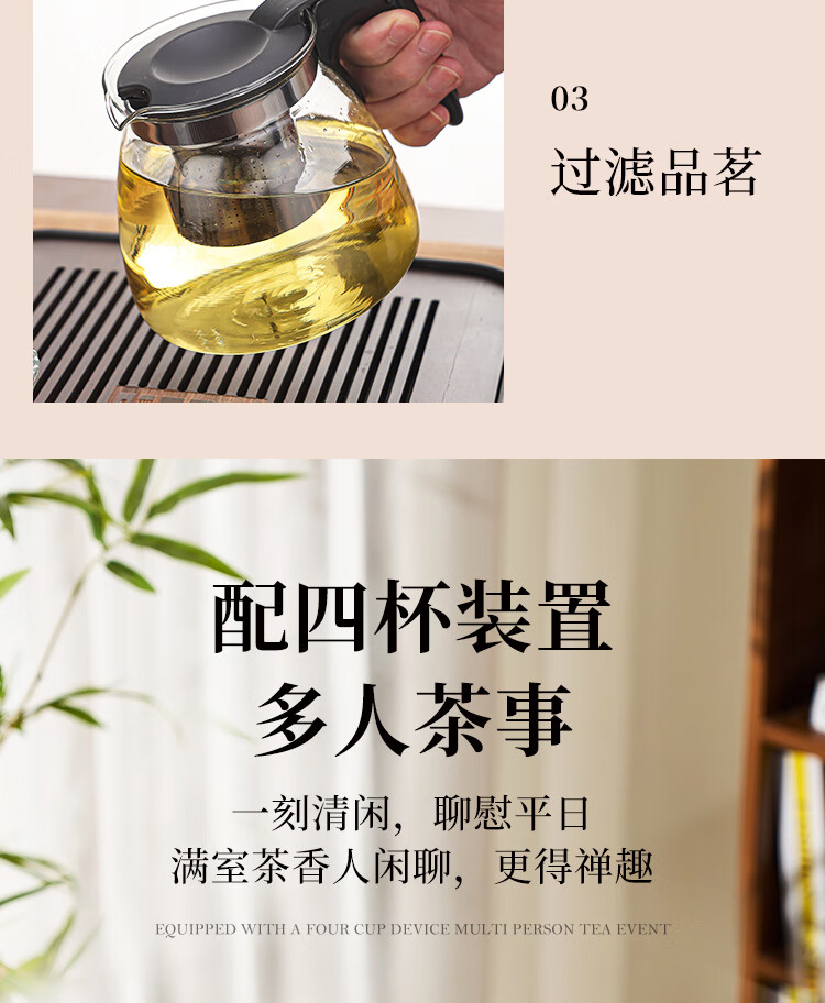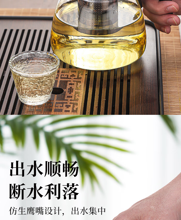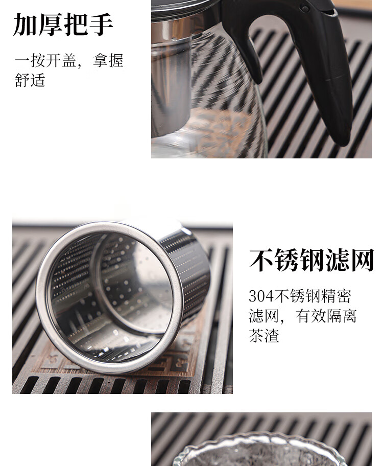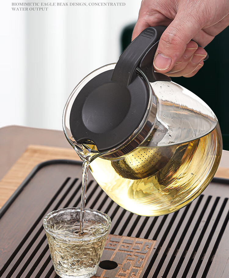 Teapot, tea water separation, large-capacity glass teacup, office tea set, heat-resistant thickened tea set, one pot, four cups
