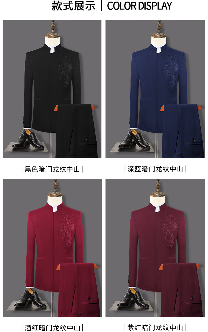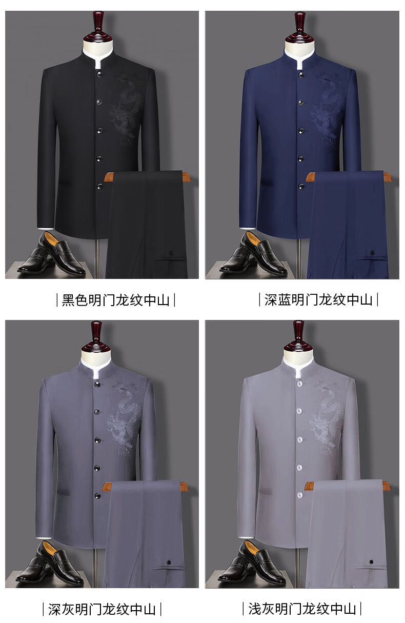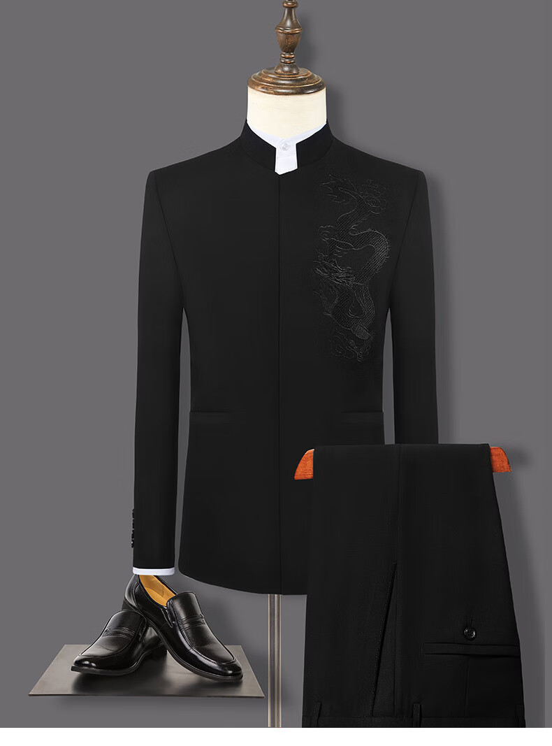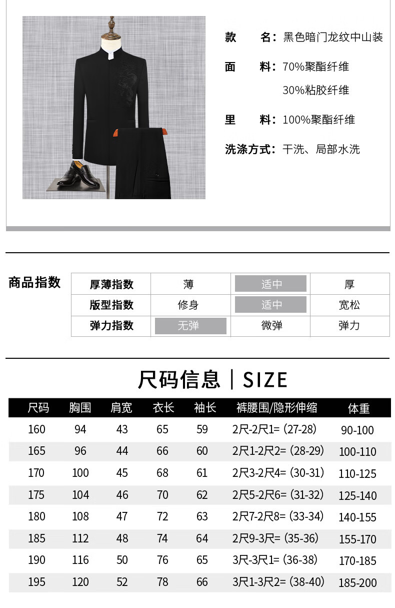 Hengyuanxiang Chinese tunic suit men's slim suit Chinese stand collar Chinese style suit wedding dragon pattern secret door groom and groomsman dress secret door dragon pattern black clothes plus * pants XS 160 weight 90-100Jin Jin is equal to 0.5 kg or so