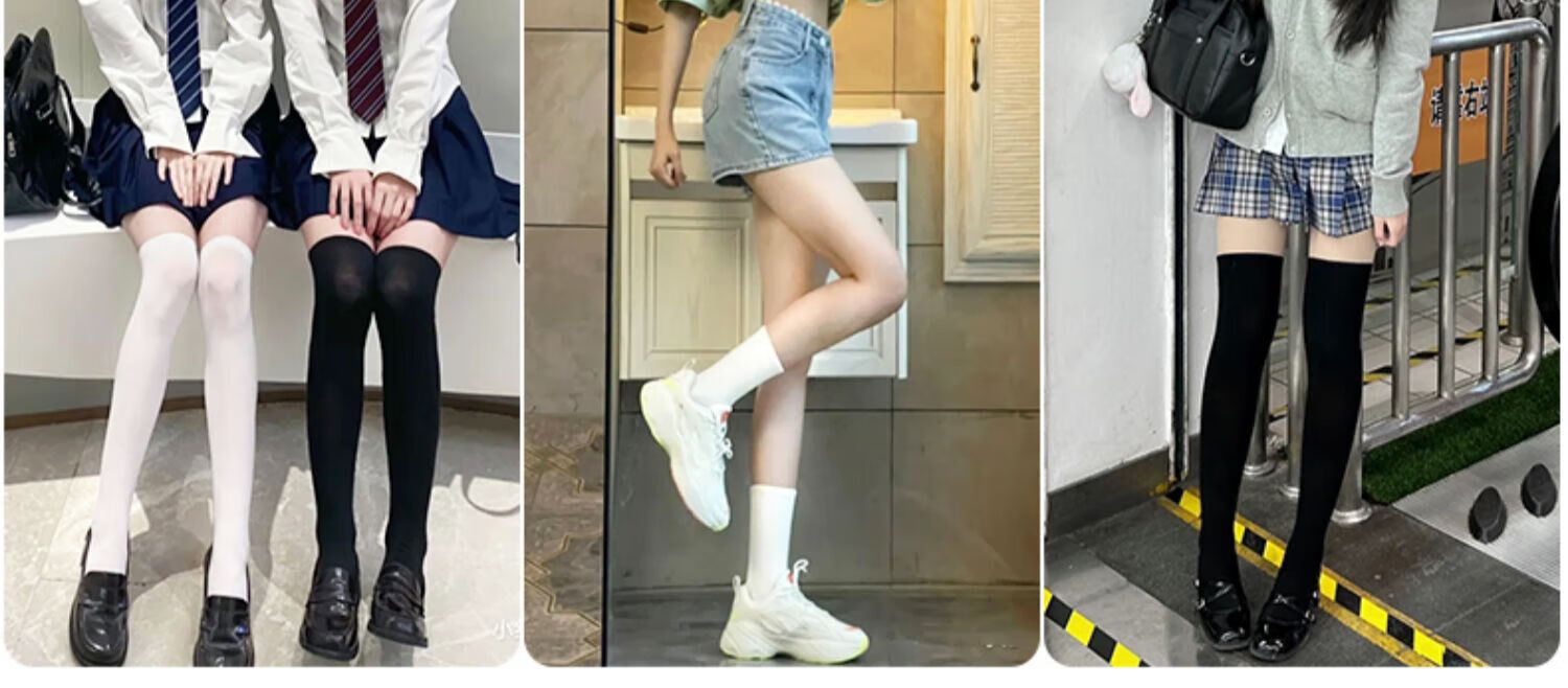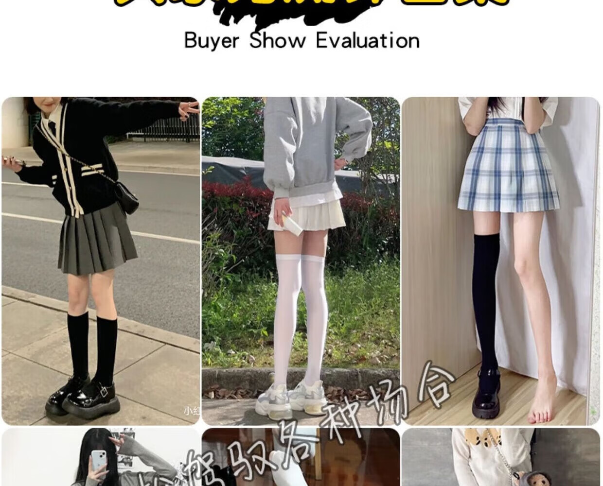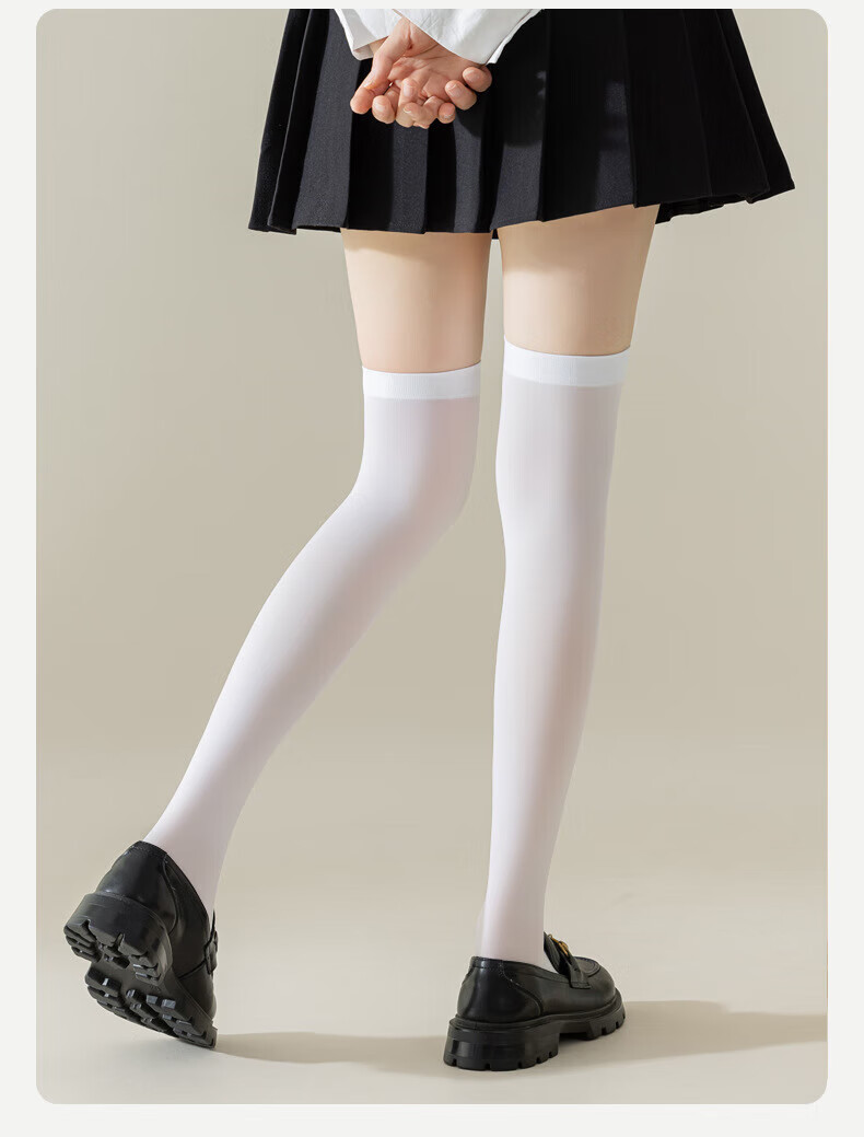 Lugeli stockings women's over-the-knee socks velvet white silk black stockings white spring and summer jk calf socks sexy long leg socks over-the-knee socks white + black 52cm 1 pair each