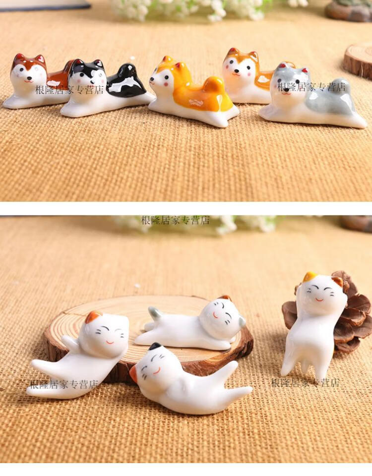Jin Geyu Japanese-style cat chopstick holder Japanese-style ceramic cat puppy Shiba Inu ornaments chopstick holder chopstick holder cartoon exquisite home small Shiba Inu dog complete set of 5