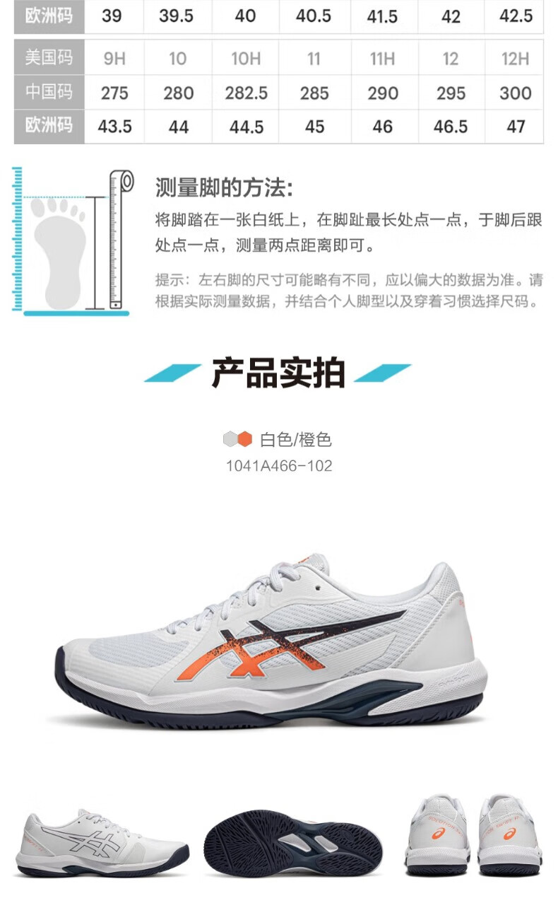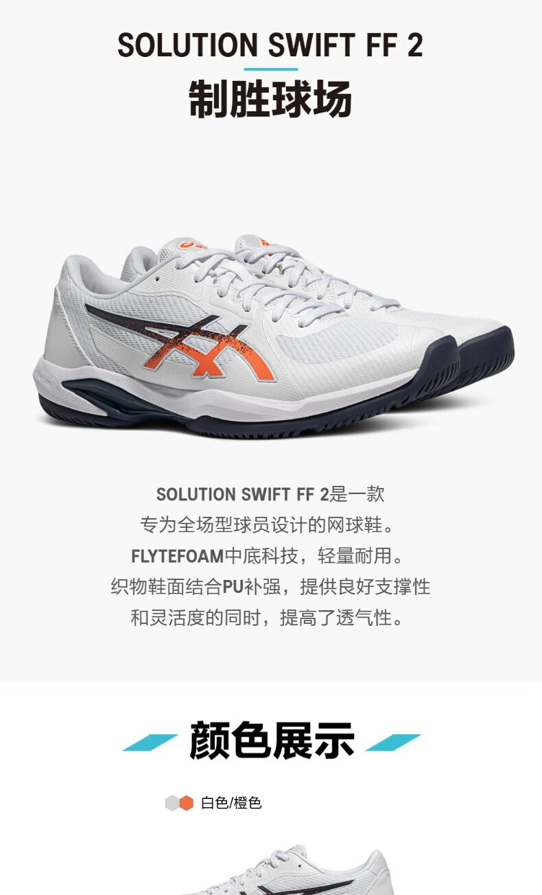 ASICS tennis shoes men's shoes new stable and comfortable sports shoes professional training shoes SOLUTION SWIFT FF 2 white/orange-102 44.5