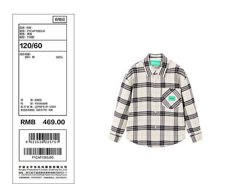 MiniPeace Children's Spring New Boys' Shirt F1CAF1263 Black 160