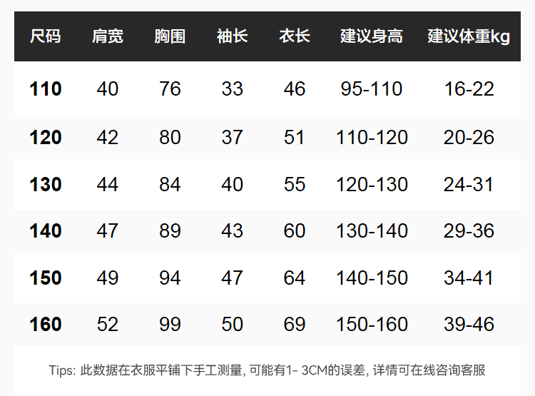 China (cm) 160-165/84-86 165-170 / 88-90 167-172 / 92-96 168-173 / 98-102 170-176 / 106-110