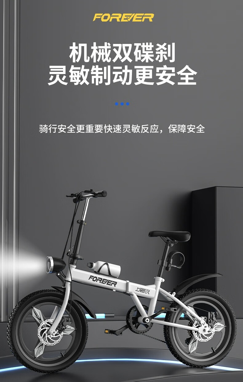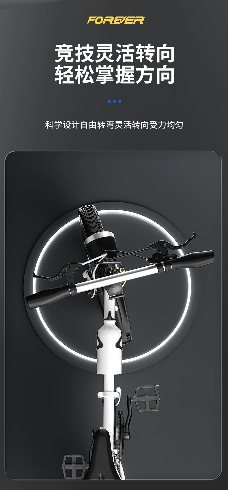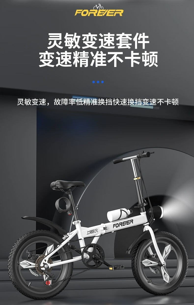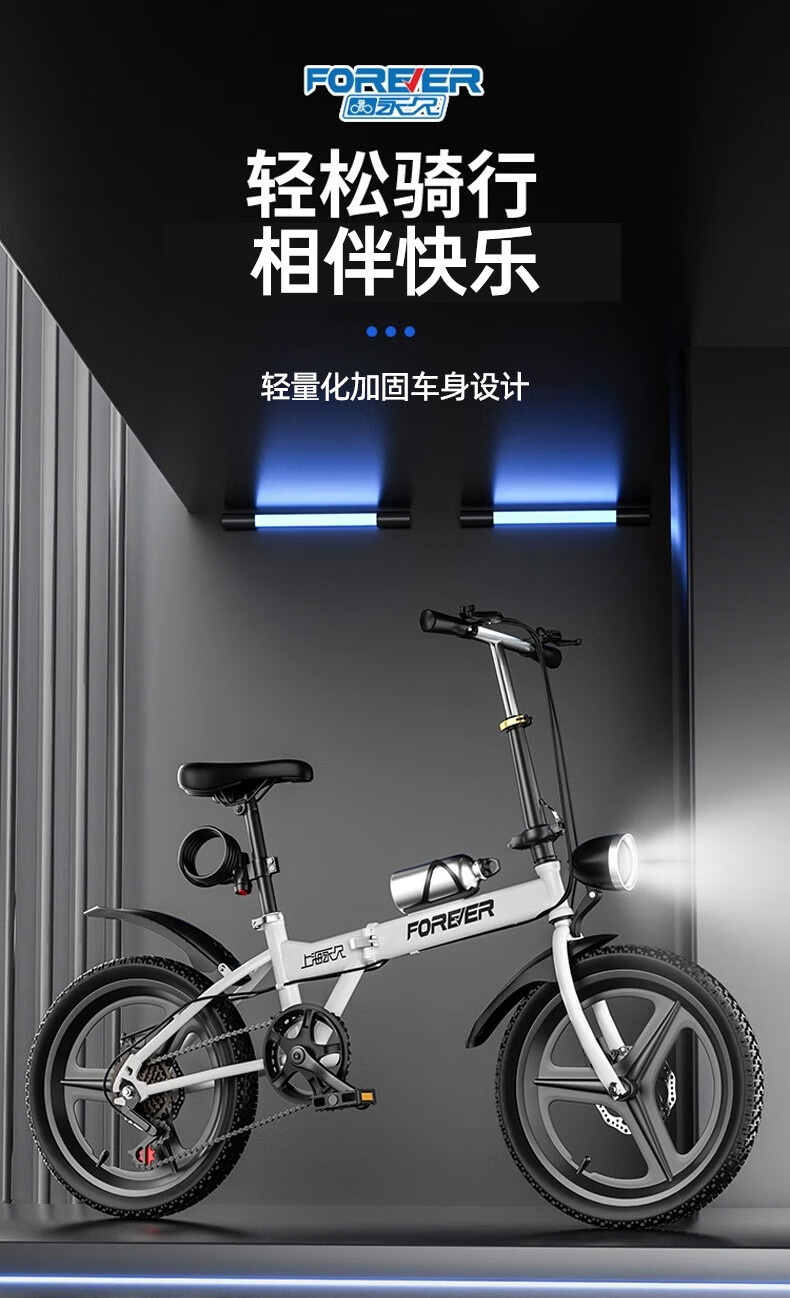 FOREVER folding bicycle for adults, men and women, portable light commuter bike, student bicycle to work, no installation, painted powder - integrated transmission - disc brake, 20 inches, suitable for height 140-165cm