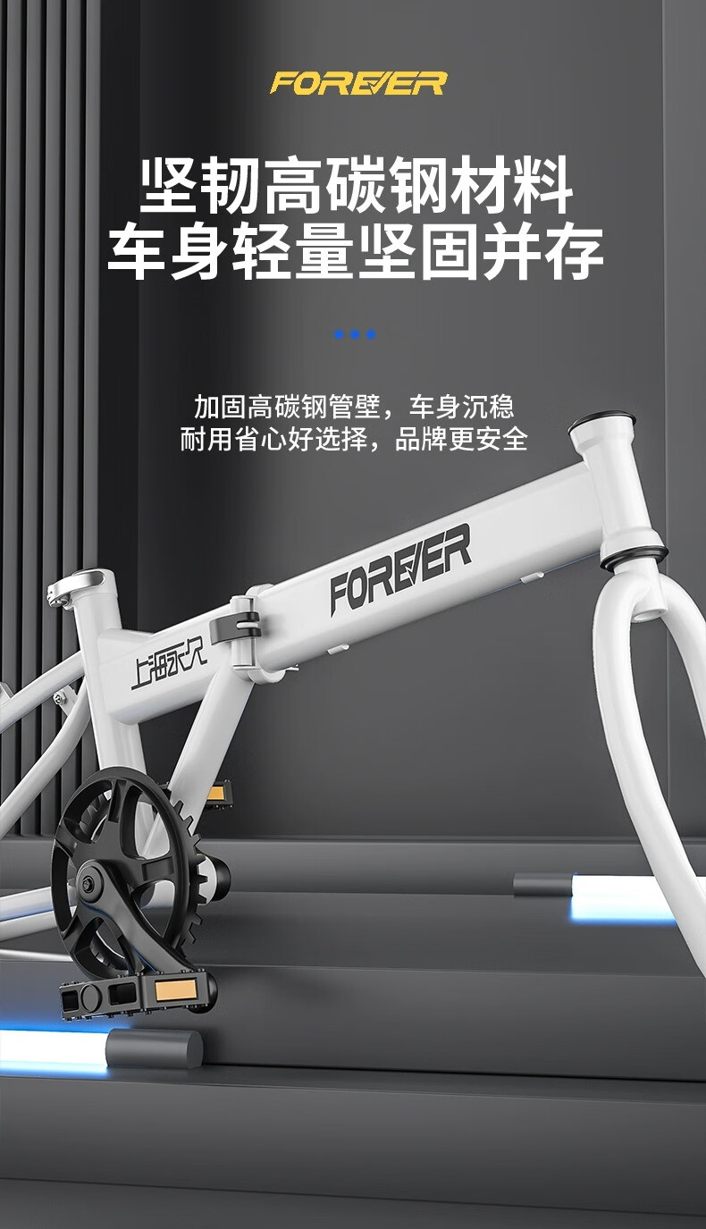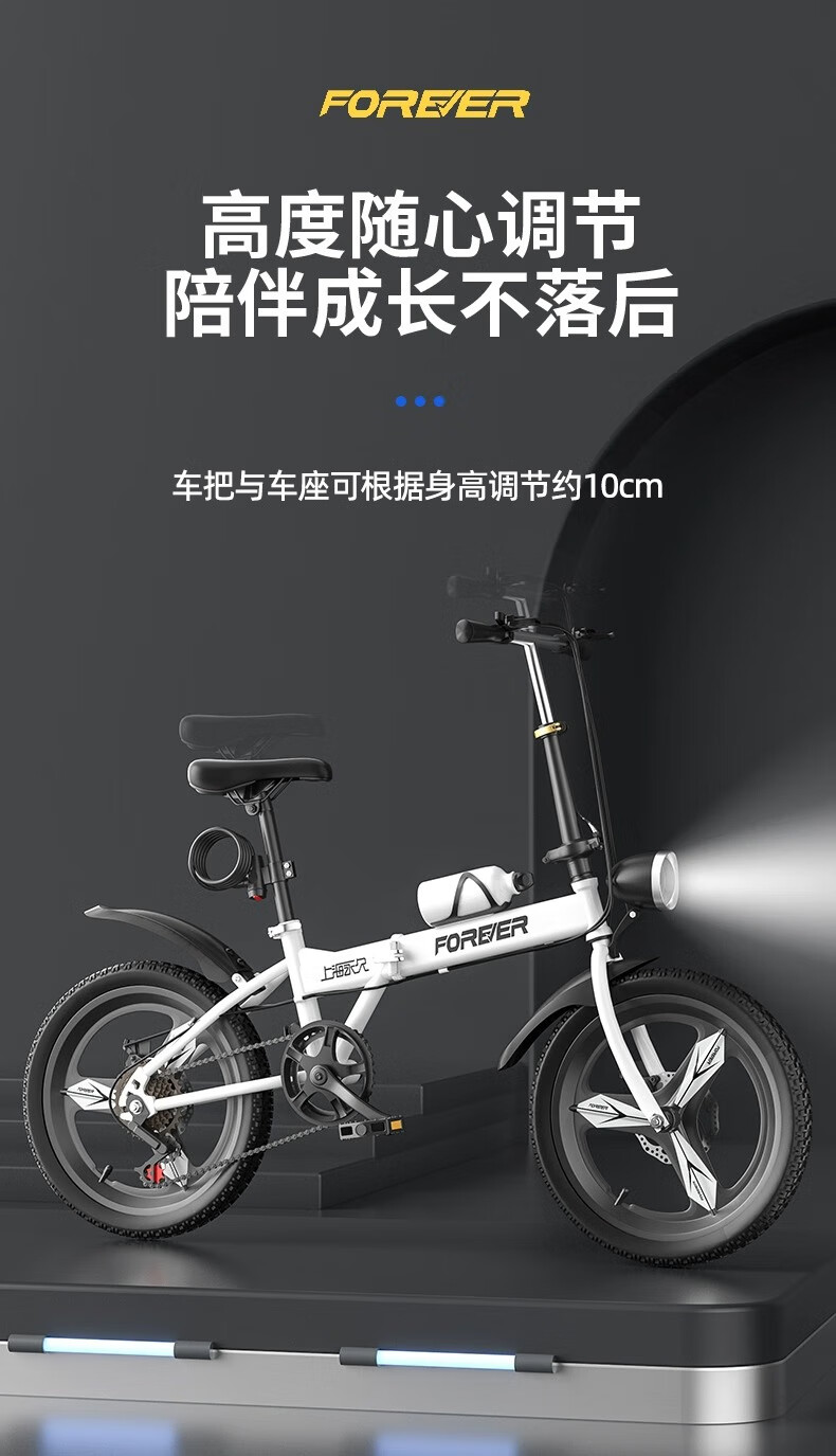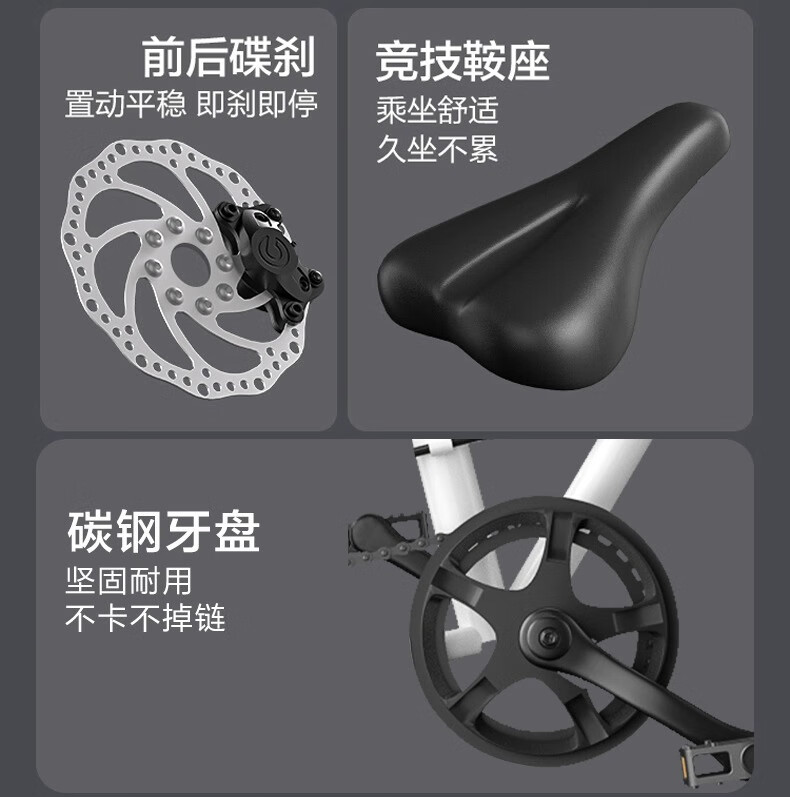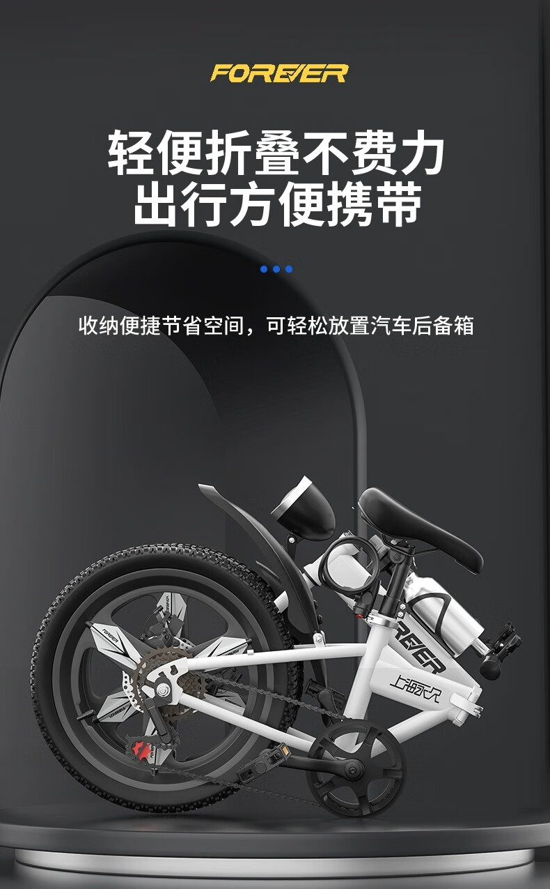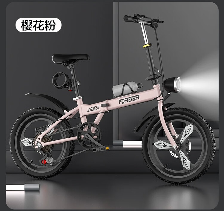 FOREVER folding bicycle for adults, men and women, portable light commuter bike, student bicycle to work, no installation, painted powder - integrated transmission - disc brake, 20 inches, suitable for height 140-165cm