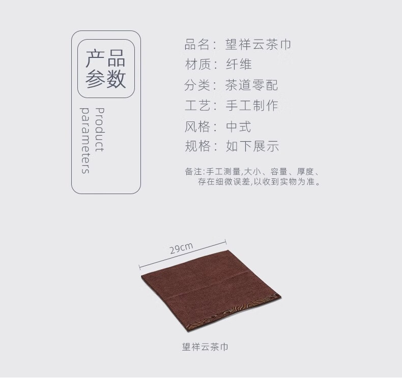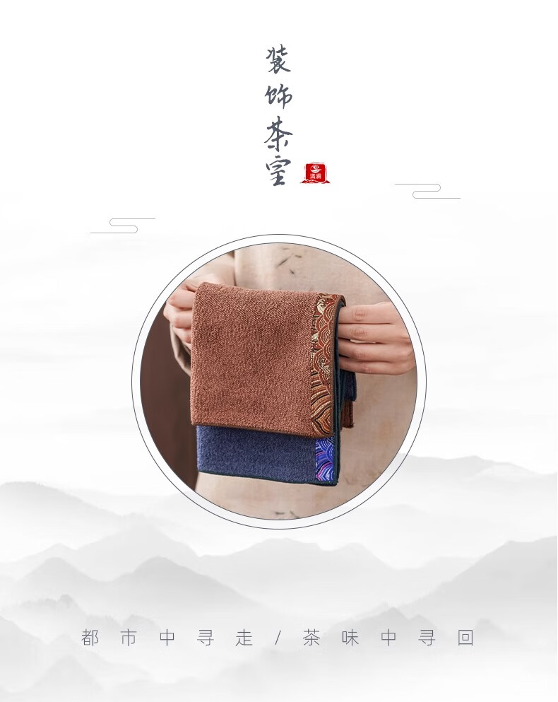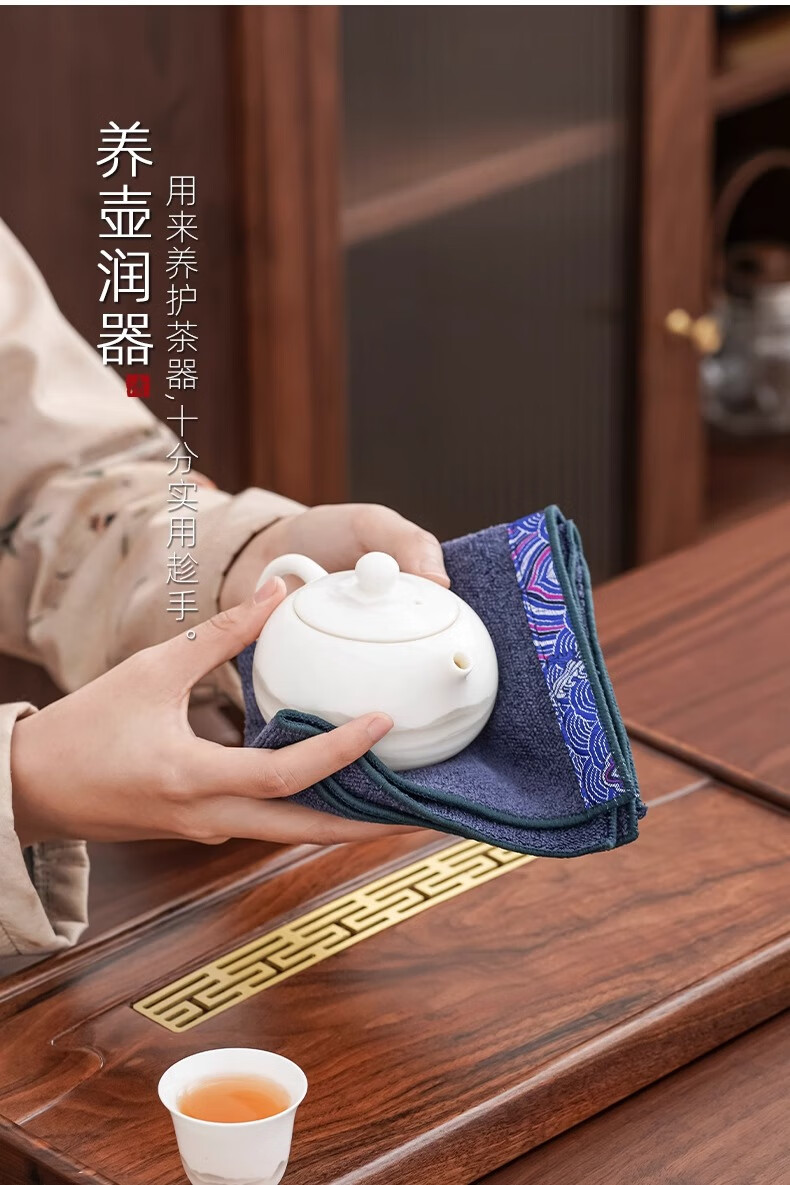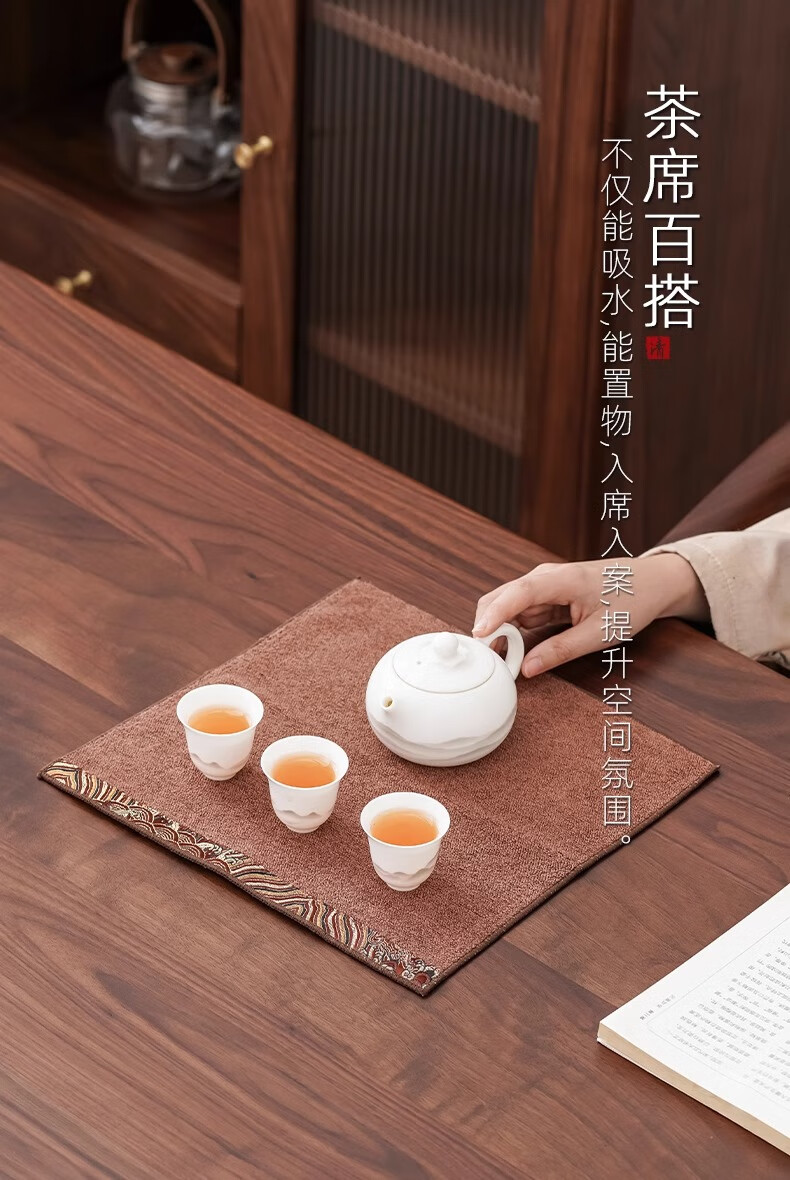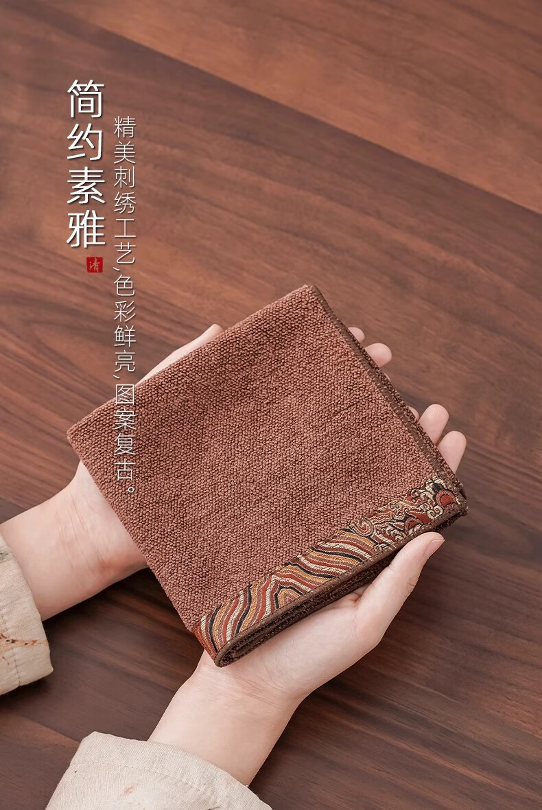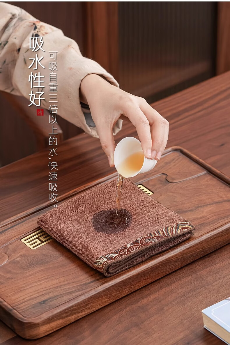 Yipin Workshop Chinese tea towel tablecloth absorbent high-end thickened tea table special towel for tea making Kungfu tea set accessories tea tray accessories Wangxiangyun (one side) dark brown