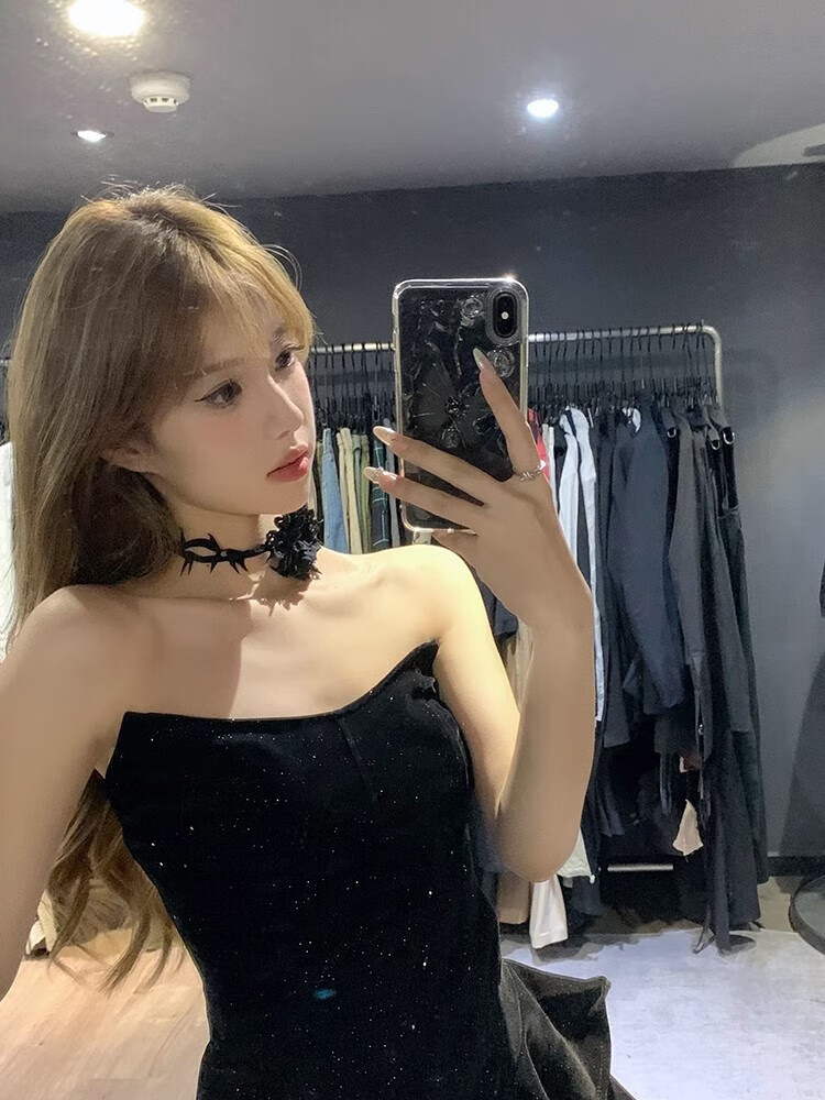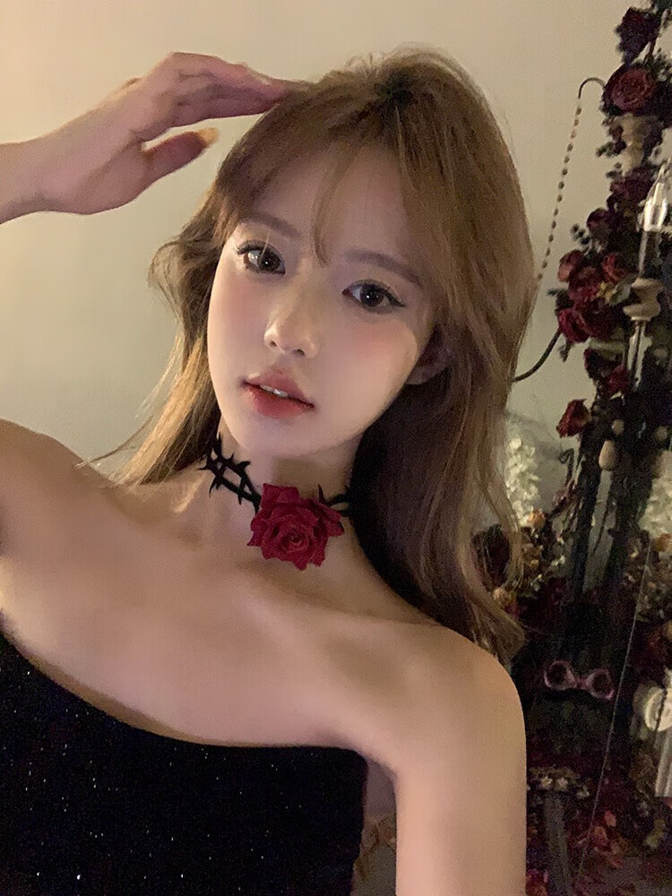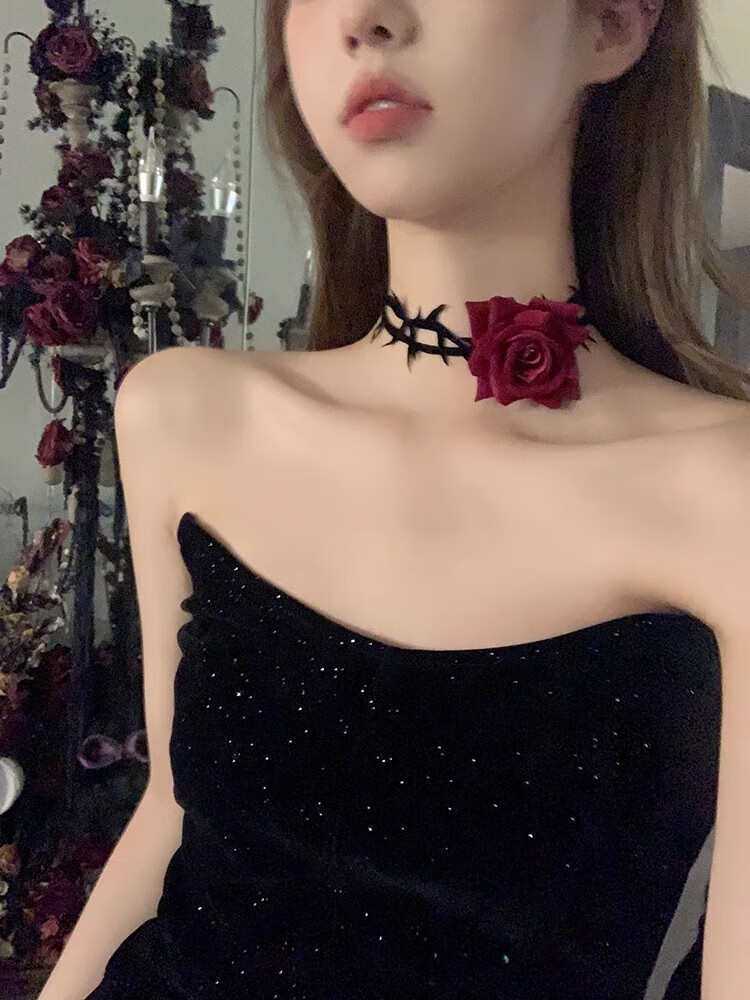 Oein thorn rose choker neck women's choker neck red flower chain clavicle chain flower necklace women's dress accessories red choker