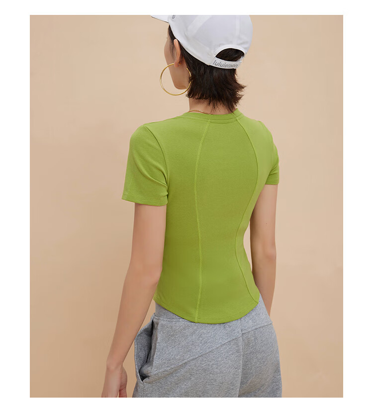 ANNERUN summer sports short-sleeved T-shirt yoga wear for women 2025 new high-end training wear Pilates top training wear avocado green S