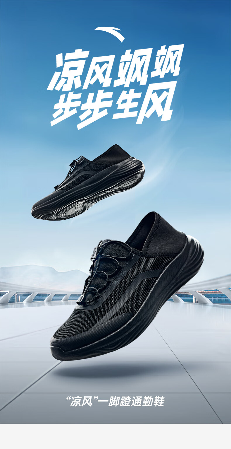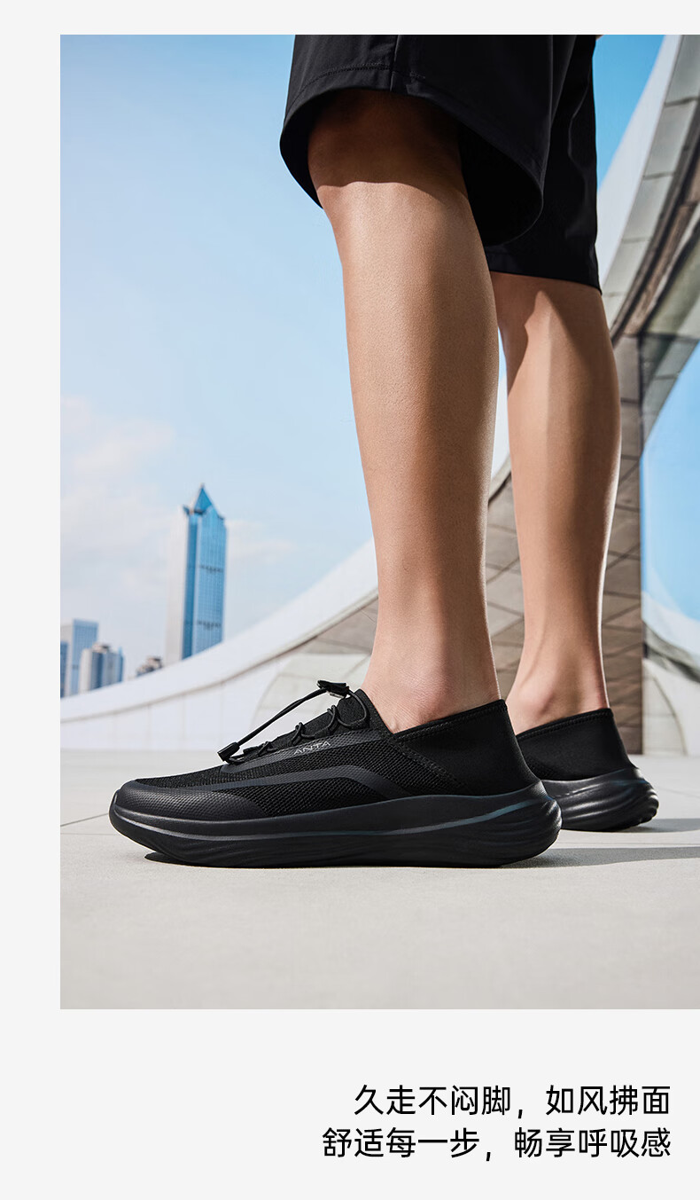 ANTA Cool Breeze Slip-On Lightweight Cushioning Sports Shoes for Men 2026 Spring New Casual and Comfortable Walking Training Shoes Basic Black-1 40.5