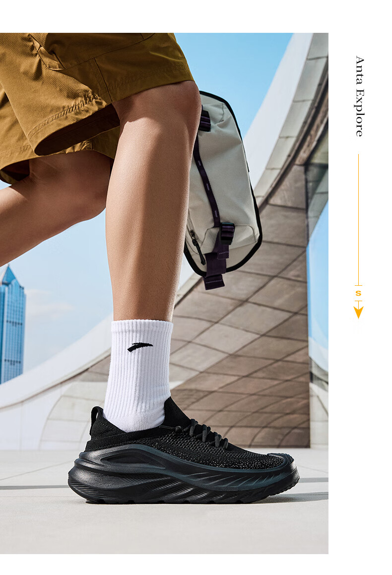 ANTA Explore the World | Breathable and Comfortable Sports Shoes for Men 2025 Autumn New Outdoor Shock-absorbing Lightweight and Versatile Training Shoes Black/Volcanic Ash-3 40