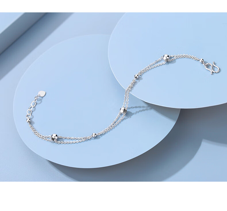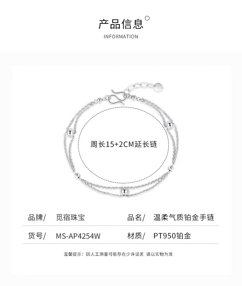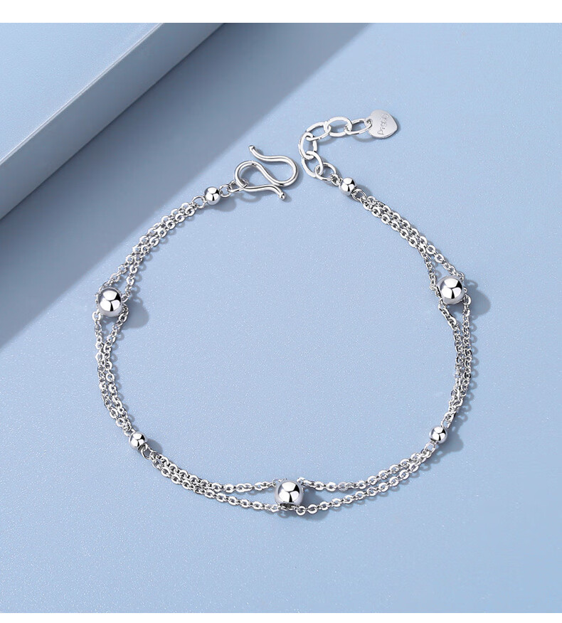 Misu genuine platinum bracelet for women pt950 round beads double-layered platinum bracelet simple versatile fine chain birthday gift 3.2-3.4g length 16+2cm
