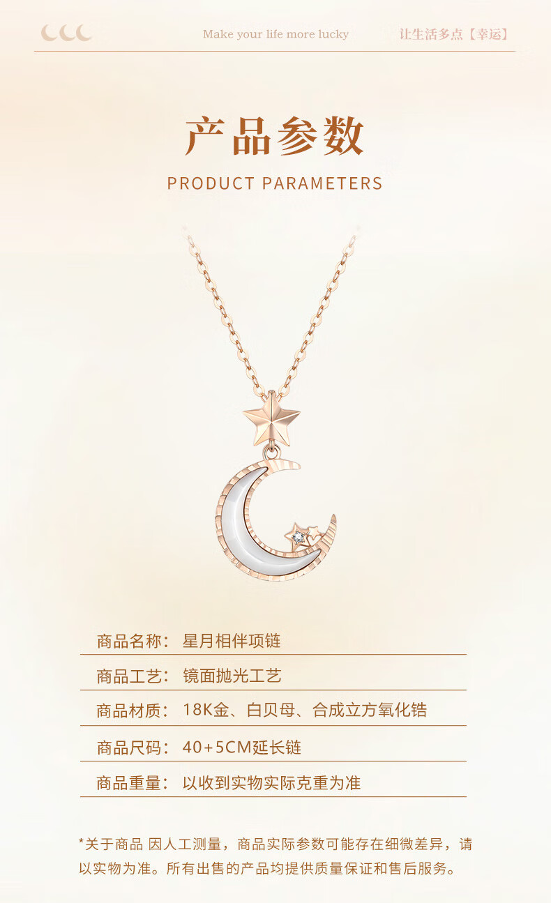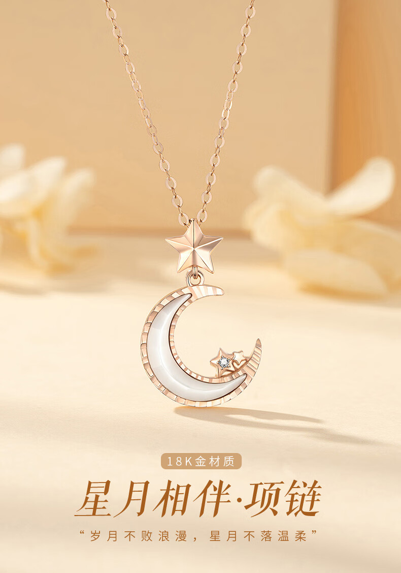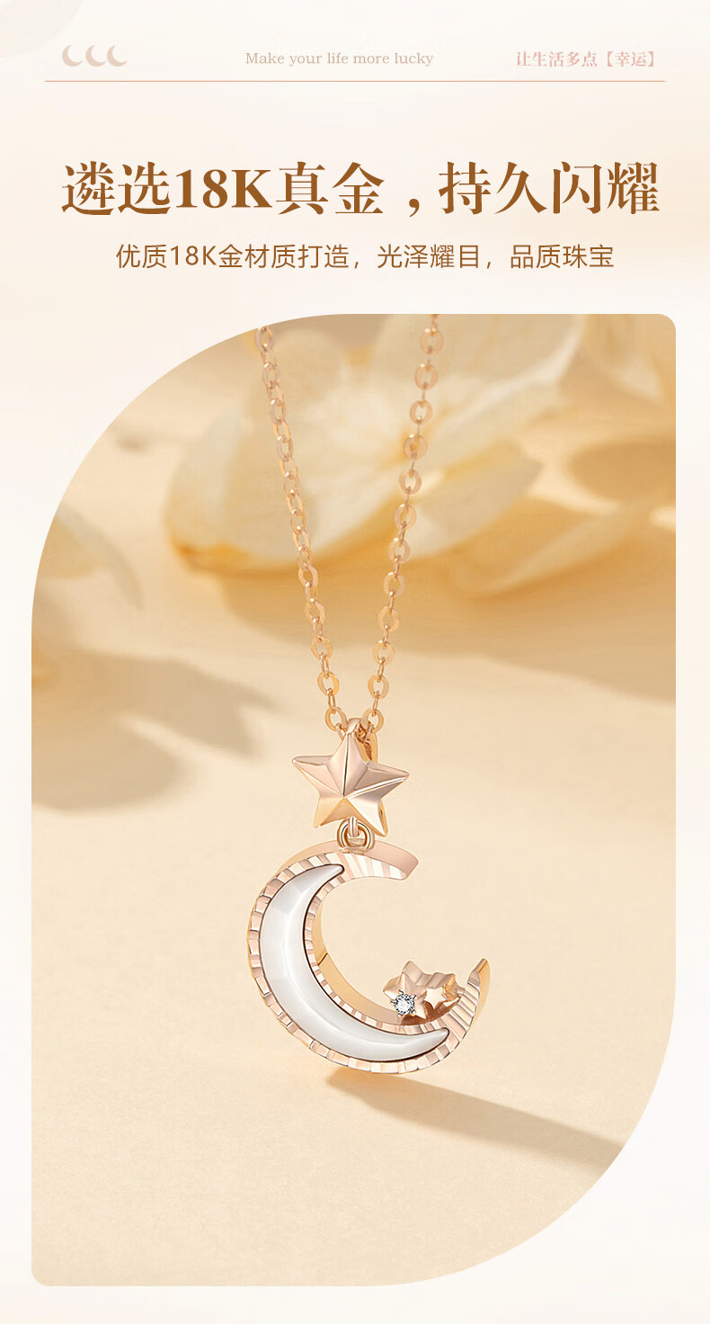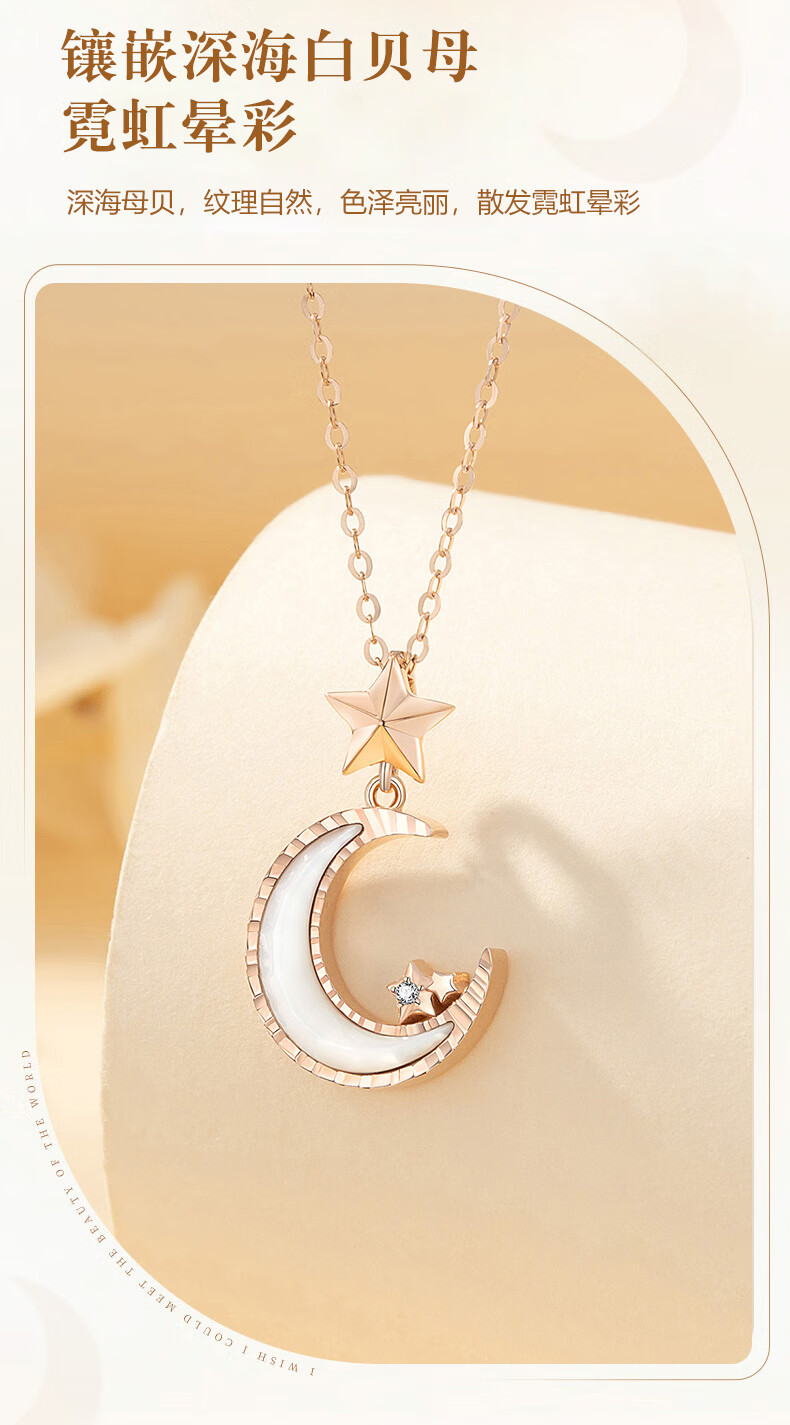 Grace Girl 18k gold star and moon necklace female white shell rose gold clavicle chain light luxury personality niche gift for girlfriend 18k star and moon accompanying necklace + light luxury gift box