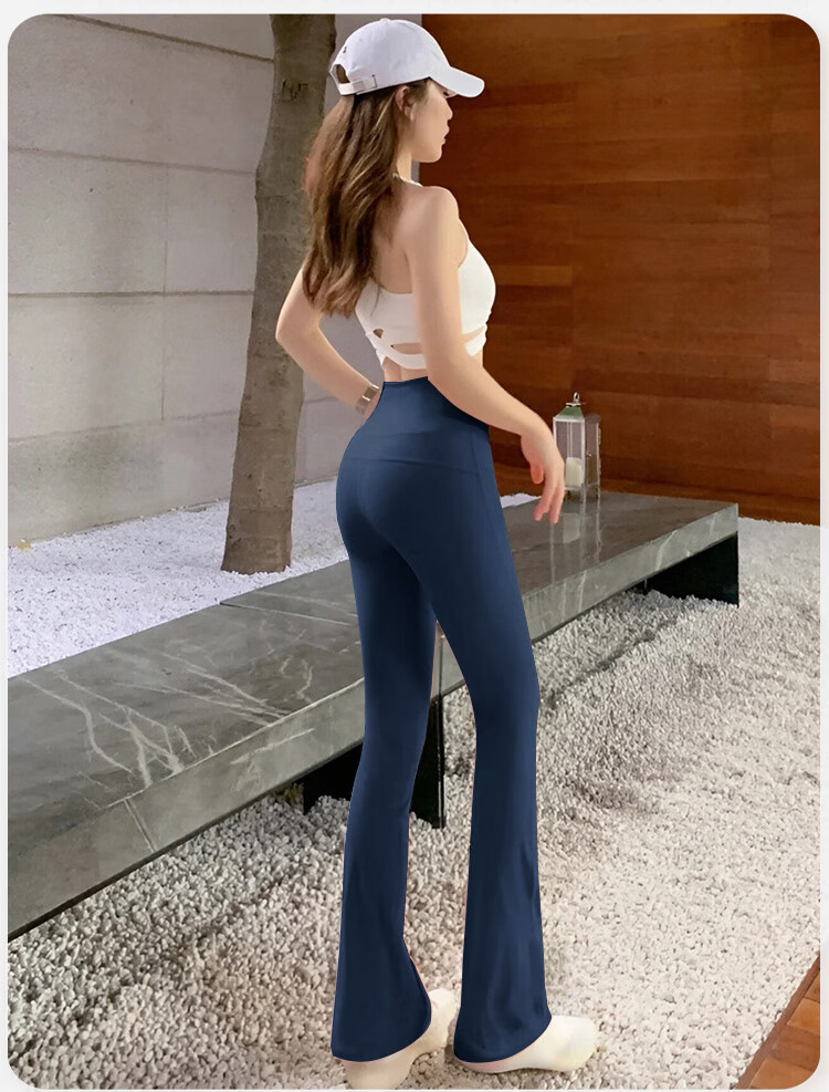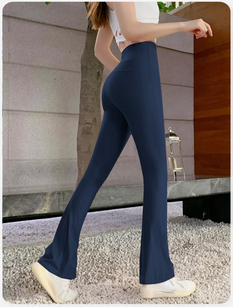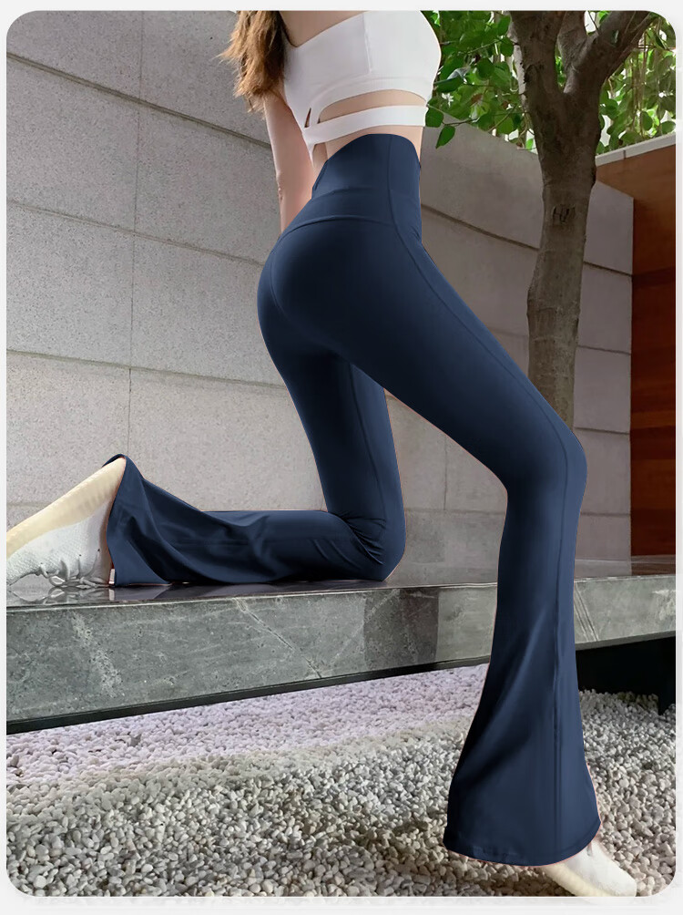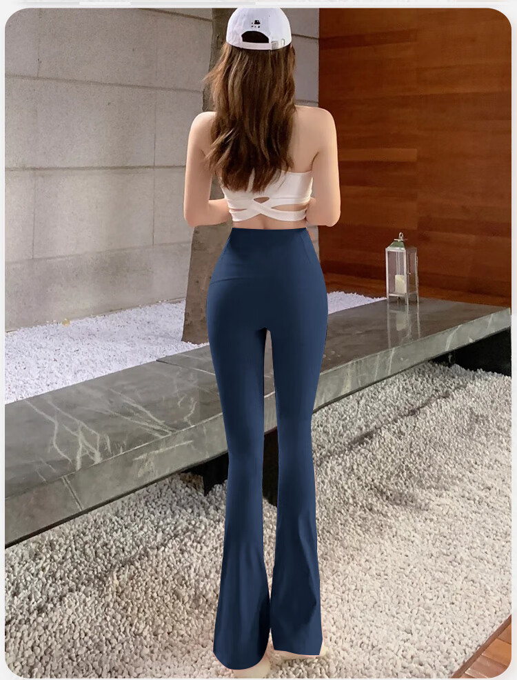 Double show micro-flare yoga pants for outer wear, beautiful high waist and hip lifting 2025 new style, beautiful Pilates Internet celebrity peach butt fitness pants Danube blue hot selling color-small buttocks M (100-115)