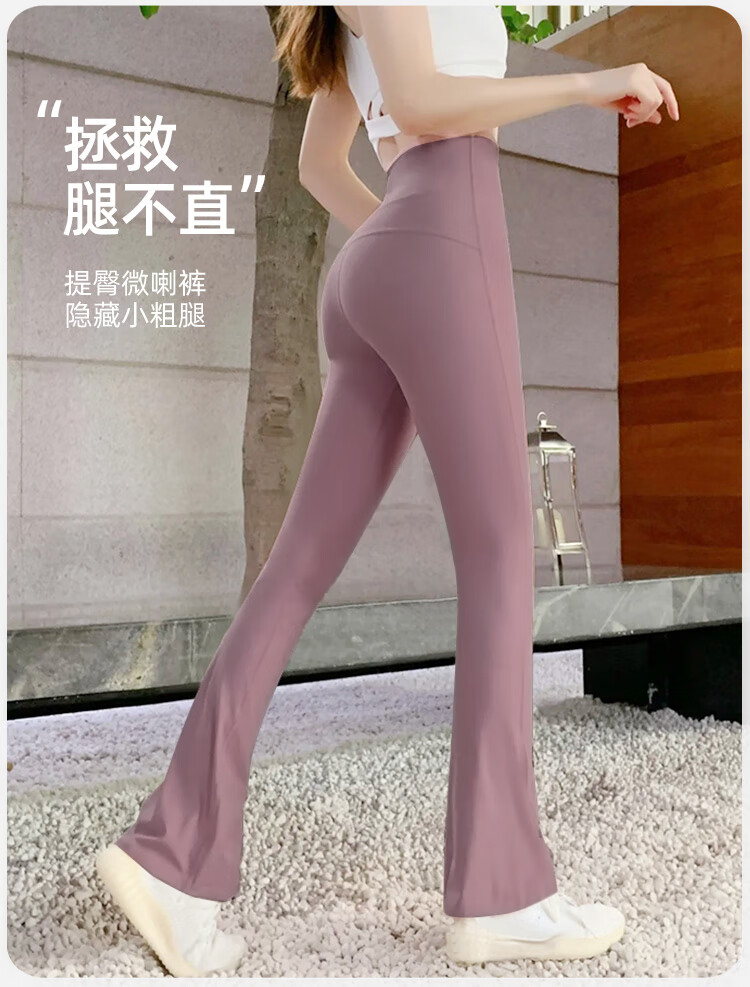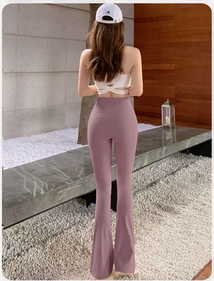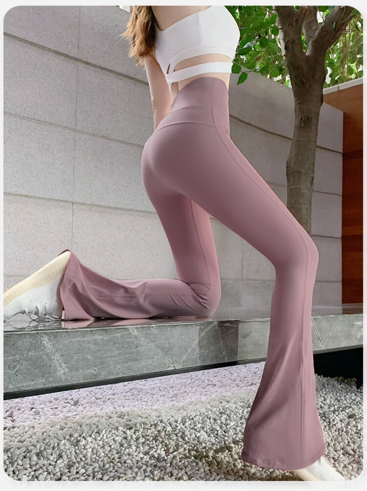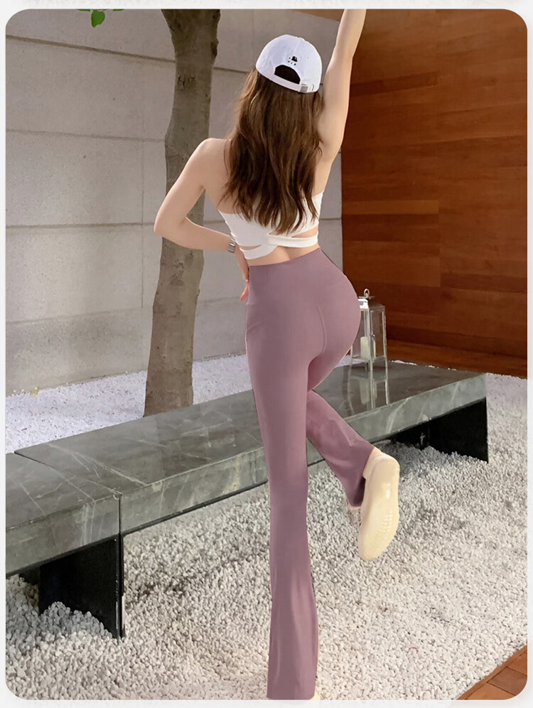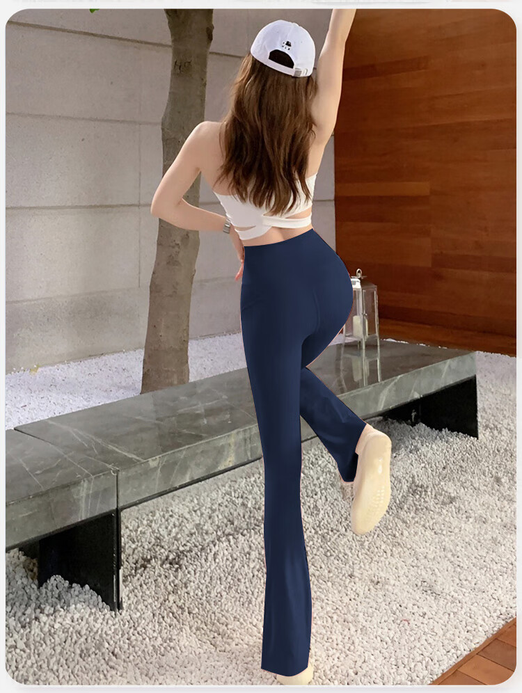 Double show micro-flare yoga pants for outer wear, beautiful high waist and hip lifting 2025 new style, beautiful Pilates Internet celebrity peach butt fitness pants Danube blue hot selling color-small buttocks M (100-115)
