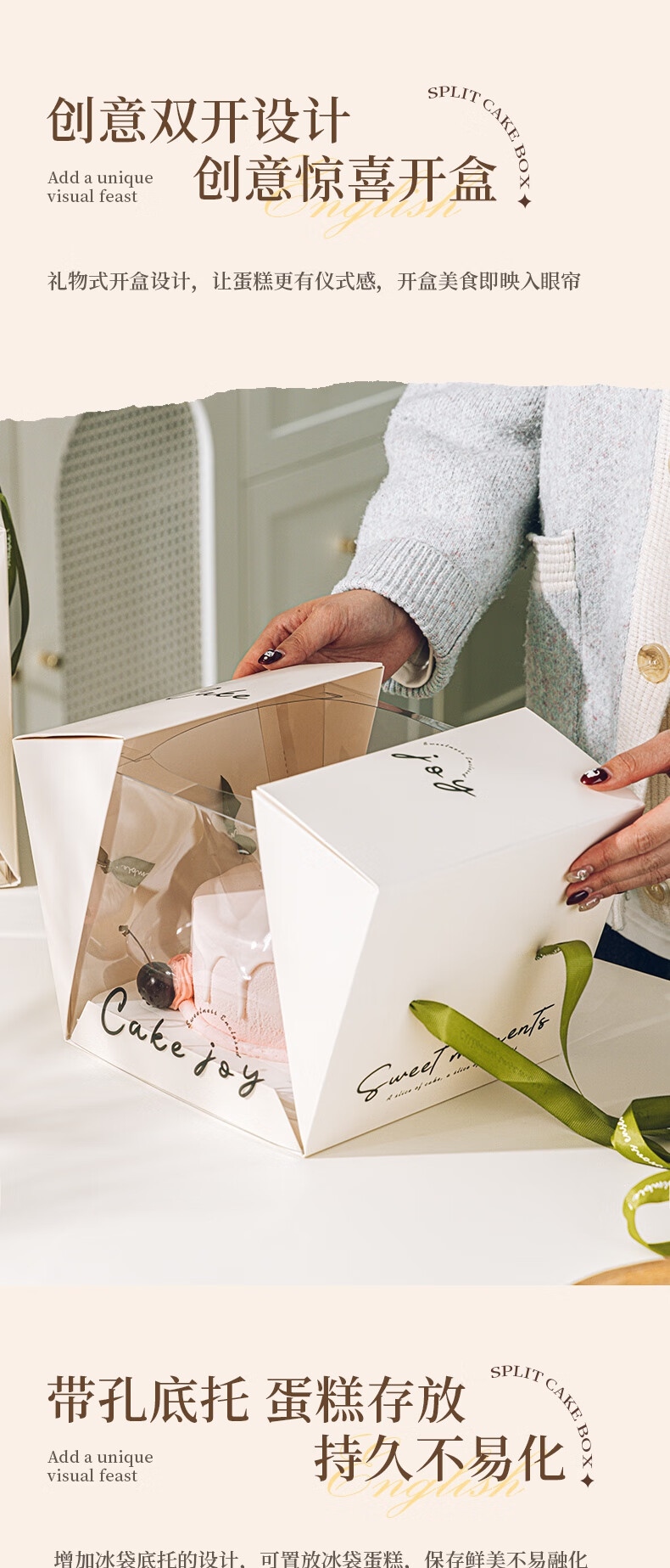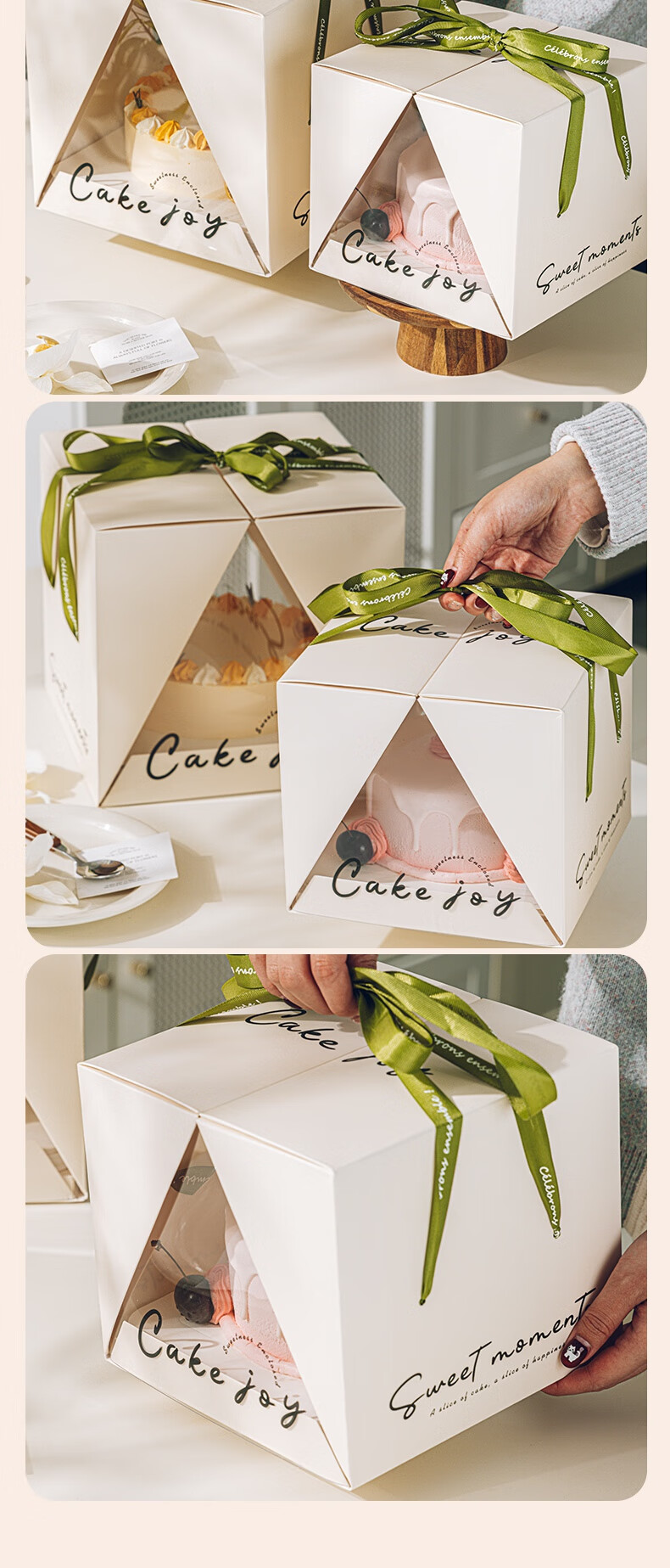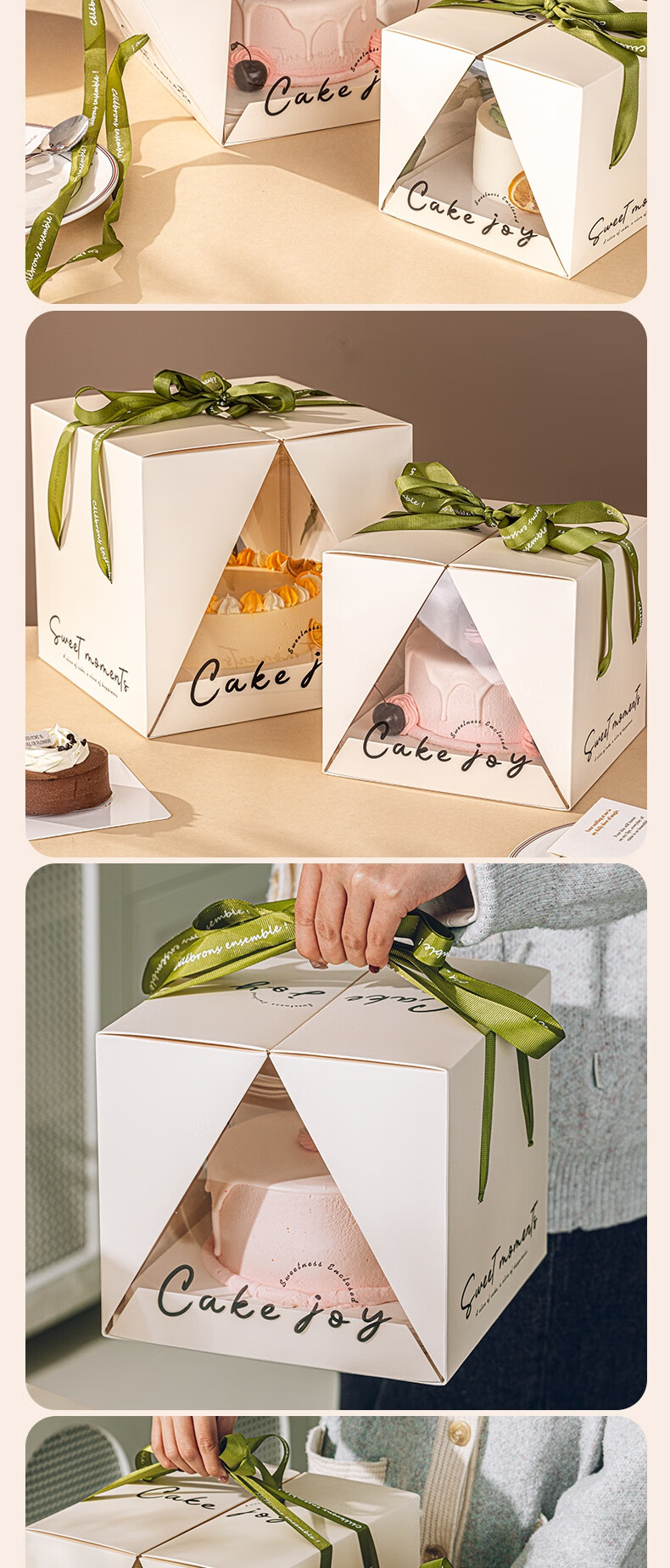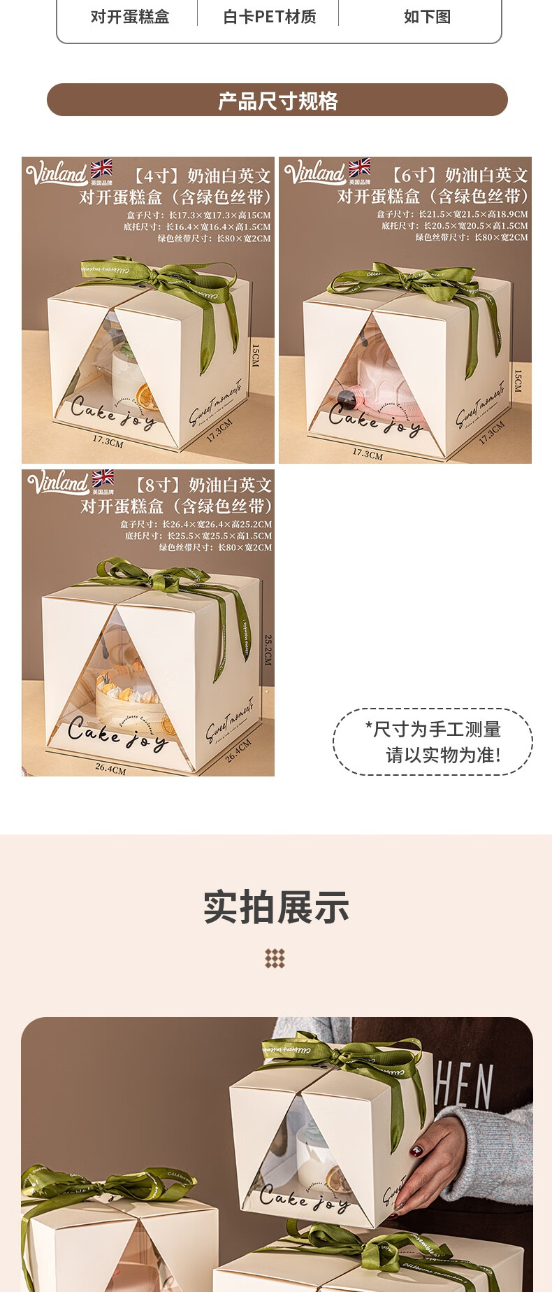 Vinland cake packaging box 6 inches 8 birthday premium box high-end portable folio transparent mousse packaging 4 inches six high-end super thick 400g 6 inches off-white English folio box 1