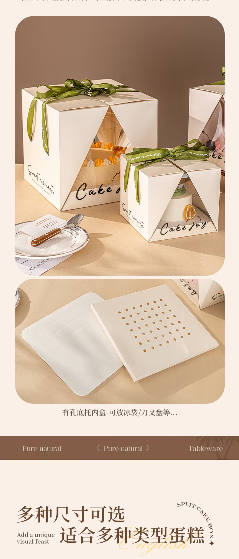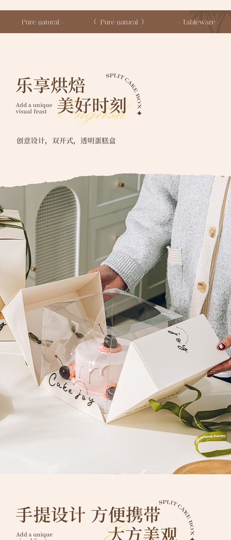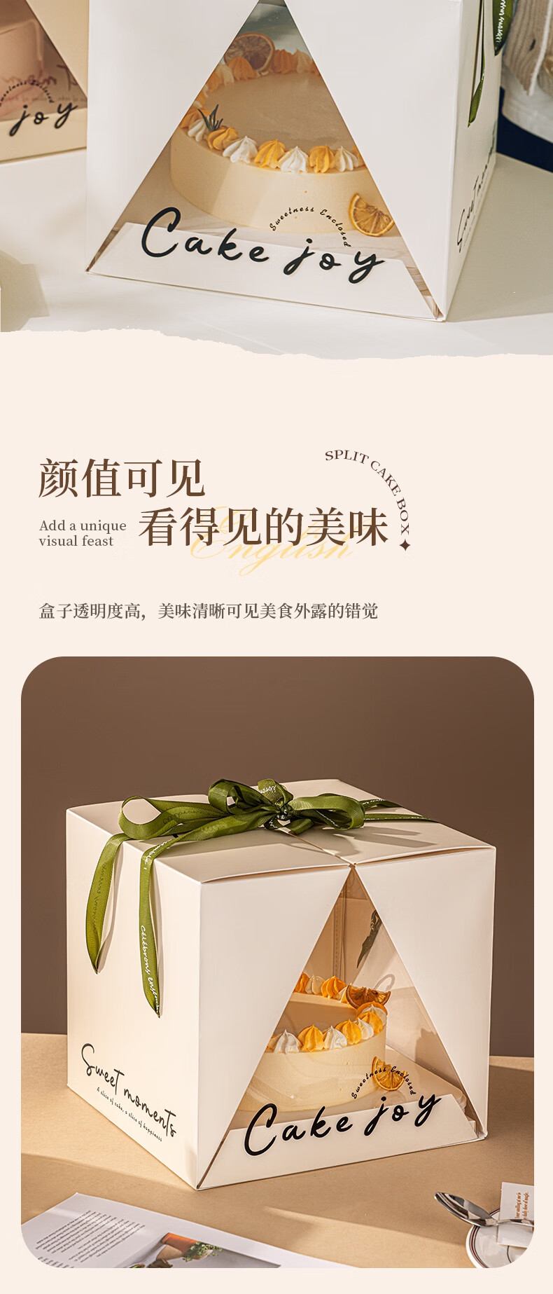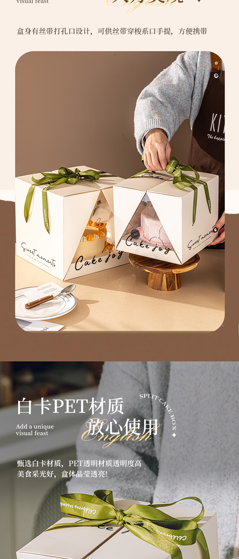 Vinland cake packaging box 6 inches 8 birthday premium box high-end portable folio transparent mousse packaging 4 inches six high-end super thick 400g 6 inches off-white English folio box 1