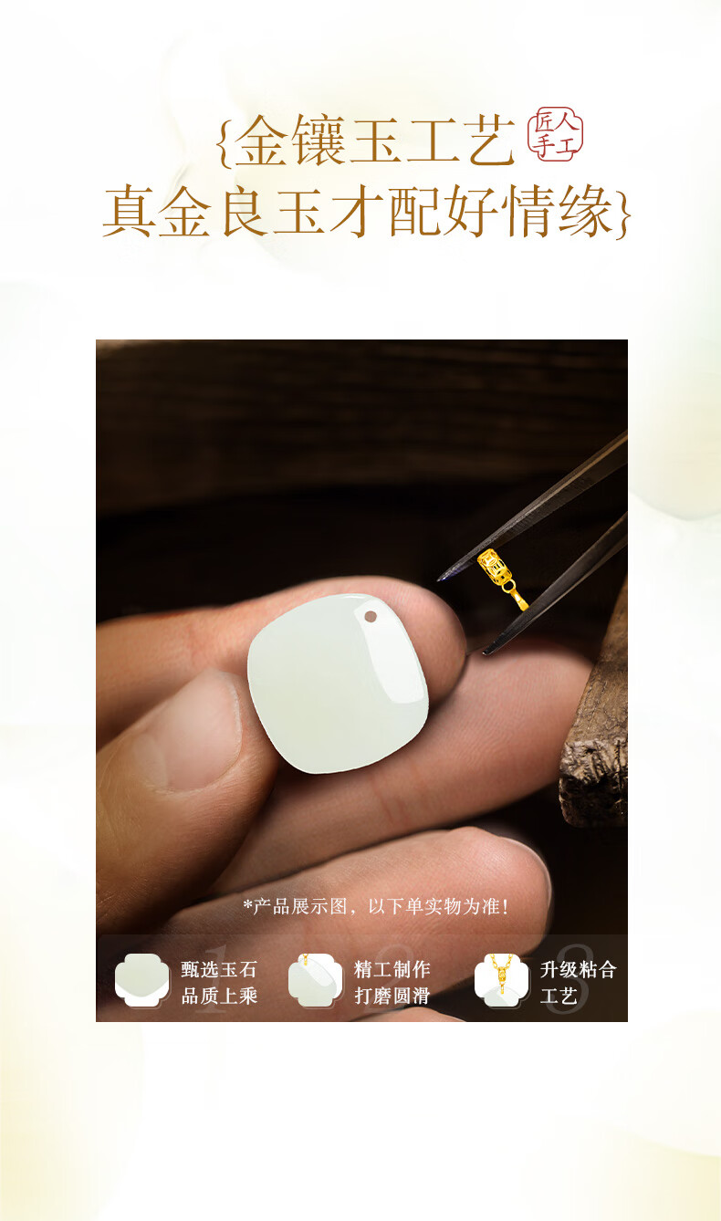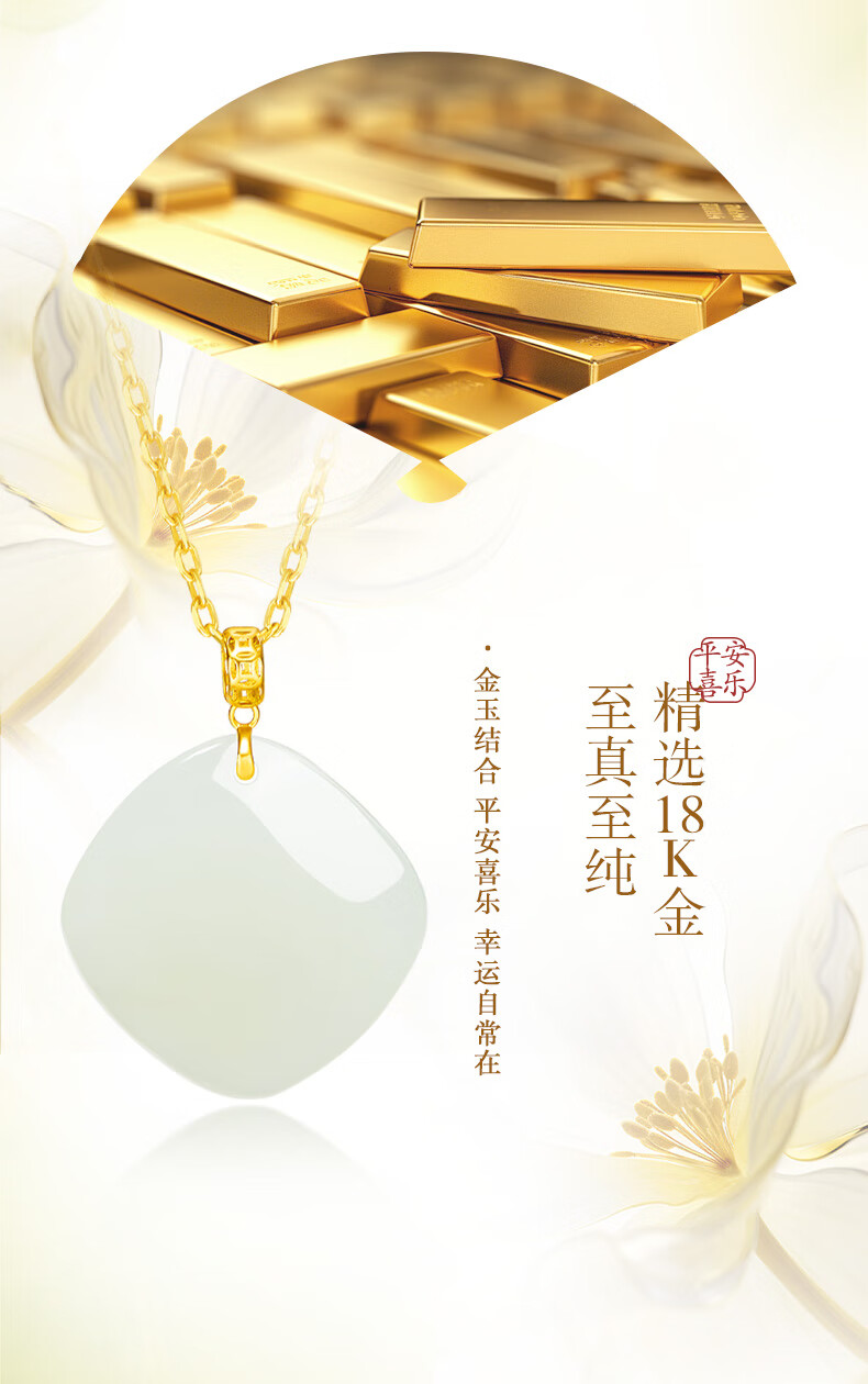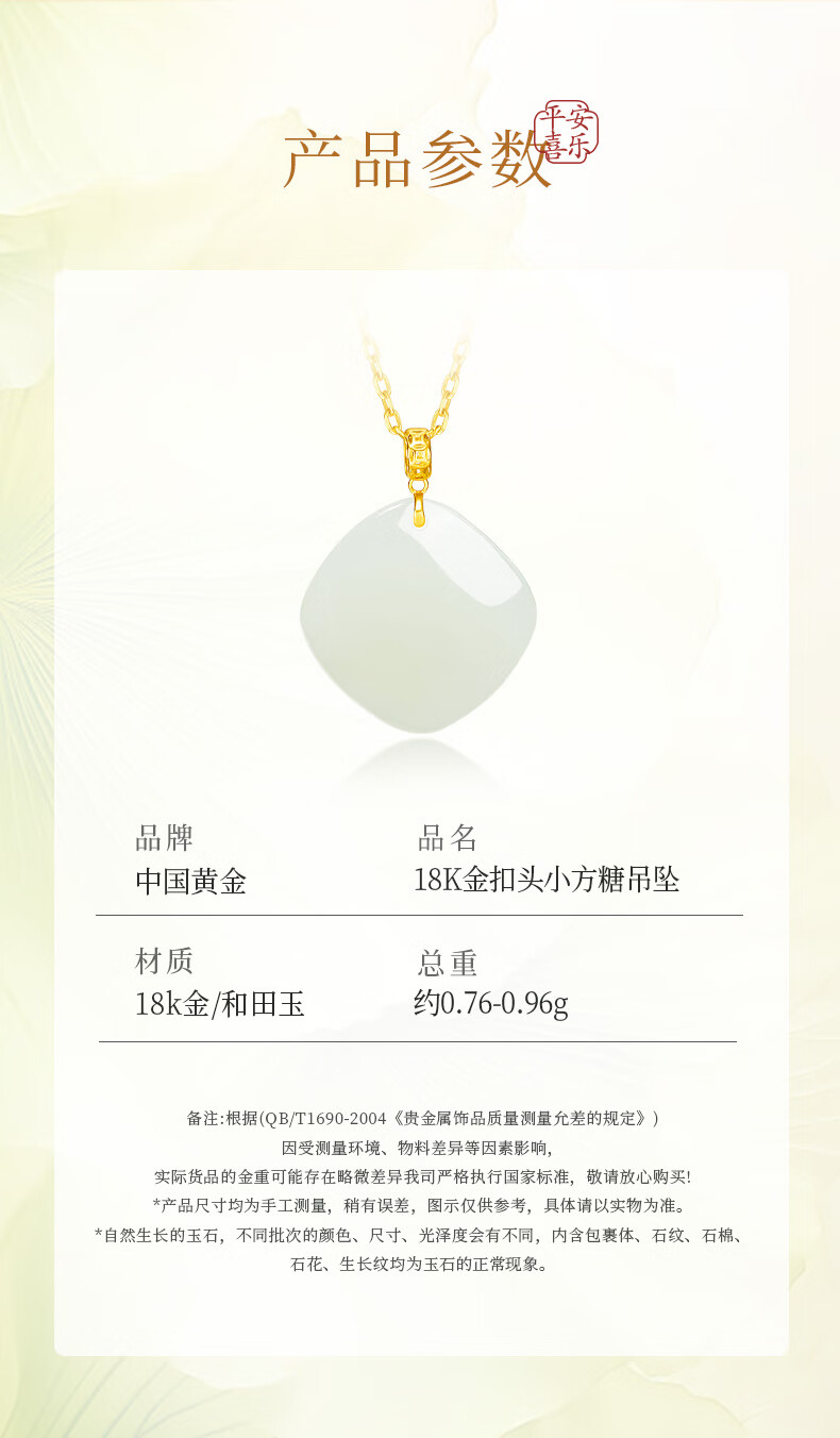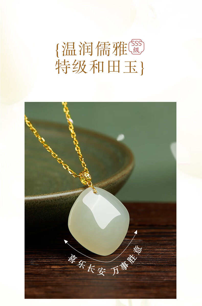 CHINA GOLD 18K gold sugar cube necklace for women gold inlaid Hetian jade Wushi brand pendant birthday gift for girlfriend 18K gold sugar cube set chain souvenir