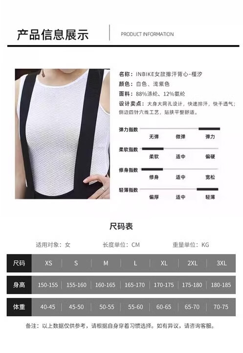 INBIKE cycling sweatshirt women's quick-drying vest short-sleeved top sweat-absorbent breathable road cycling bottoming shirt white vest S