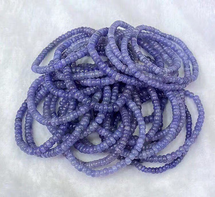 Shiyi Natural Tanzanite Plate Bead Bracelet Women's Single Circle Small Fresh Simple Crystal Flat Bead Bracelet Fashion Accessories Versatile 2*4mm/Plate Beads/Single Circle