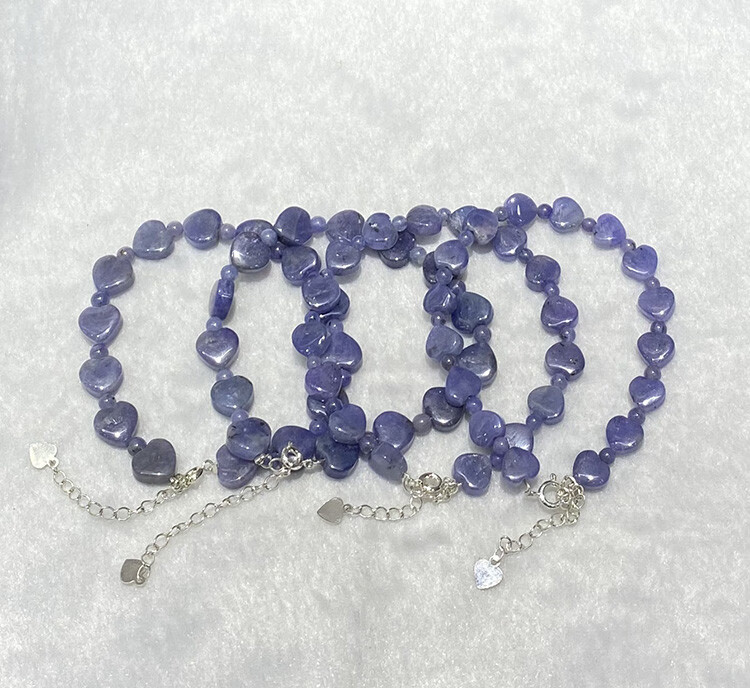 Shiyi natural tanzanite love bracelet for women, single circle, fashionable, fresh and simple, crystal heart-shaped bracelet jewelry, versatile 1#/7*8MM/love/single circle
