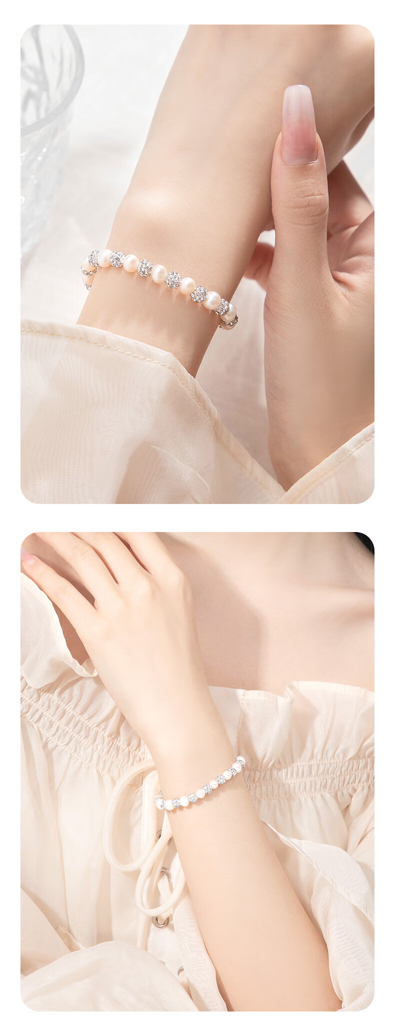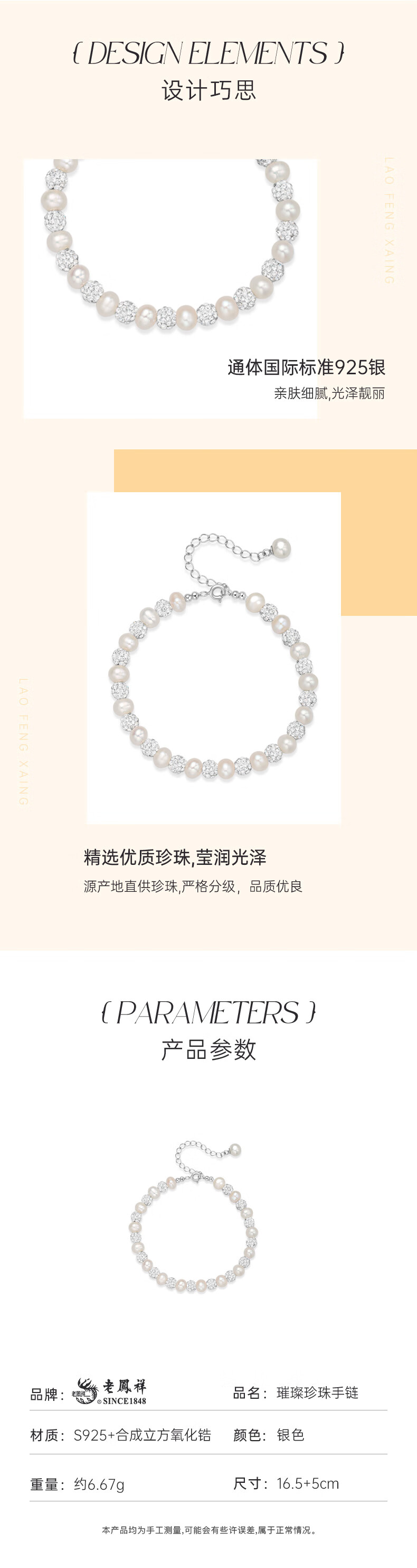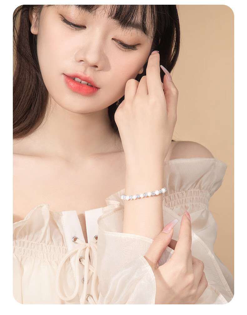 Lao Fengxiang Freshwater Pearl Silver Bracelet for Women, Light Luxury Bracelet, Wedding Anniversary, Birthday Gift for Girlfriend and Wife, Elegant and Versatile *Freshwater Pearl Bracelet*Beijing Warehouse Shipping/Available for Next Day Delivery