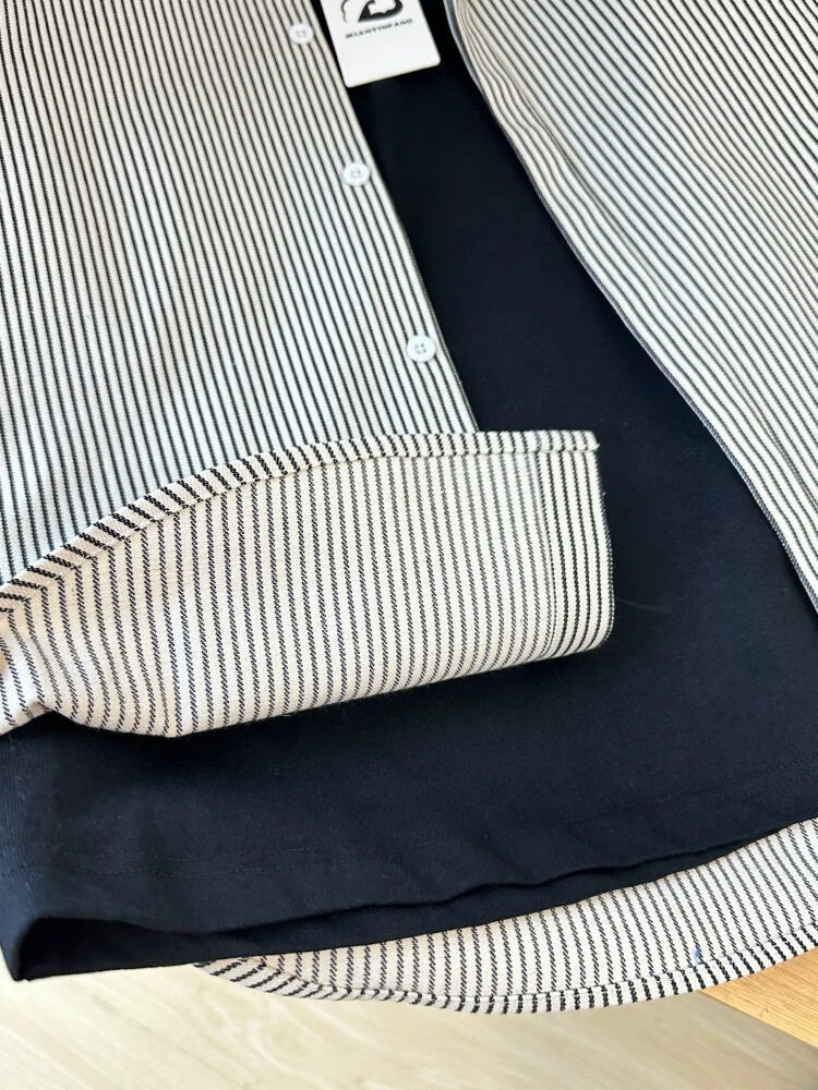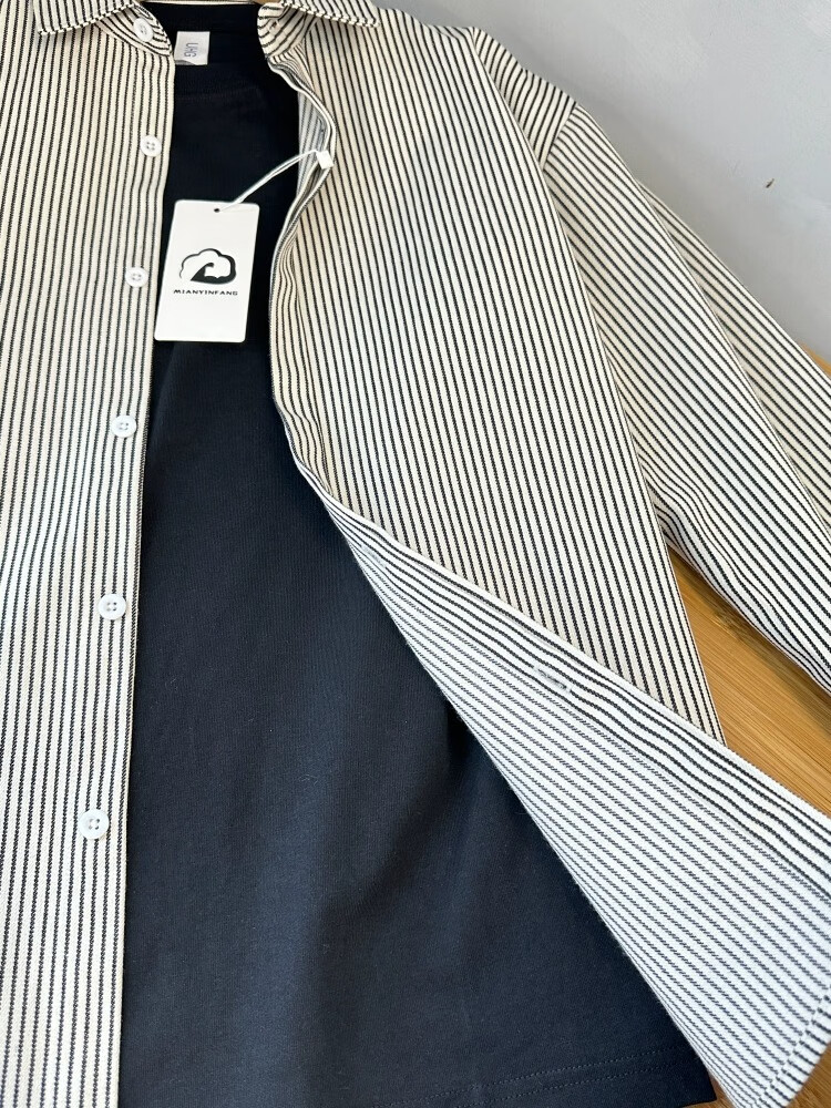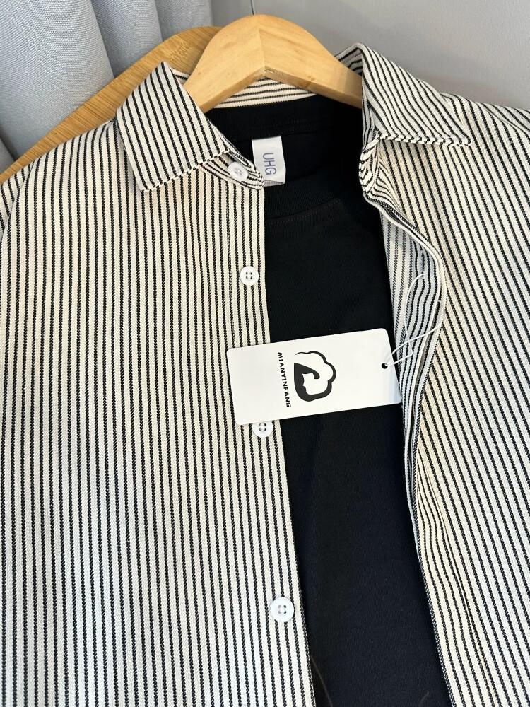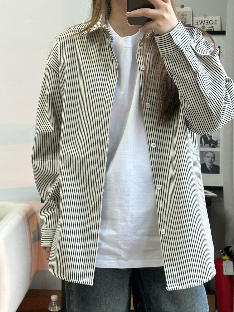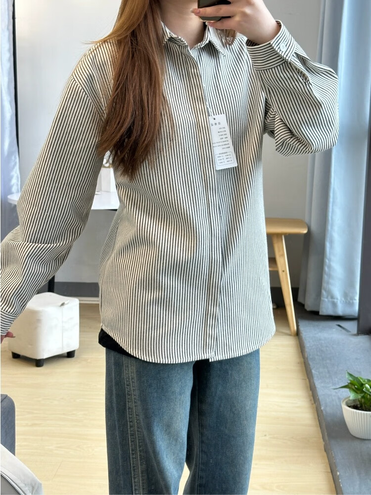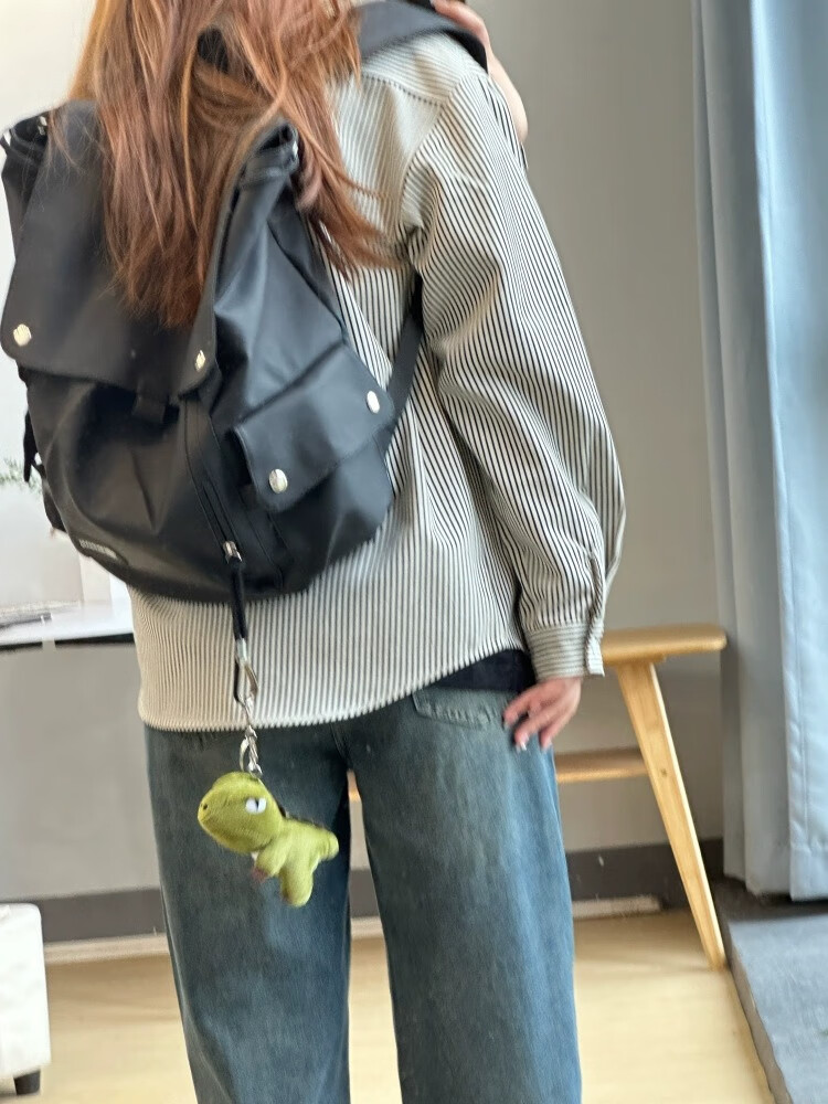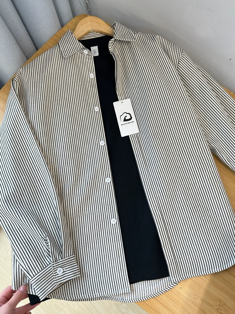 迪伽达复古条纹长袖衬衣男士春秋冬季新款衬衫男女同款休闲宽松开衫外套 ZSFS-C51黑色 XL