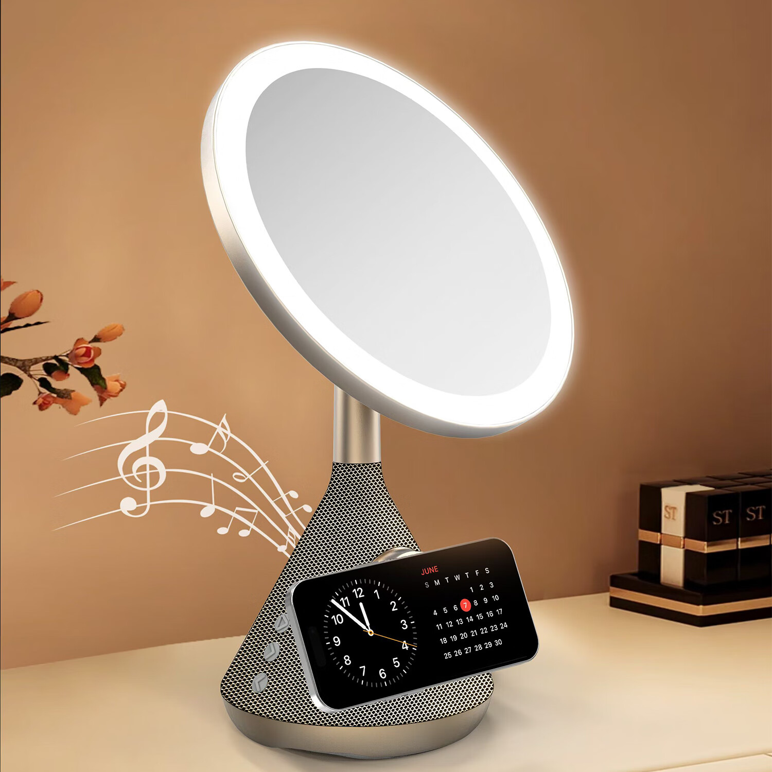 POINTUCH Makeup Mirror Magnetic Wireless Charging Bluetooth Speaker LED Smart Fill-in Light Makeup Mirror Multifunctional Desktop Makeup Mirror Internet Celebrity Creative Gift Silver