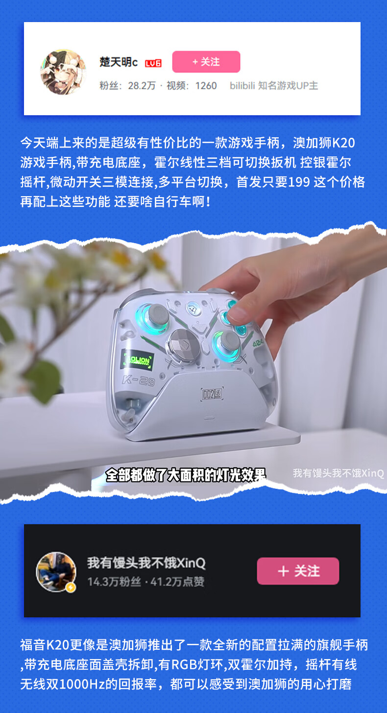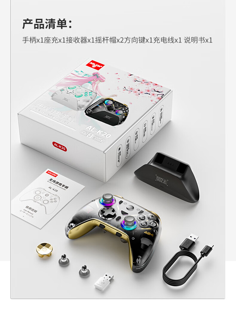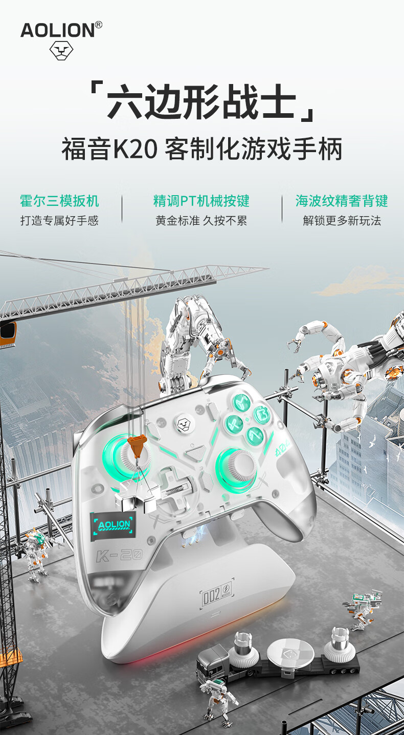 Aolion Australian Lion Gospel K20 Game Controller Pro Wireless PC Computer Version Steam Hollow Knight Silk Song Switch2 Black Myth Wukong NS2 Android Phone iPad Gospel K20 Game Controller EVA Silver