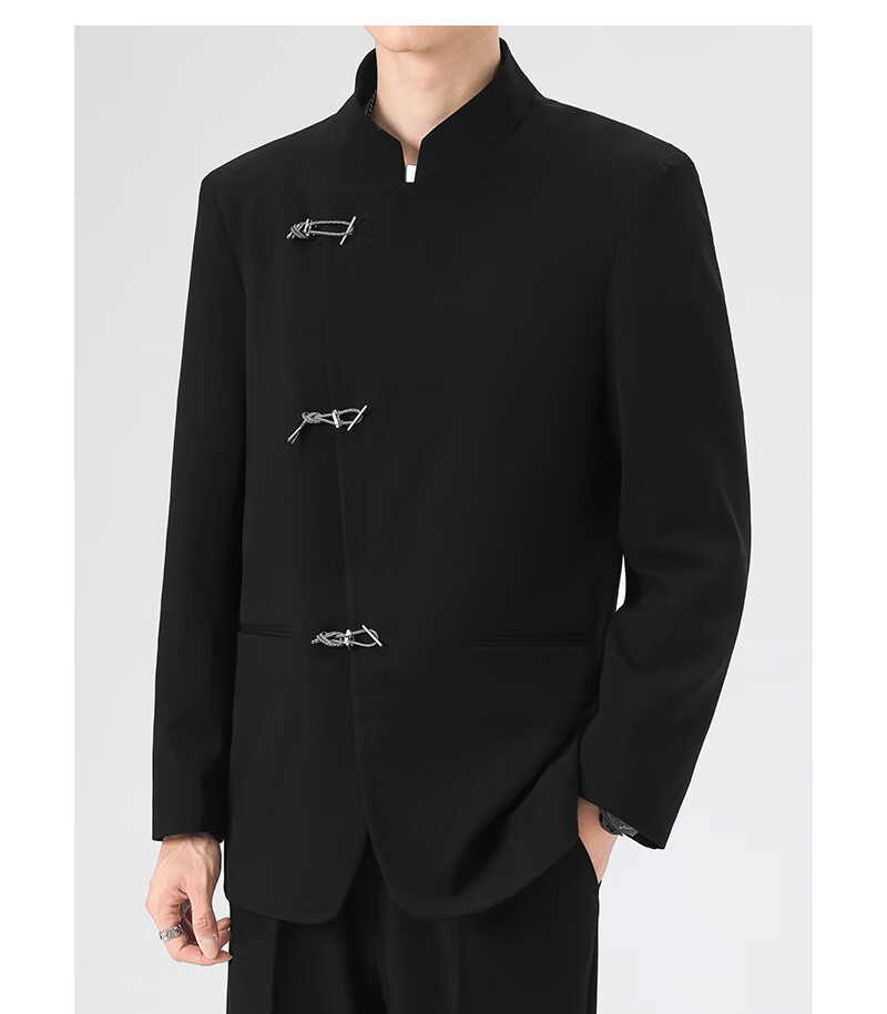 Locochi new Chinese style men's wedding dress suit suit male groom tunic suit jacket engagement stand collar national style black jacket + pants + black stand collar shirt XL
