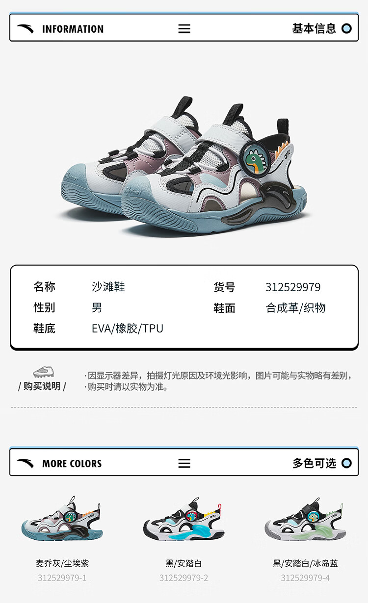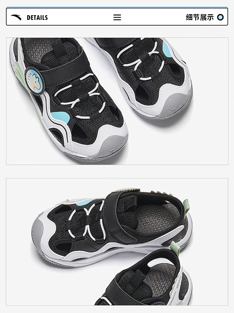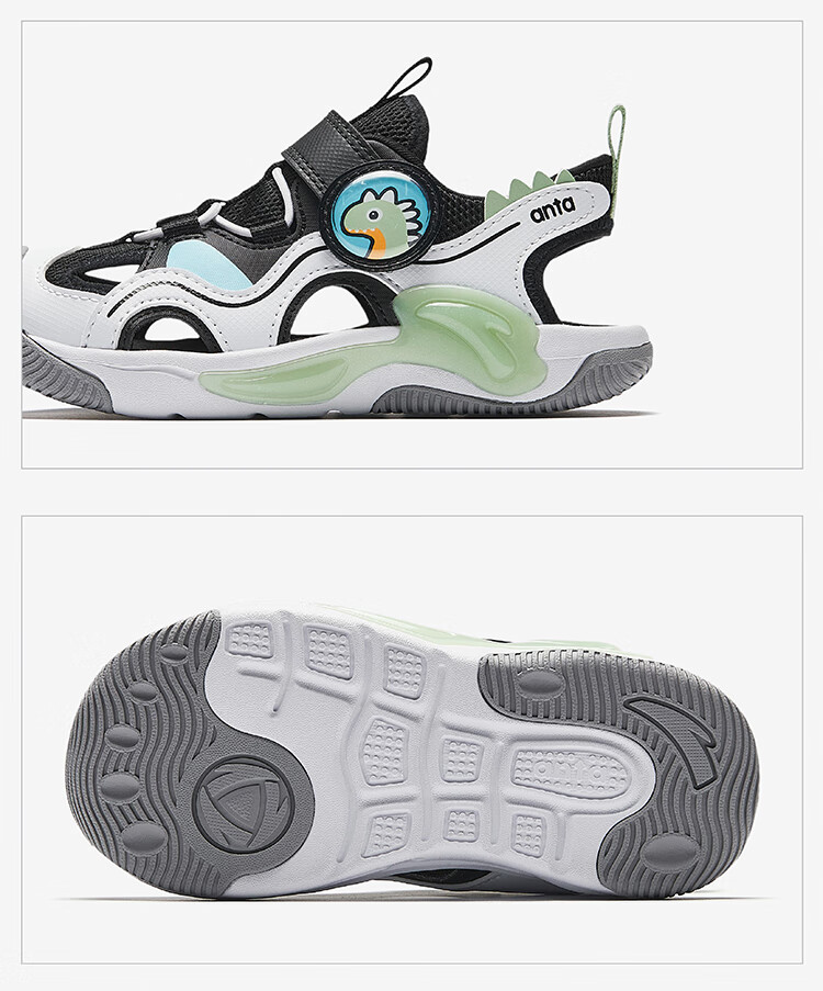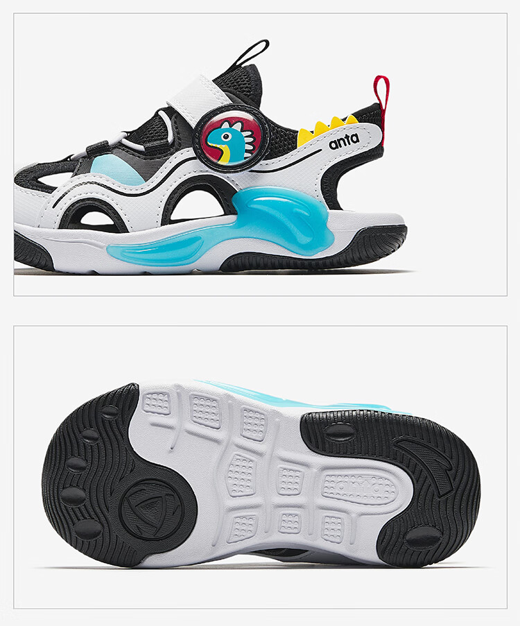 ANTA Children's Sandals Boys' Shoes 2025 Summer New Arrival Jellyfish Knob Outdoor Baotou Anti-collision Jellyfish Beach Shoes Silver/Black-1 28