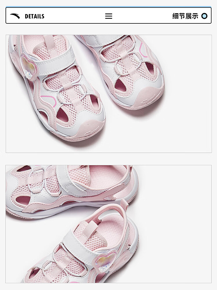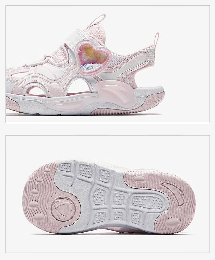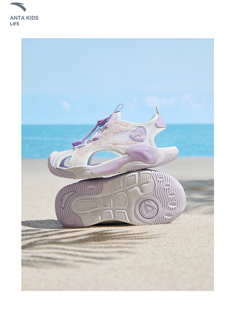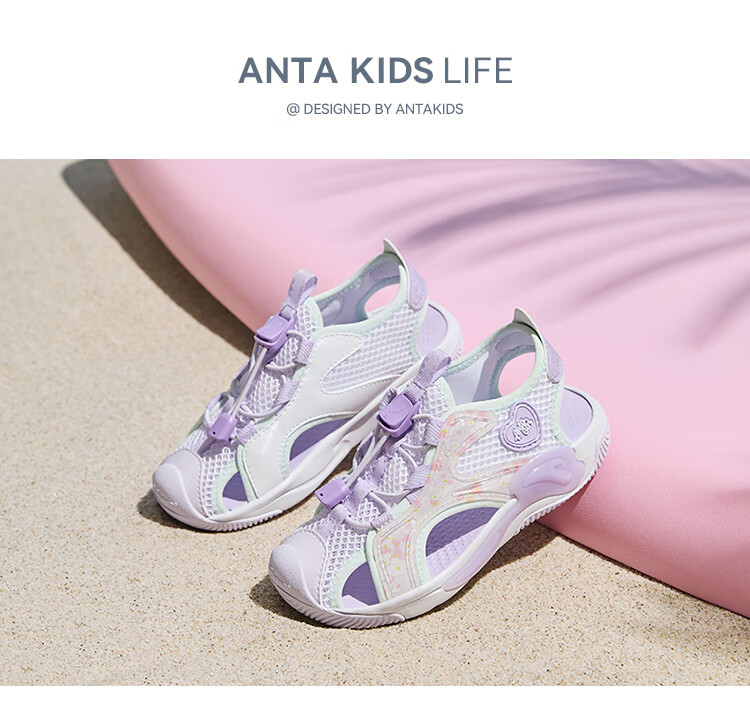 ANTA Children's Sandals Girls' Shoes 2025 Summer New Product Knob Buckle Outdoor Baotou Anti-collision Jellyfish Beach Shoes ANTA White/Pearl Pink/Silver-1 29