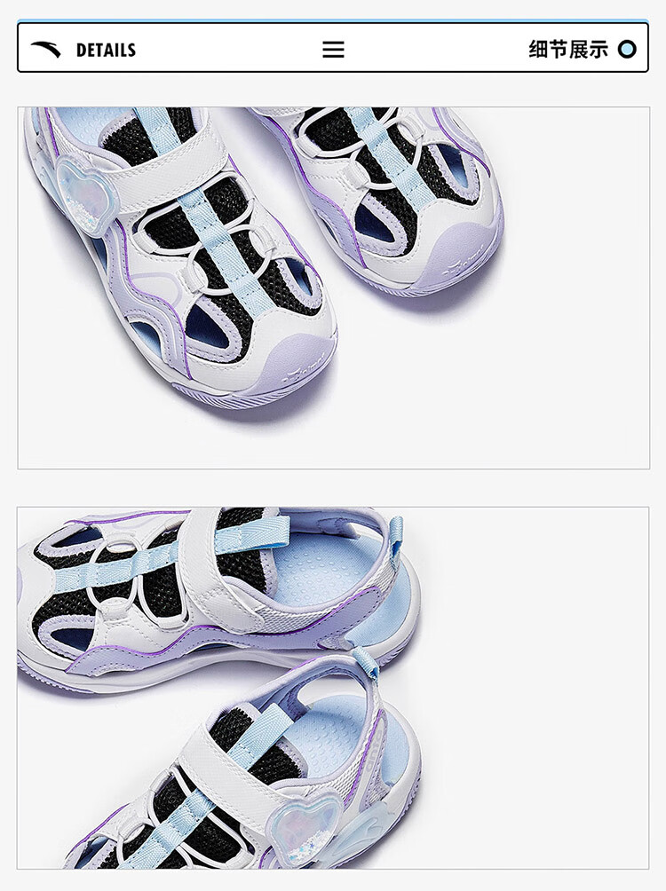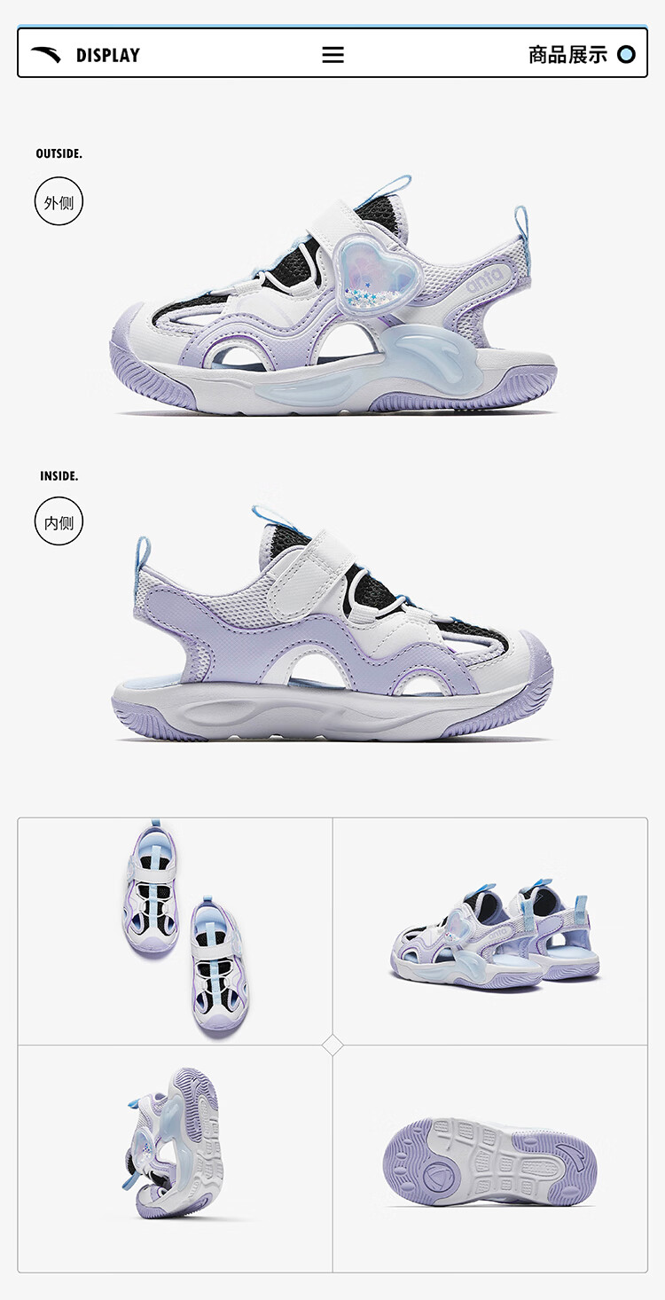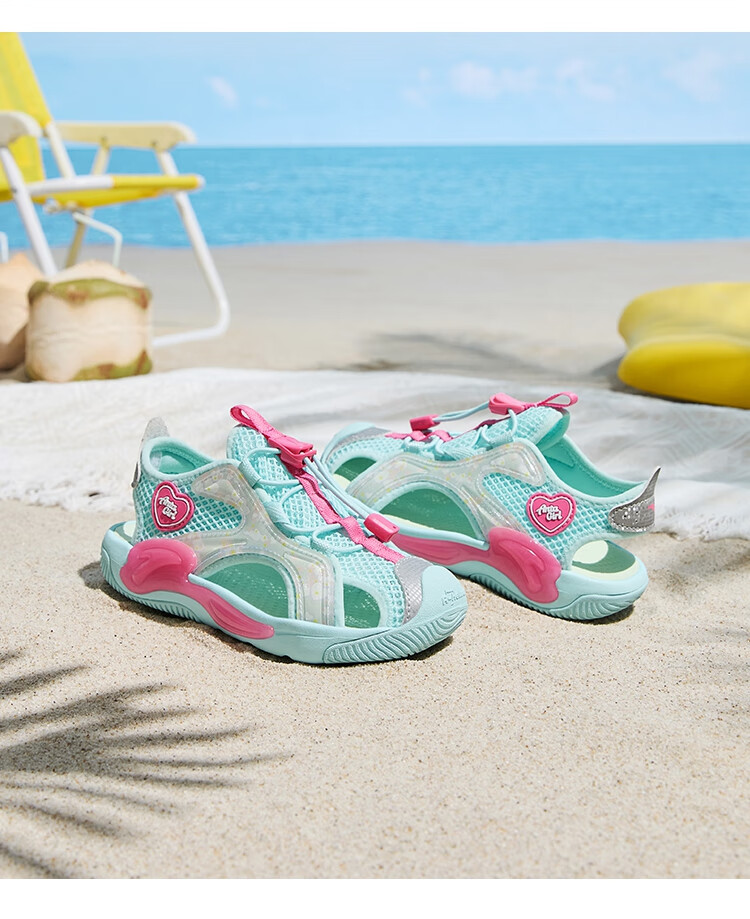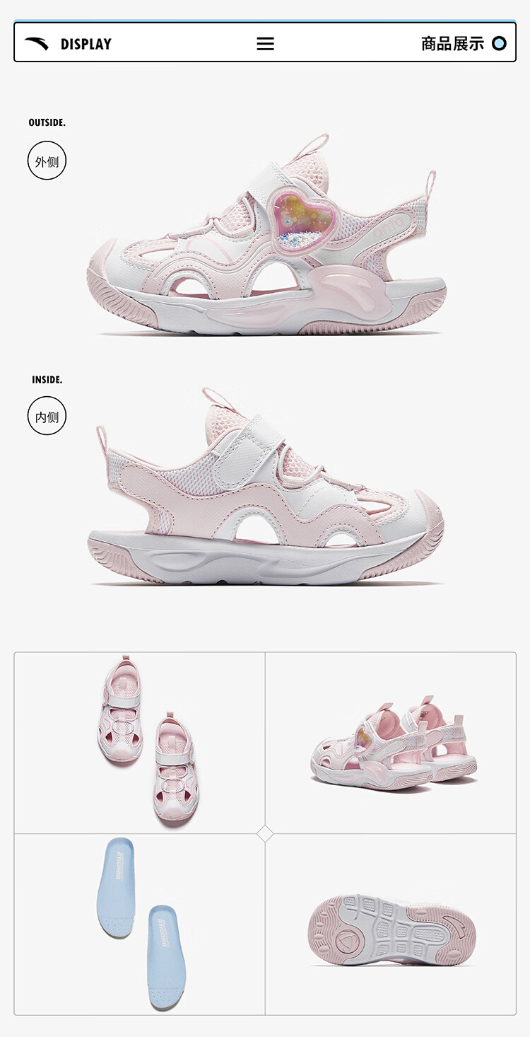 ANTA Children's Sandals Girls' Shoes 2025 Summer New Product Knob Buckle Outdoor Baotou Anti-collision Jellyfish Beach Shoes ANTA White/Pearl Pink/Silver-1 29