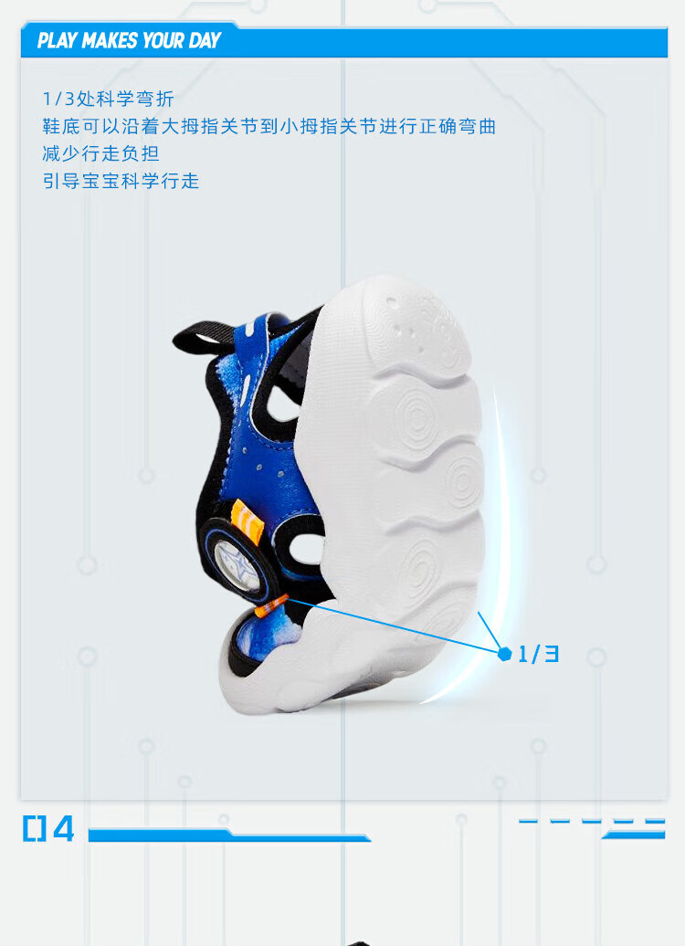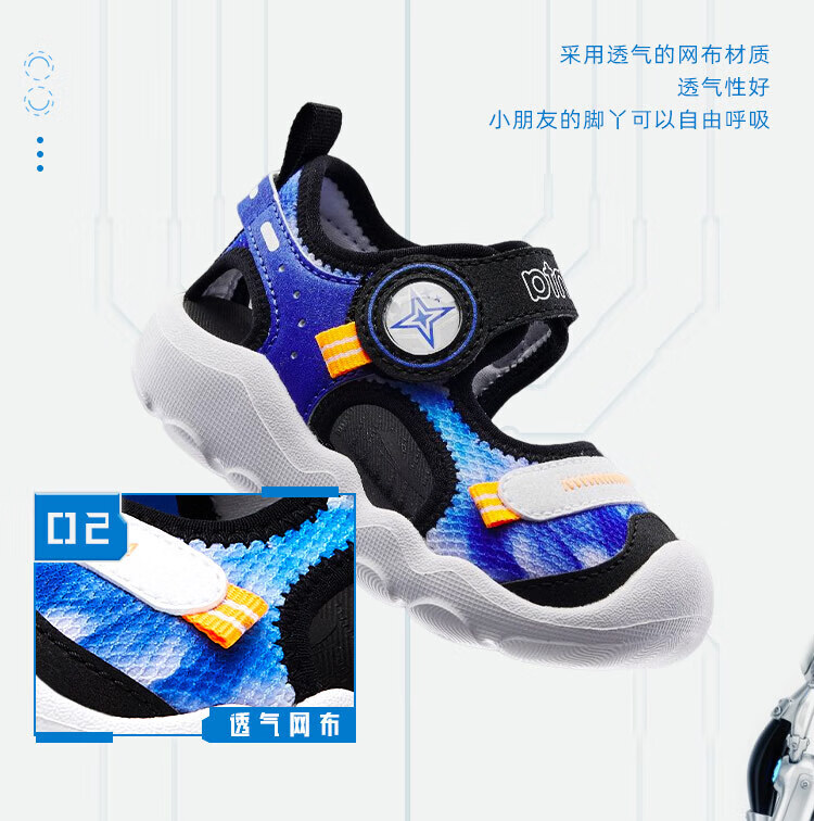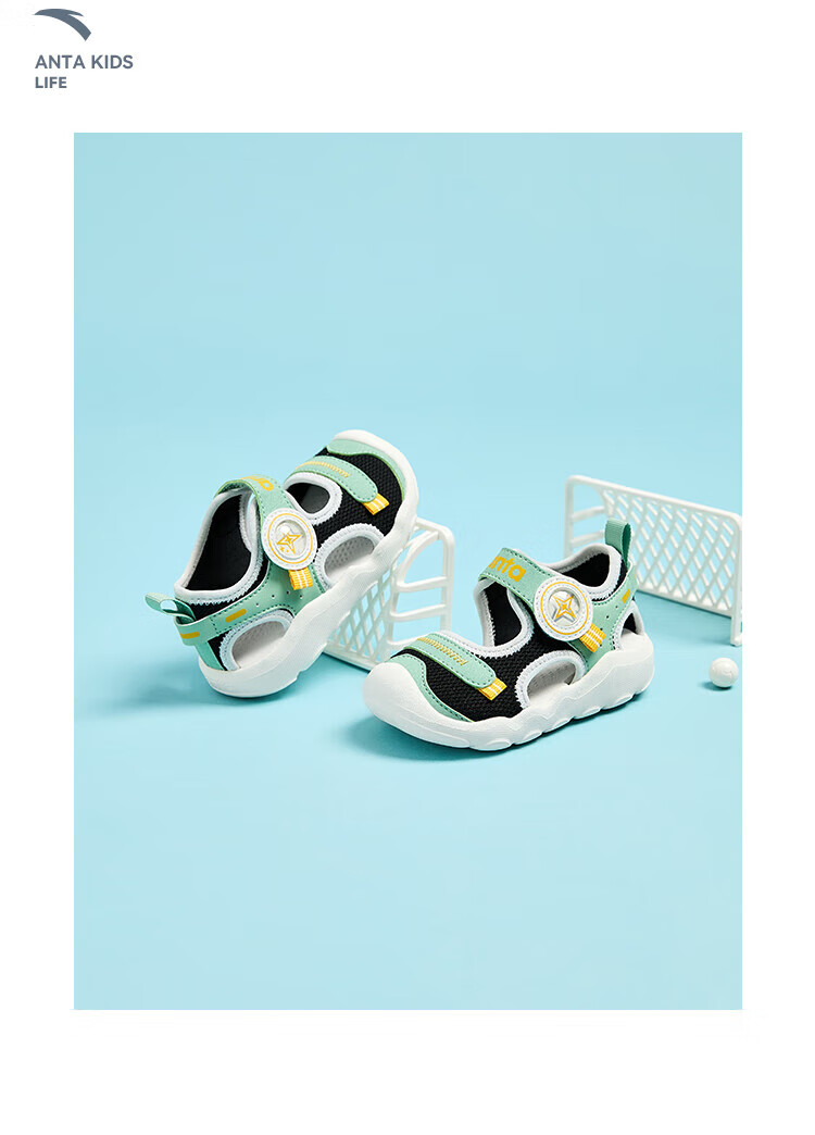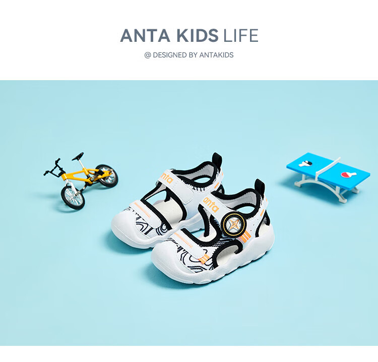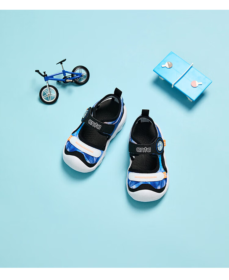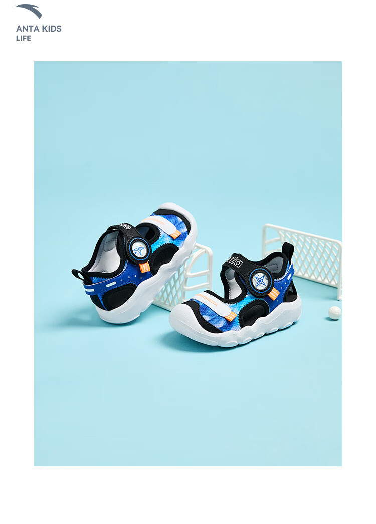 ANTA children's sandals, men's and women's shoes, 2025 summer new breathable Velcro octopus toe and foot protection beach shoes, men's model, pure blue/Anta white/black-4 20