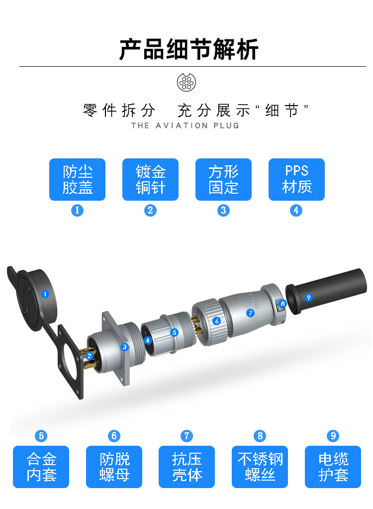 WS16/20/24/28/32/40/48 aviation plug and socket male and female power industrial connector TQ+Z connector WS20-3 core 25A (male + square seat)